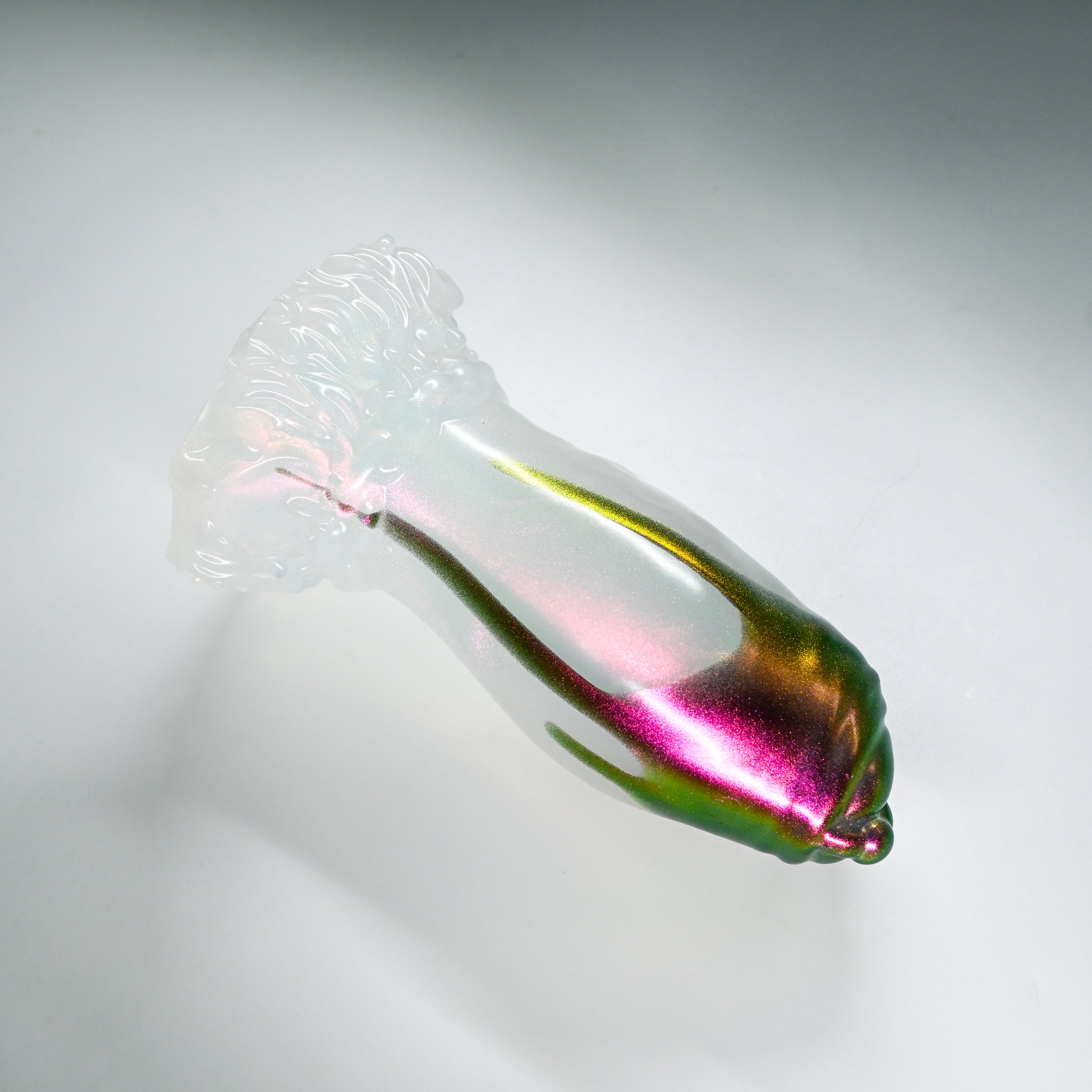 **NOTE: This product is made with Near Clear Ecoflex silicone and will therefore discoloration is more obvious (not more likely) than regular cloudy silicone. Please use extra caution to avoid staining with oil based lubes and bodily fluids. Boiling for long periods of time is not recommended. Please read our FAQ for additional care instructions.