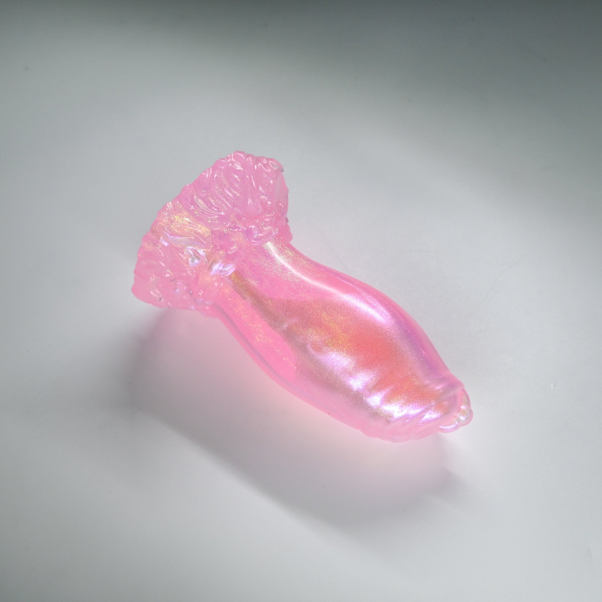 **NOTE: This product is made with Near Clear Ecoflex silicone and will therefore discoloration is more obvious (not more likely) than regular cloudy silicone. Please use extra caution to avoid staining with oil based lubes and bodily fluids. Boiling for long periods of time is not recommended. Please read our FAQ for additional care instructions.