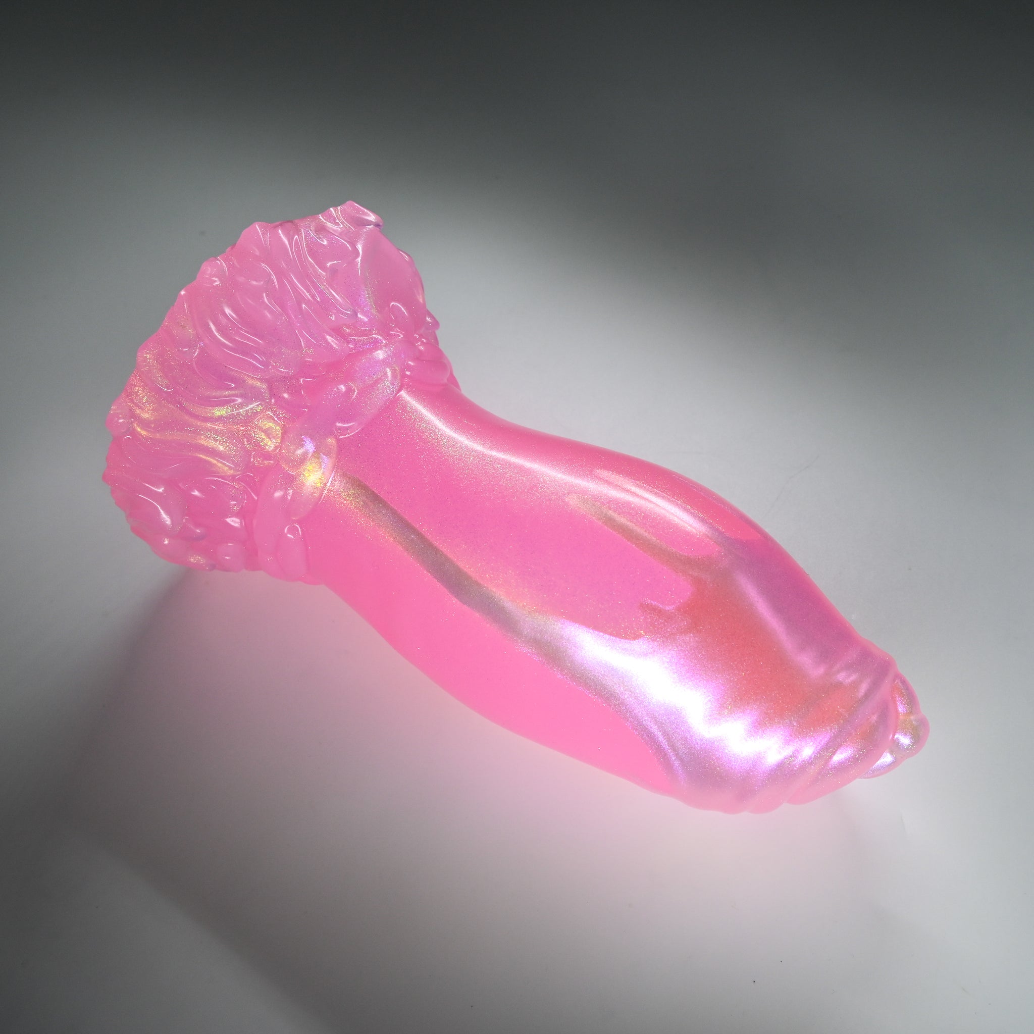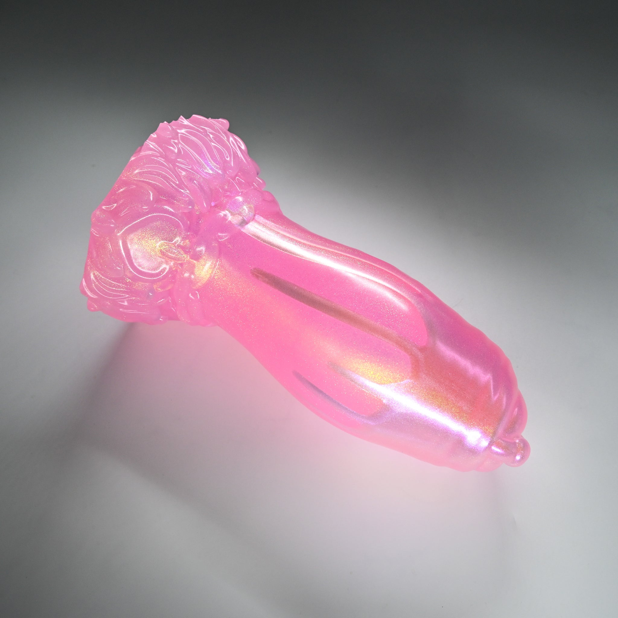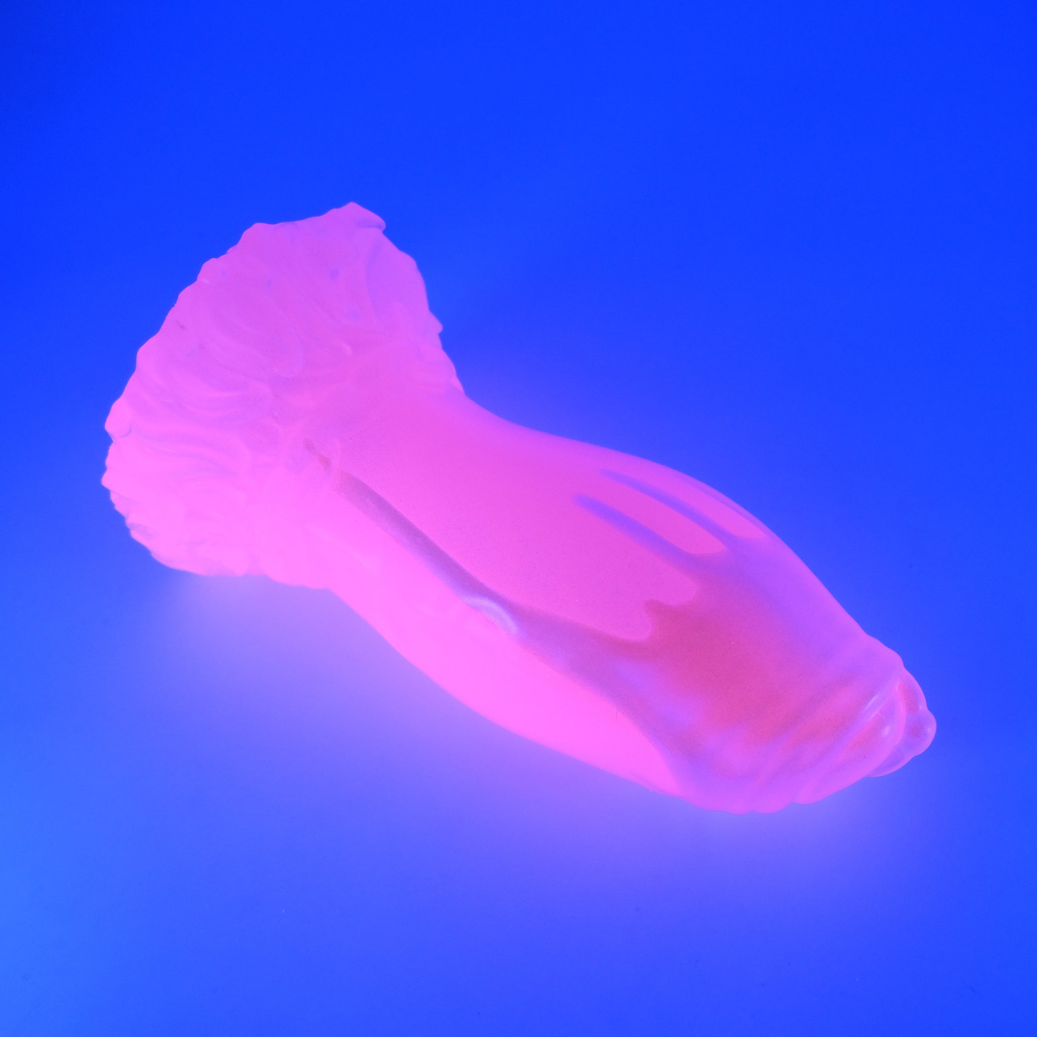 **NOTE: This product is made with Near Clear Ecoflex silicone and will therefore discoloration is more obvious (not more likely) than regular cloudy silicone. Please use extra caution to avoid staining with oil based lubes and bodily fluids. Boiling for long periods of time is not recommended. Please read our FAQ for additional care instructions.