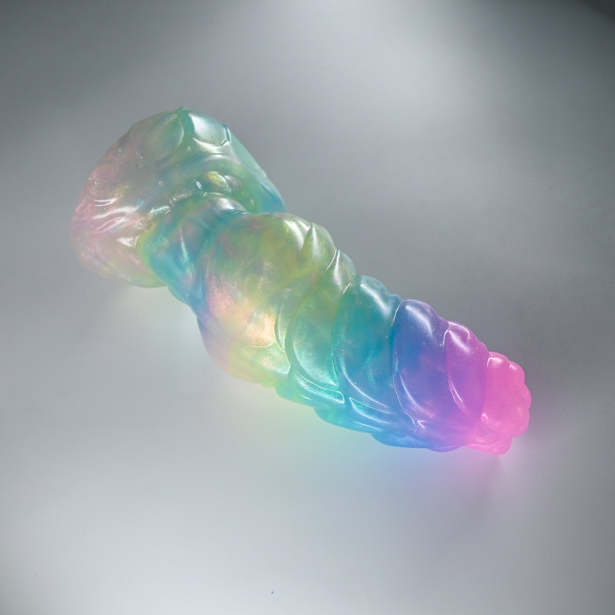 **NOTE: This product is made with Near Clear Ecoflex silicone and will therefore discoloration is more obvious (not more likely) than regular cloudy silicone. Please use extra caution to avoid staining with oil based lubes and bodily fluids. Boiling for long periods of time is not recommended. Please read our FAQ for additional care instructions.