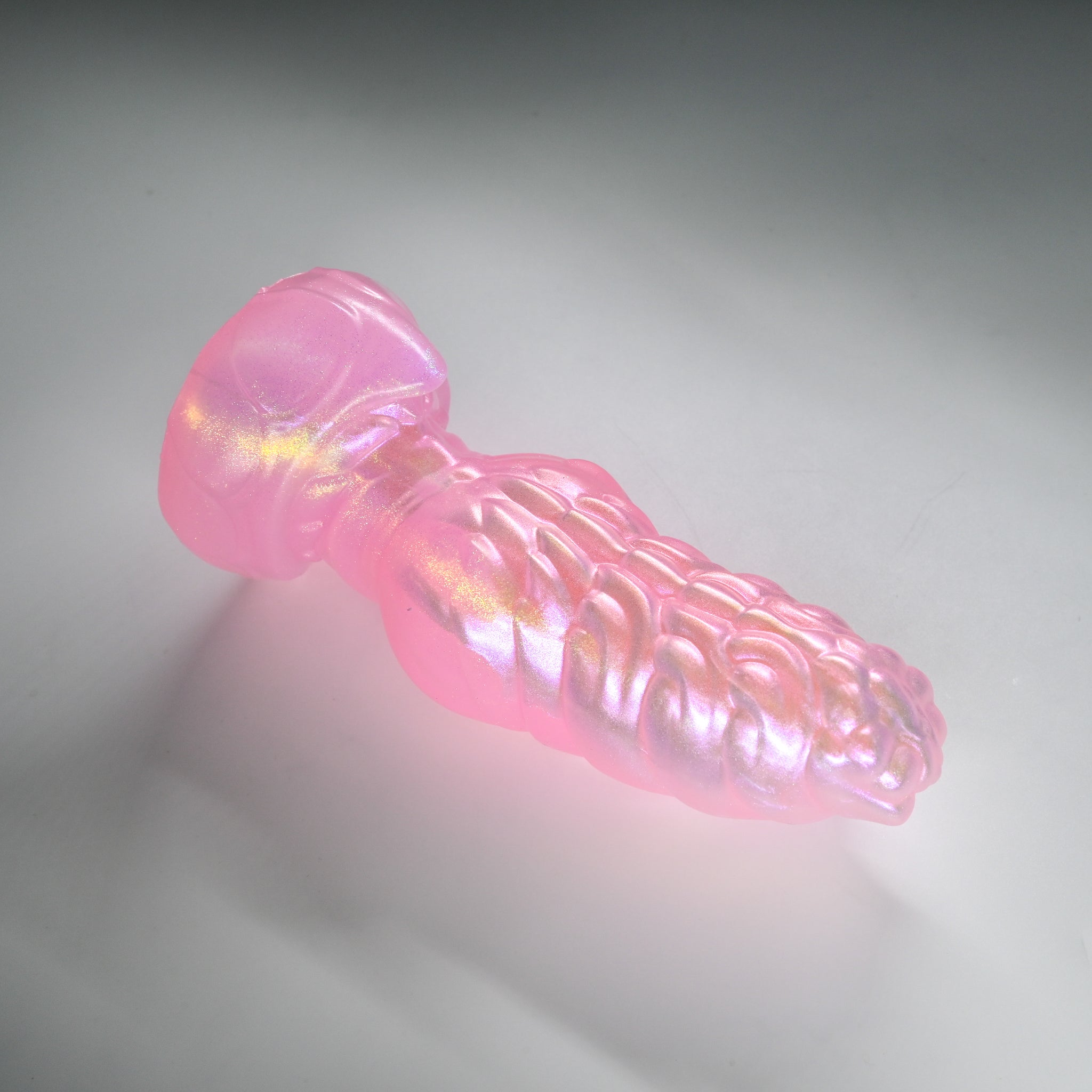 **NOTE: This product is made with Near Clear Ecoflex silicone and will therefore discoloration is more obvious (not more likely) than regular cloudy silicone. Please use extra caution to avoid staining with oil based lubes and bodily fluids. Boiling for long periods of time is not recommended. Please read our FAQ for additional care instructions.