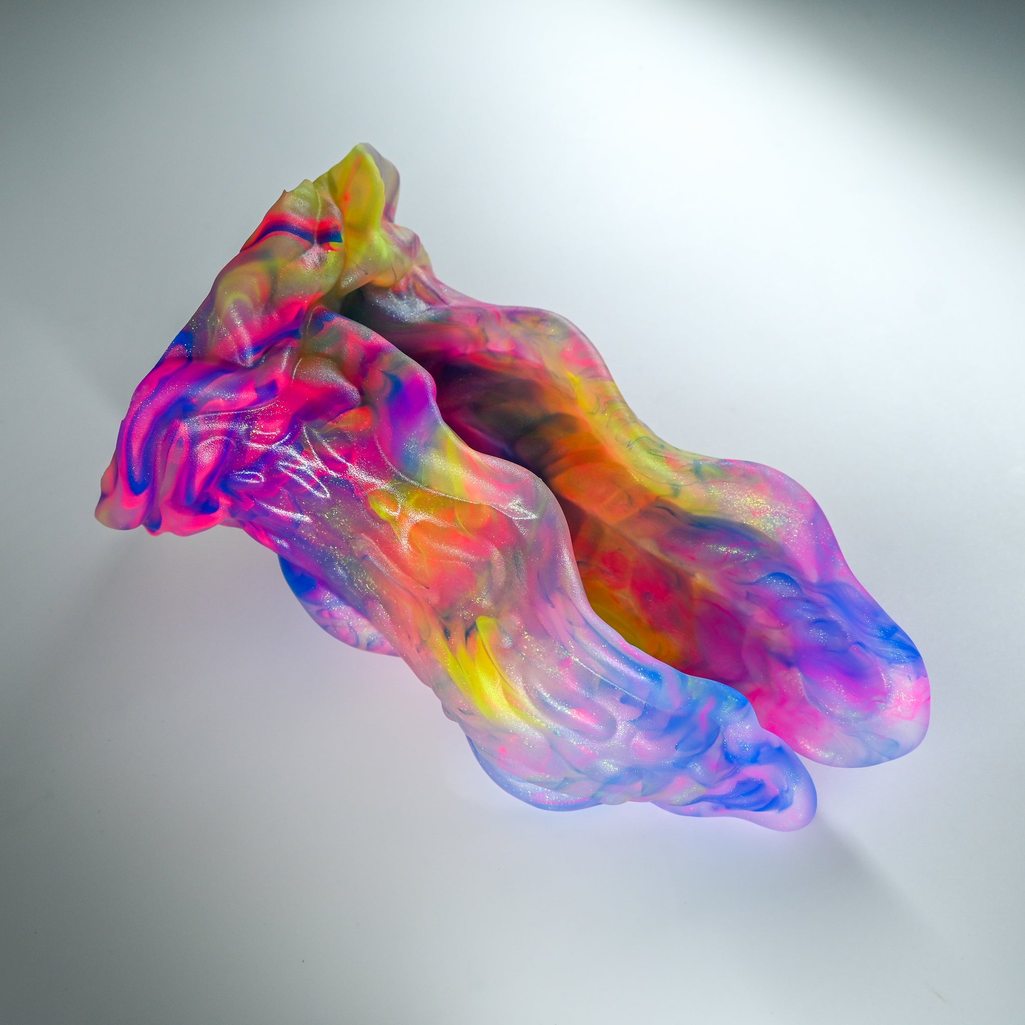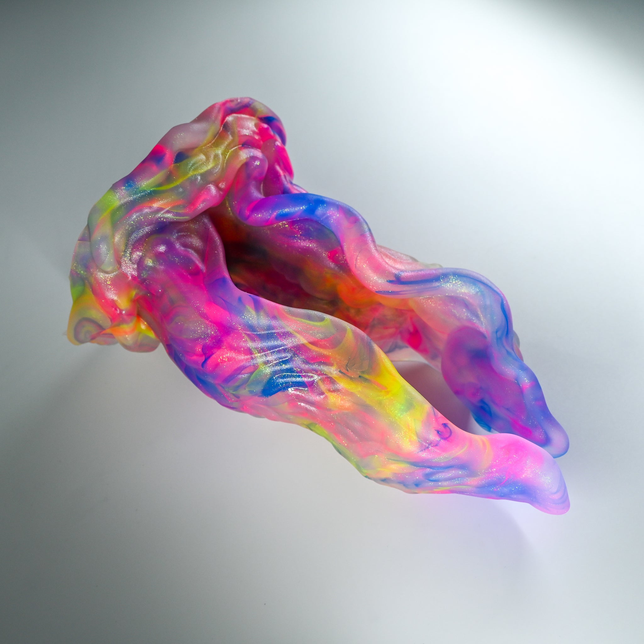 **NOTE: This product is made with Near Clear Ecoflex silicone and will therefore discoloration is more obvious (not more likely) than regular cloudy silicone. Please use extra caution to avoid staining with oil based lubes and bodily fluids. Boiling for long periods of time is not recommended. Please read our FAQ for additional care instructions.