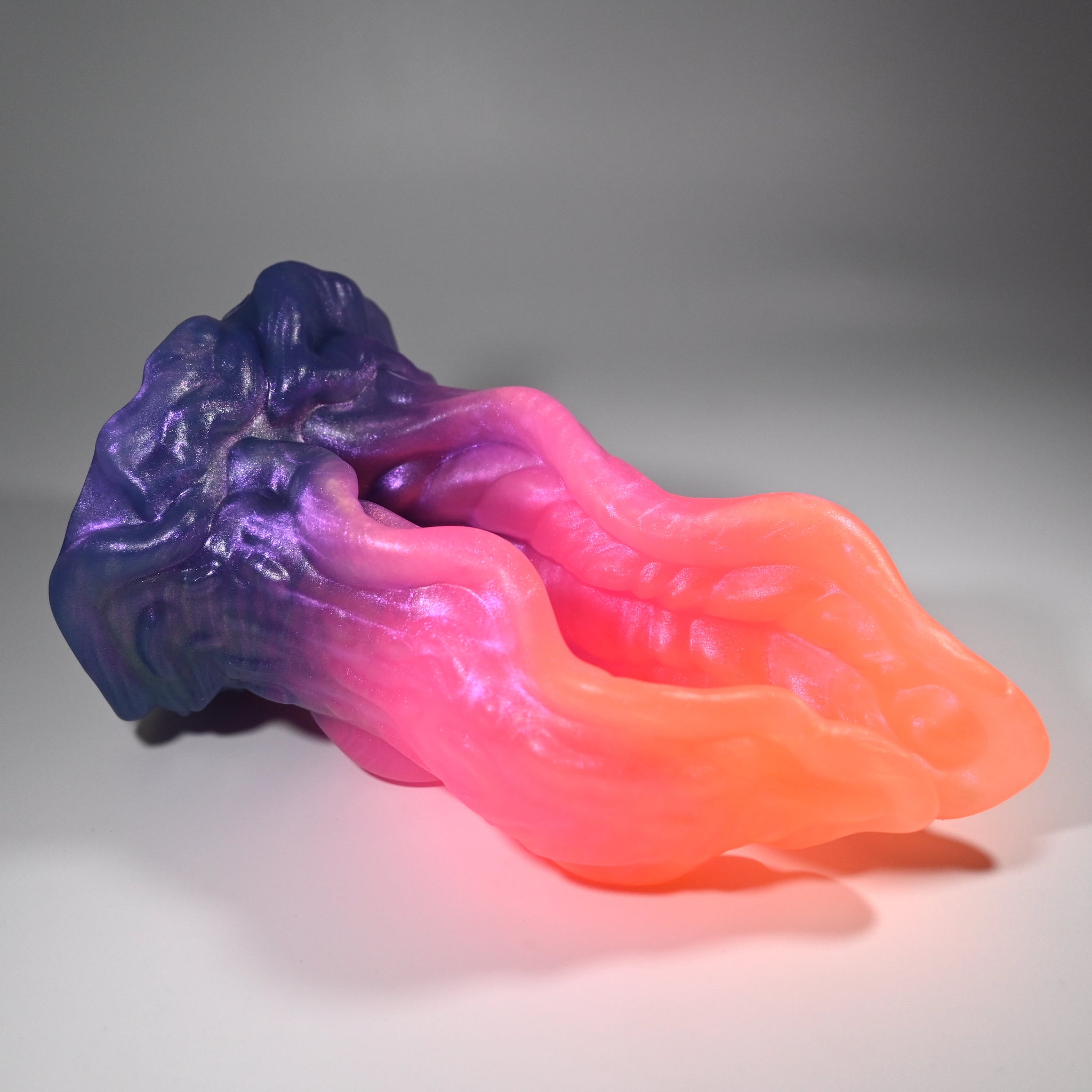 **NOTE: This product is made with Near Clear Ecoflex silicone and will therefore discoloration is more obvious (not more likely) than regular cloudy silicone. Please use extra caution to avoid staining with oil based lubes and bodily fluids. Boiling for long periods of time is not recommended. Please read our FAQ for additional care instructions.