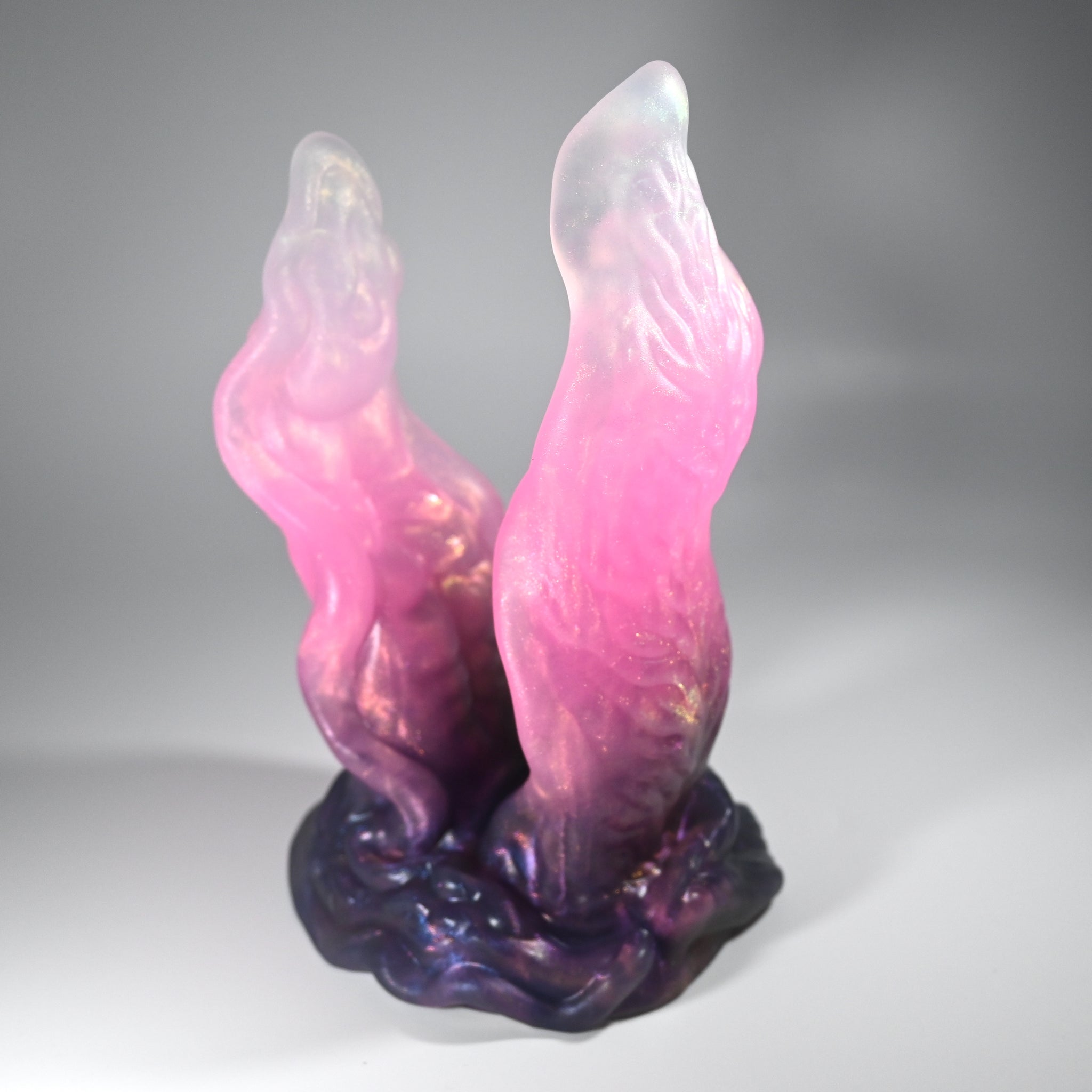 **NOTE: This product is made with Near Clear Ecoflex silicone and will therefore discoloration is more obvious (not more likely) than regular cloudy silicone. Please use extra caution to avoid staining with oil based lubes and bodily fluids. Boiling for long periods of time is not recommended. Please read our FAQ for additional care instructions.