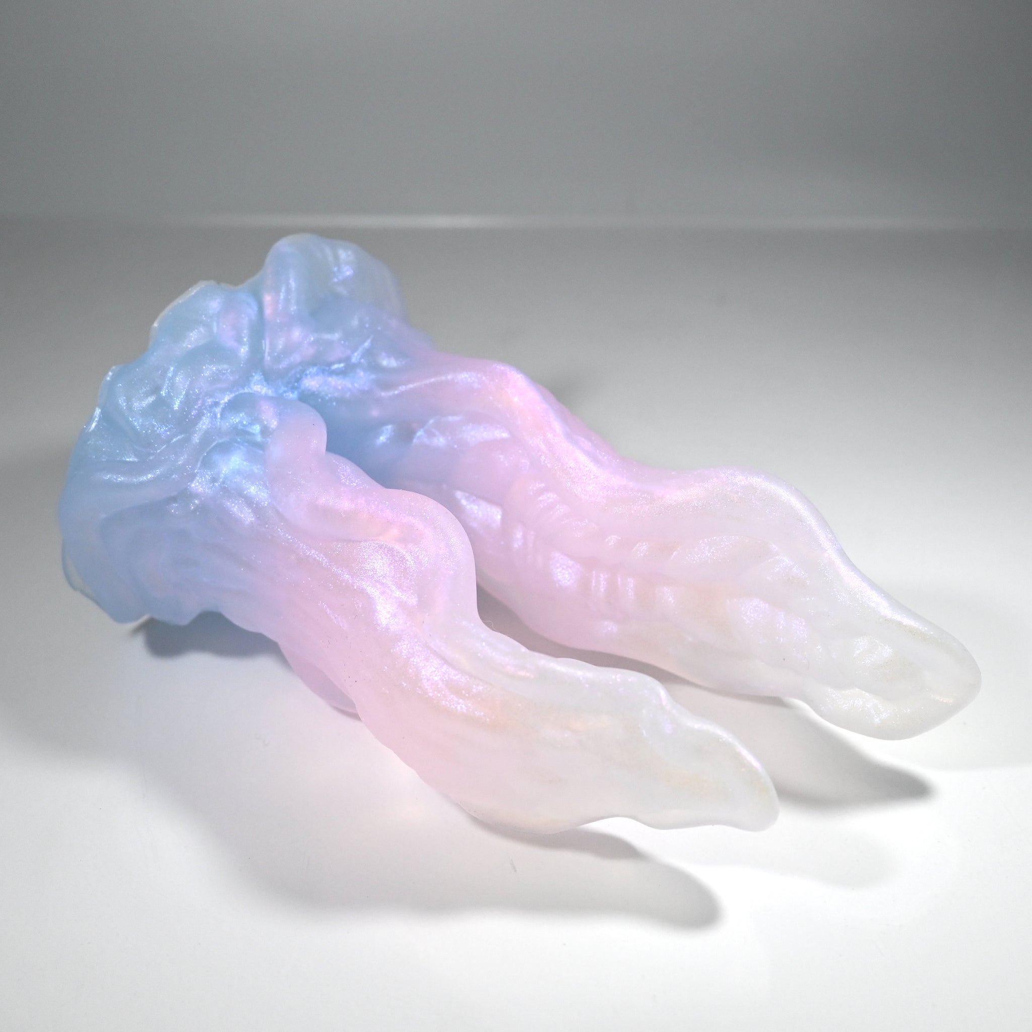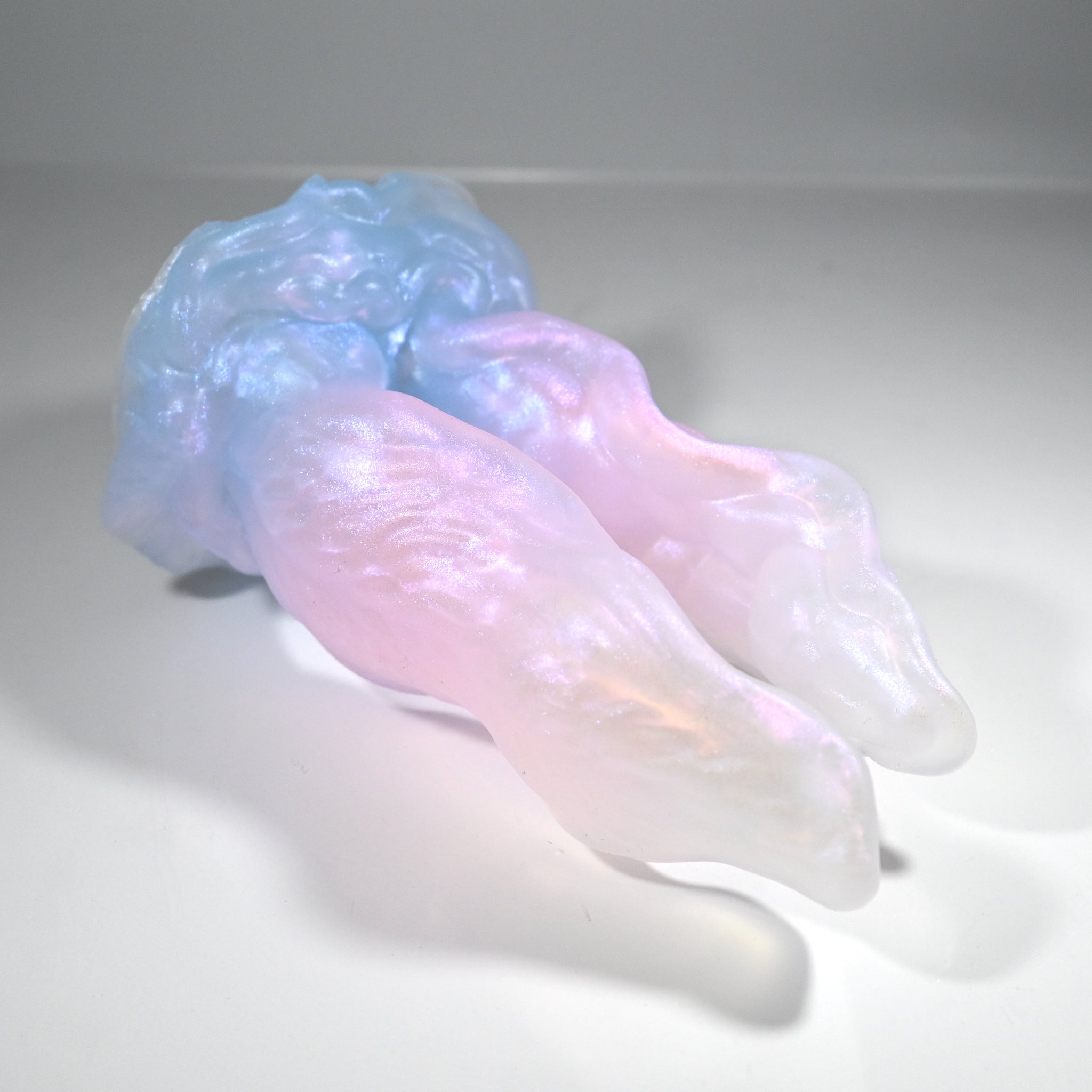 **NOTE: This product is made with Near Clear Ecoflex silicone and will therefore discoloration is more obvious (not more likely) than regular cloudy silicone. Please use extra caution to avoid staining with oil based lubes and bodily fluids. Boiling for long periods of time is not recommended. Please read our FAQ for additional care instructions.