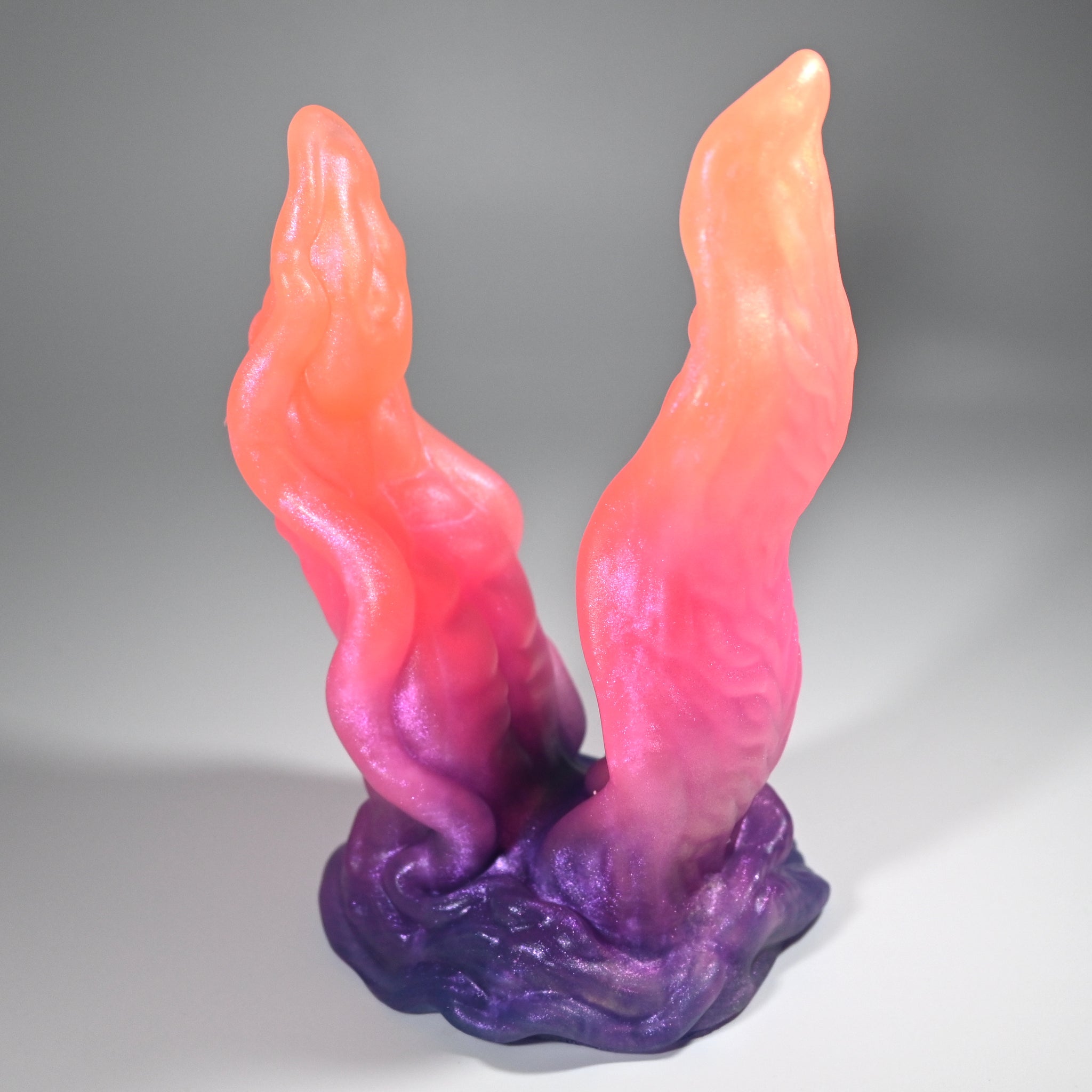 **NOTE: This product is made with Near Clear Ecoflex silicone and will therefore discoloration is more obvious (not more likely) than regular cloudy silicone. Please use extra caution to avoid staining with oil based lubes and bodily fluids. Boiling for long periods of time is not recommended. Please read our FAQ for additional care instructions.