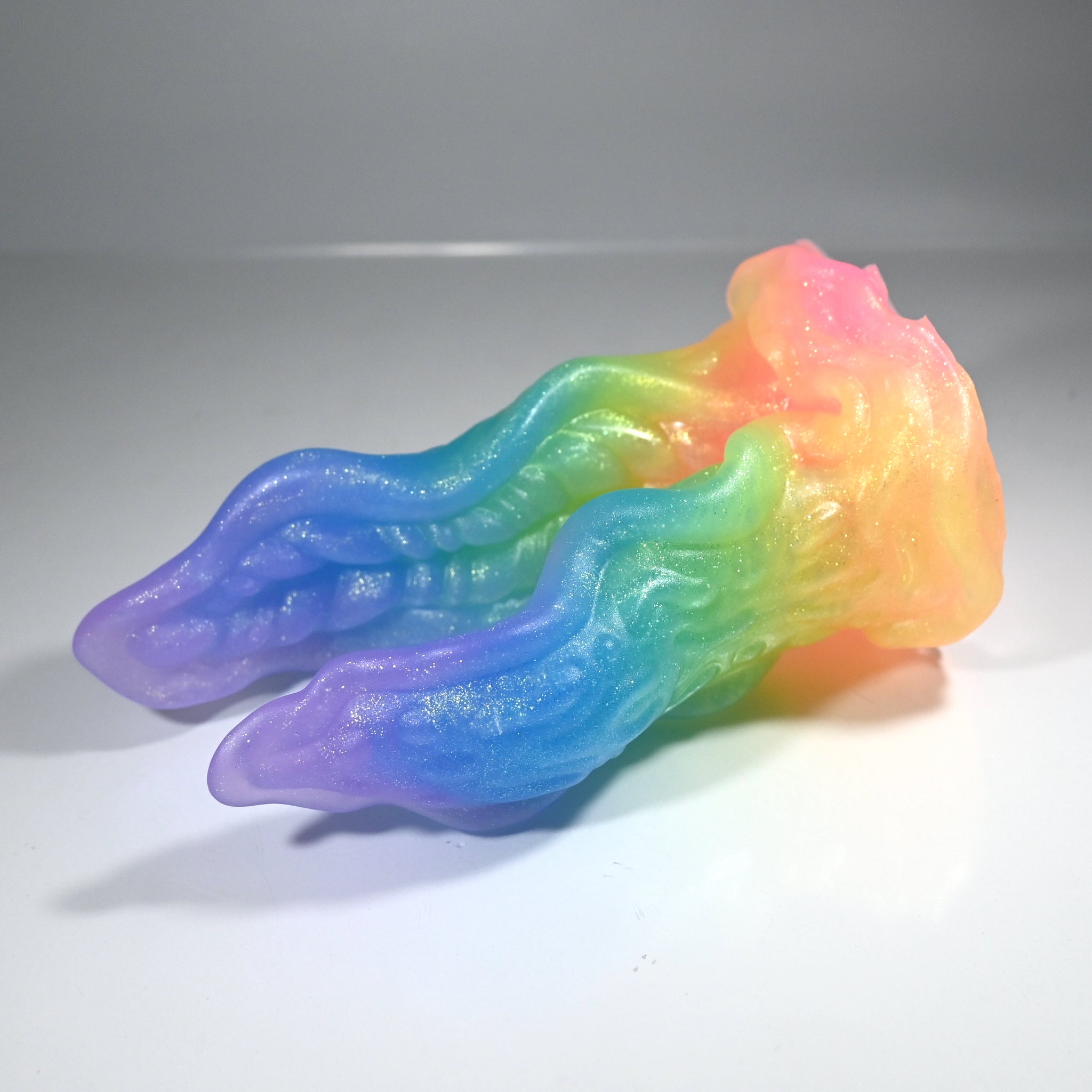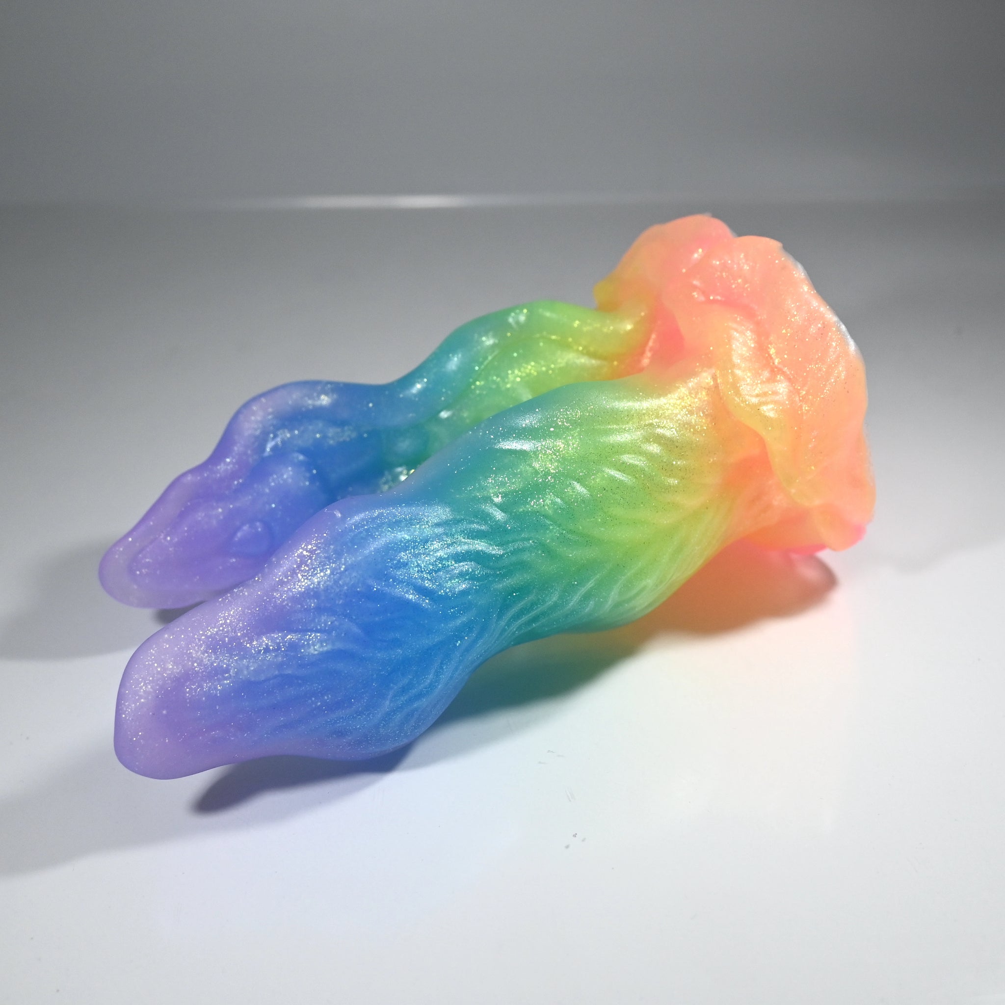 **NOTE: This product is made with Near Clear Ecoflex silicone and will therefore discoloration is more obvious (not more likely) than regular cloudy silicone. Please use extra caution to avoid staining with oil based lubes and bodily fluids. Boiling for long periods of time is not recommended. Please read our FAQ for additional care instructions.
