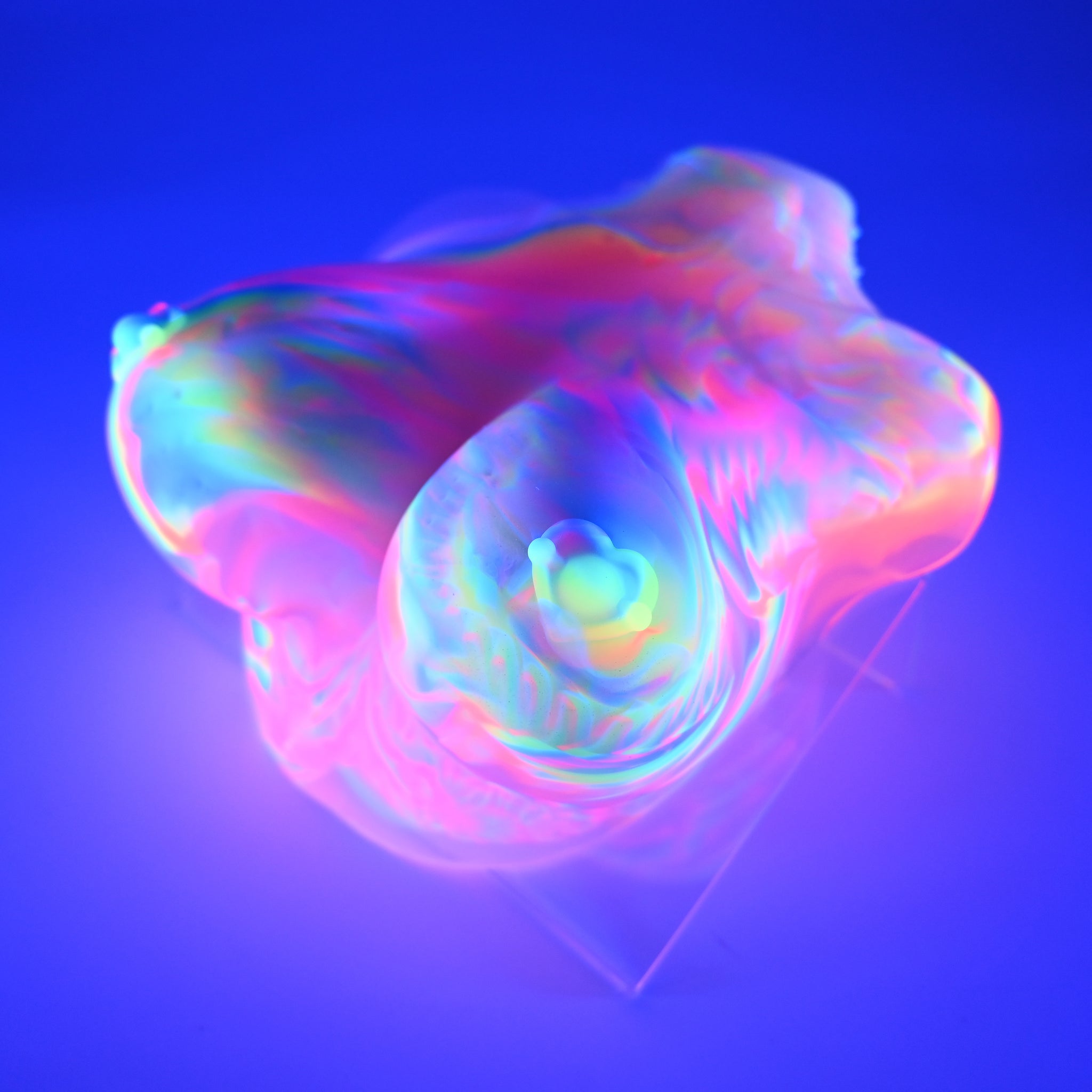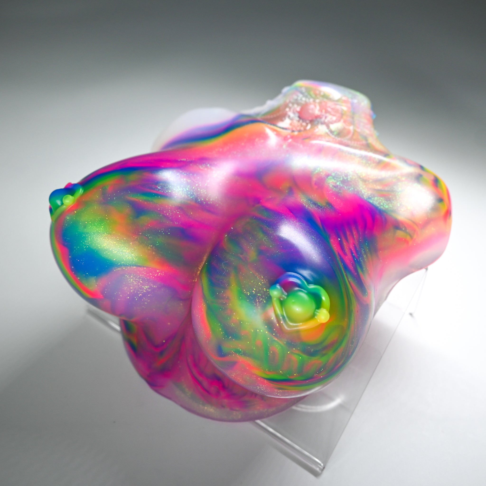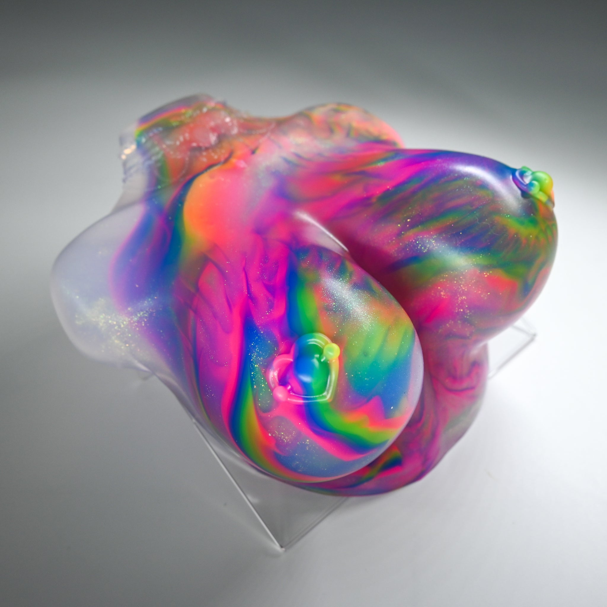 **NOTE: This product is made with Near Clear Ecoflex silicone and will therefore discoloration is more obvious (not more likely) than regular cloudy silicone. Please use extra caution to avoid staining with oil based lubes and bodily fluids. Boiling for long periods of time is not recommended. Please read our FAQ for additional care instructions.