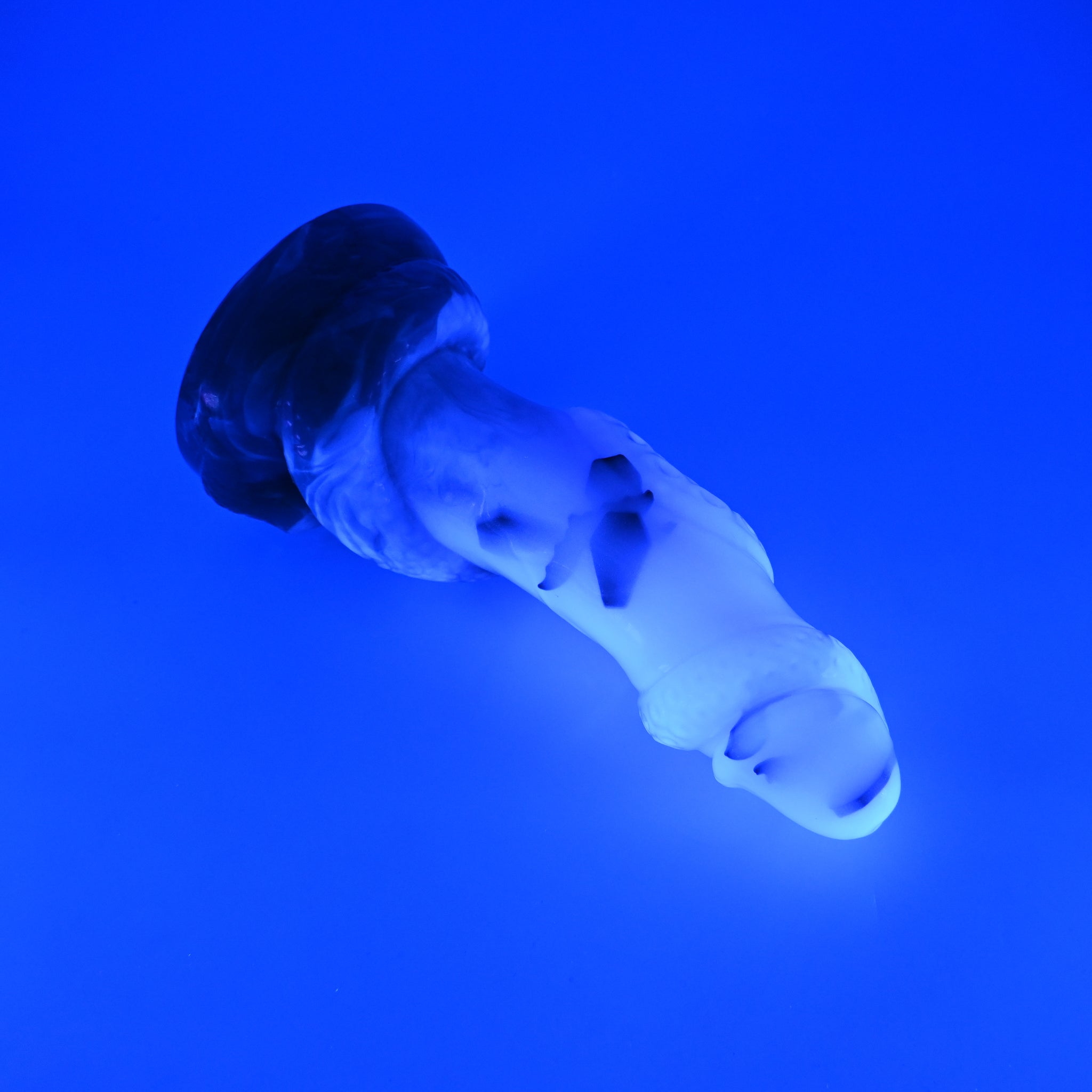 **NOTE: This product is made with Near Clear Ecoflex silicone and will therefore discoloration is more obvious (not more likely) than regular cloudy silicone. Please use extra caution to avoid staining with oil based lubes and bodily fluids. Boiling for long periods of time is not recommended. Please read our FAQ for additional care instructions.
