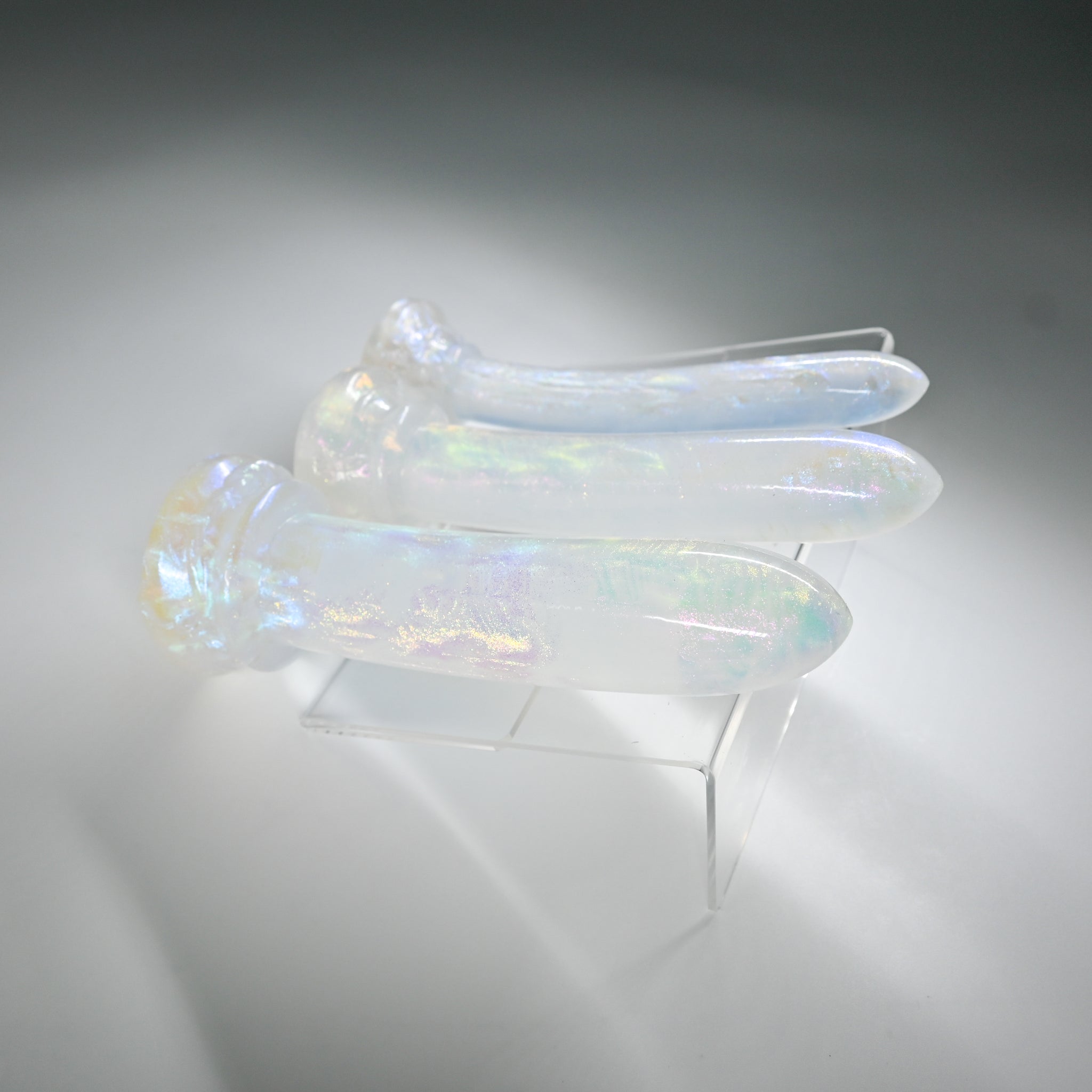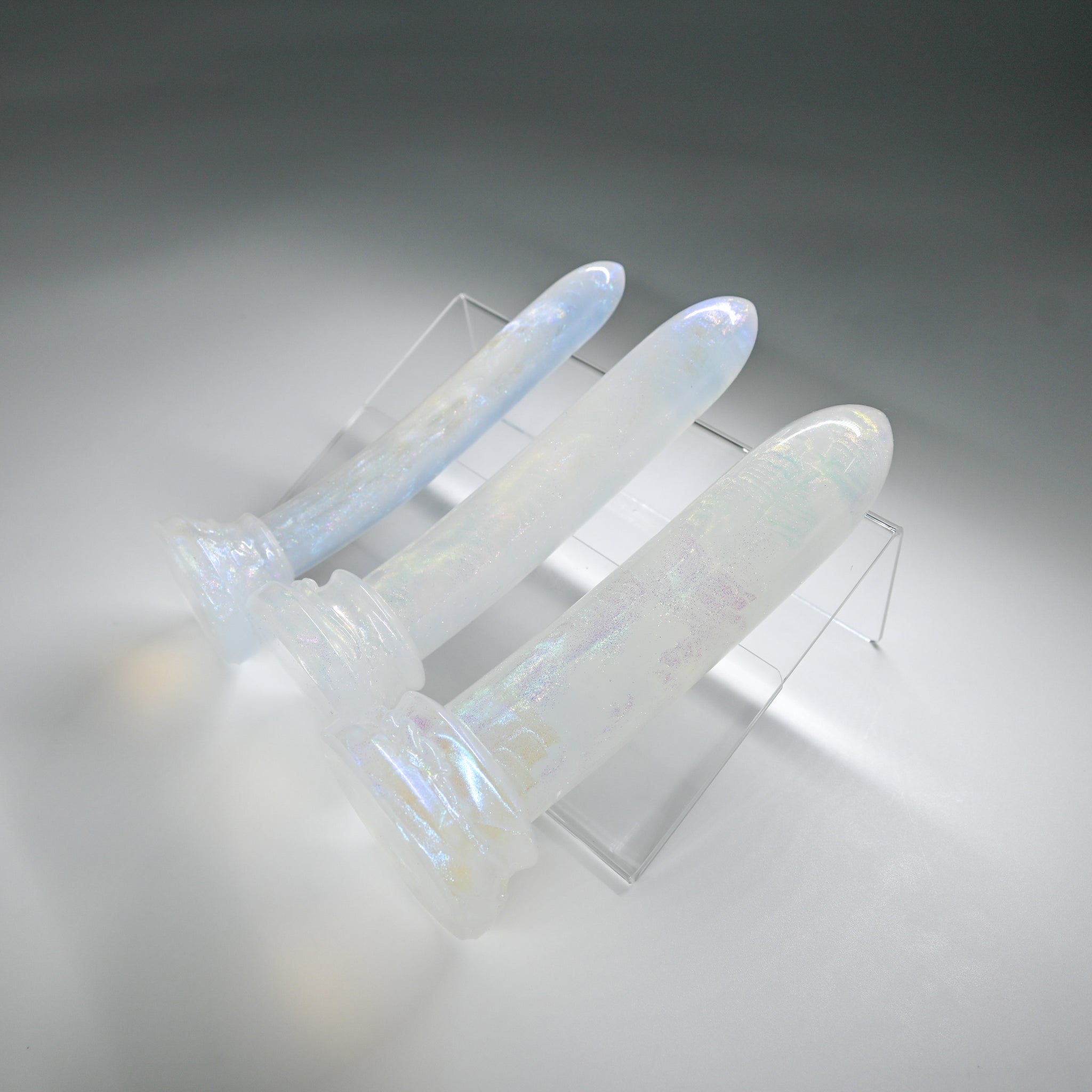 **NOTE: This product is made with Near Clear Ecoflex silicone and will therefore discoloration is more obvious (not more likely) than regular cloudy silicone. Please use extra caution to avoid staining with oil based lubes and bodily fluids. Boiling for long periods of time is not recommended. Please read our FAQ for additional care instructions.