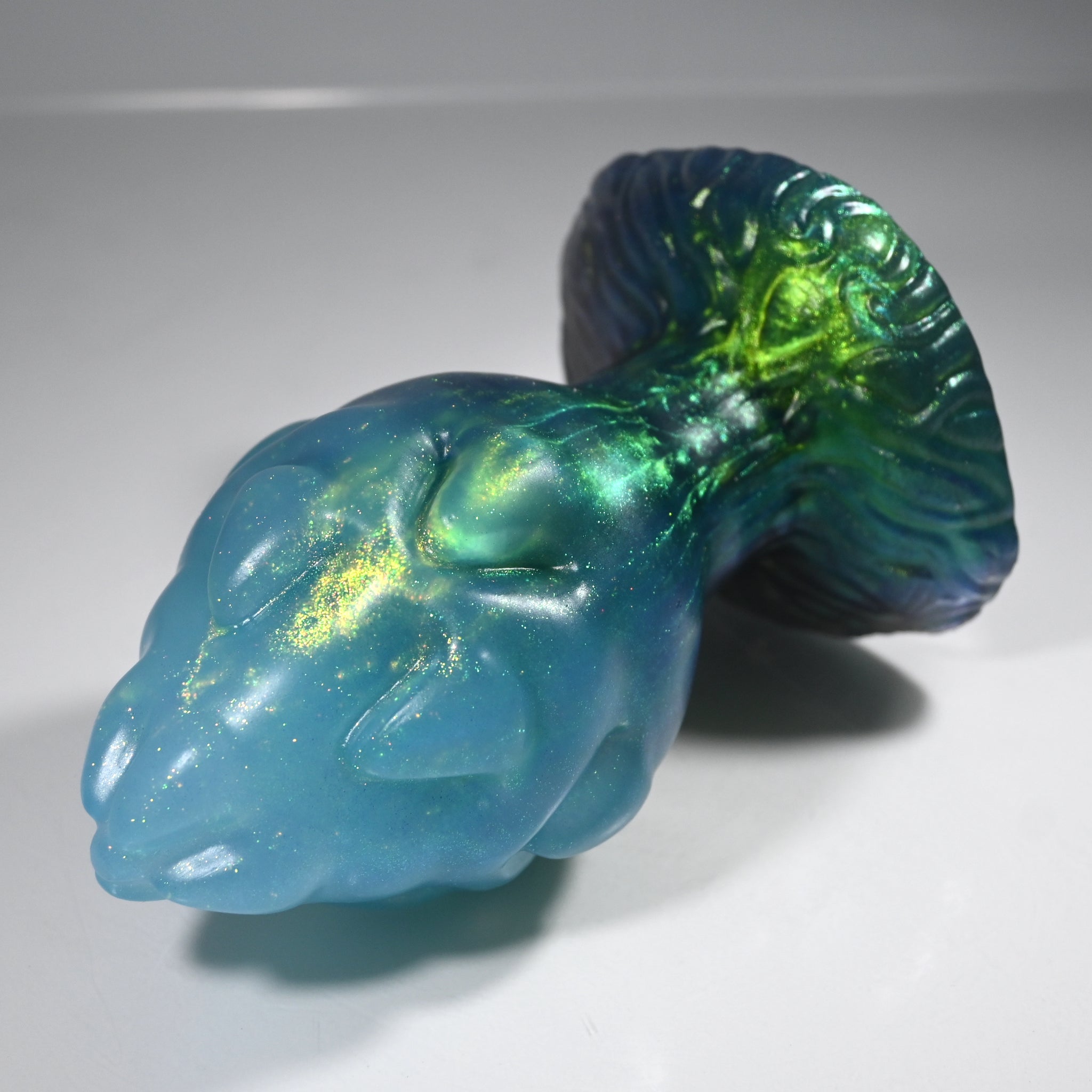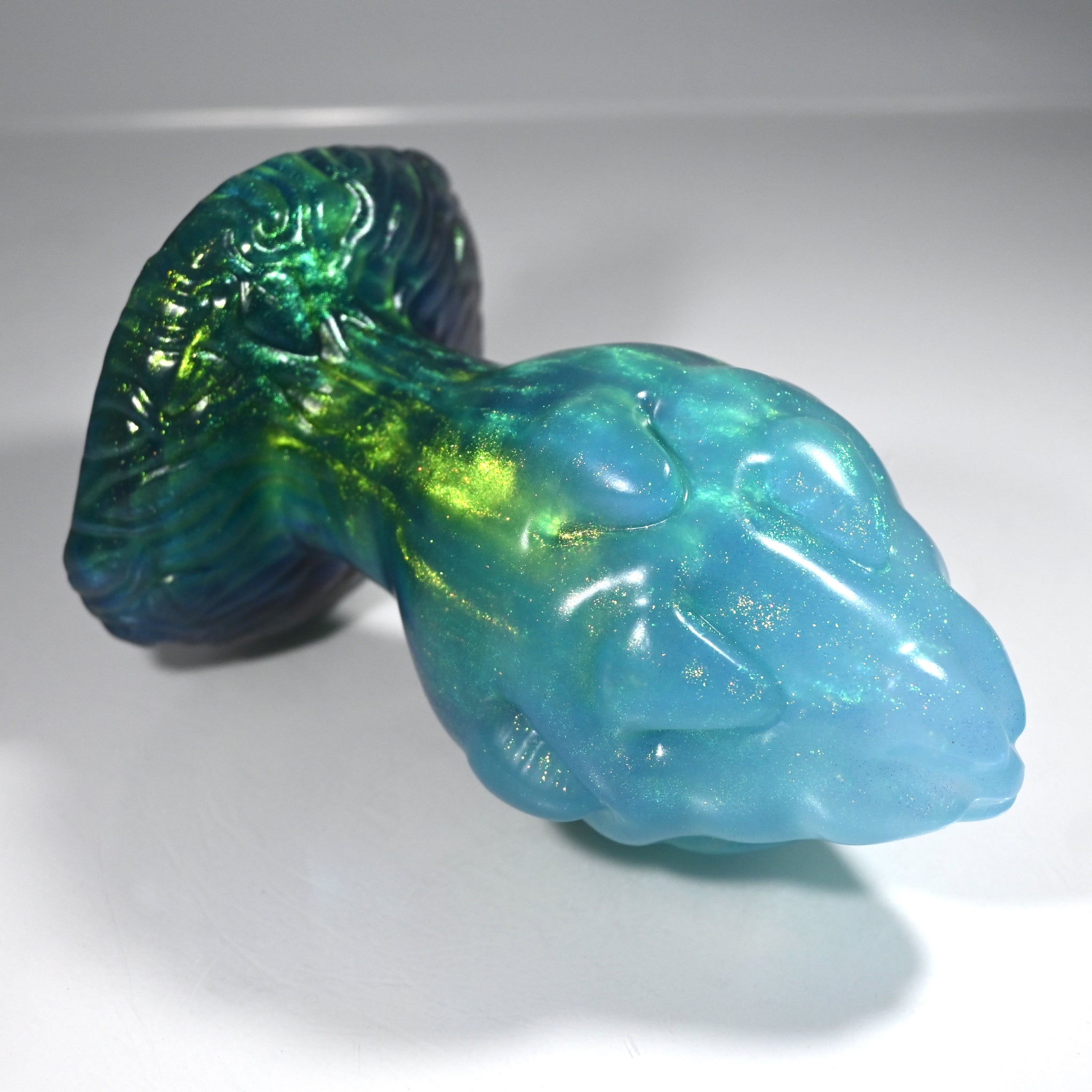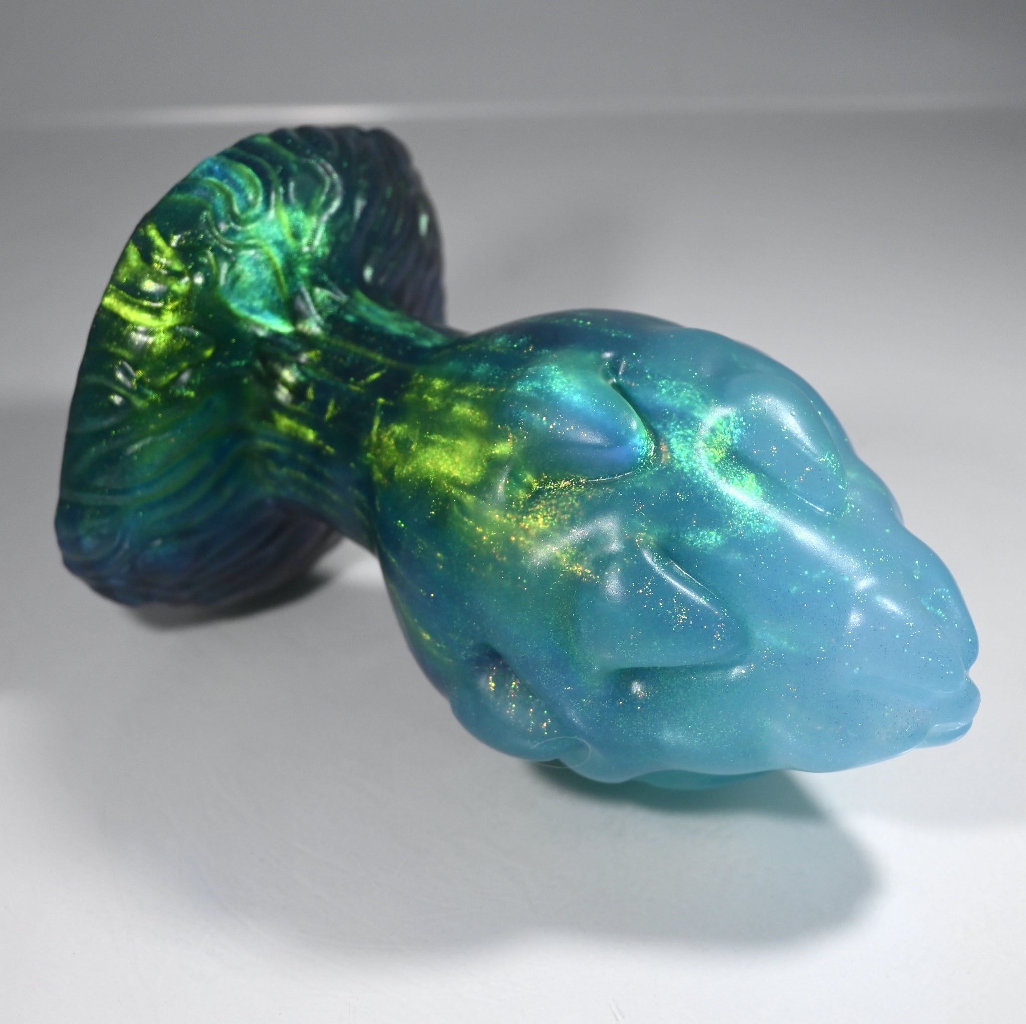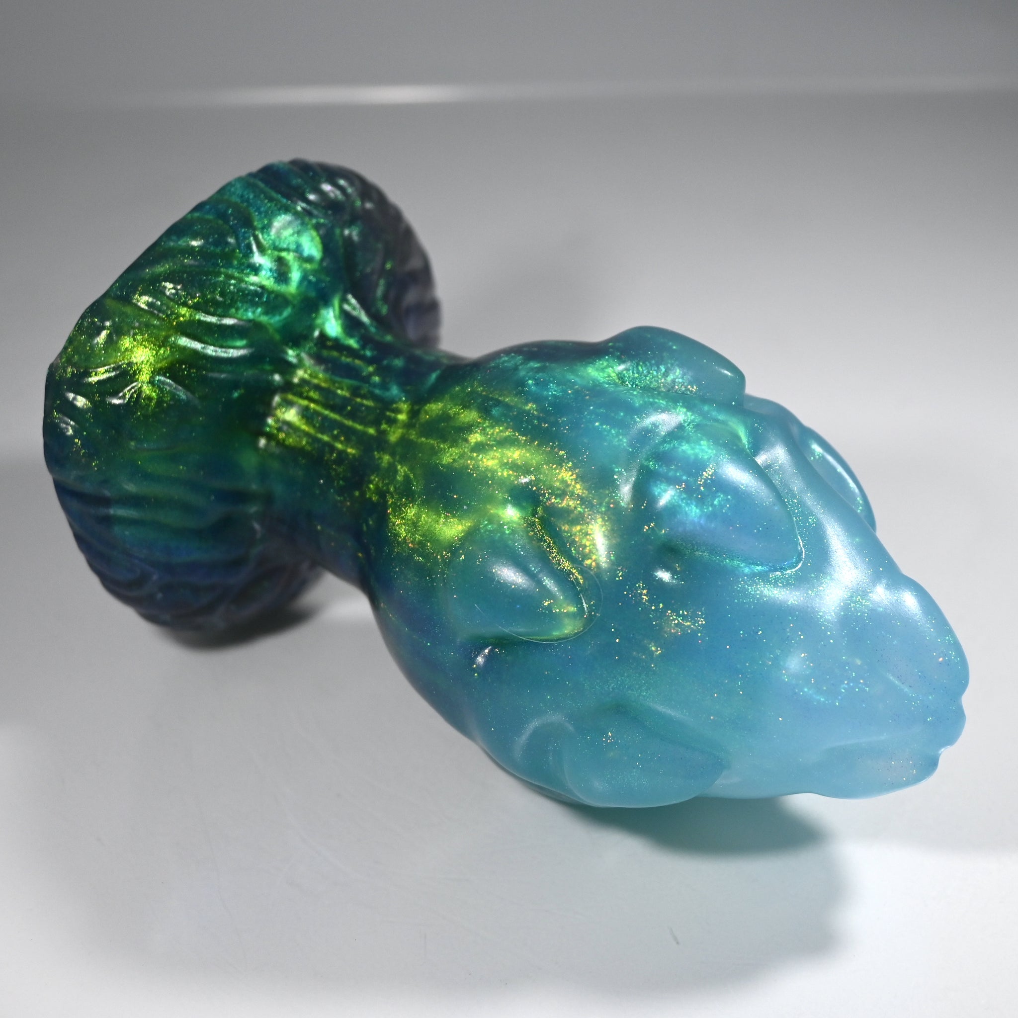 **NOTE: This product is made with Near Clear Ecoflex silicone and will therefore discoloration is more obvious (not more likely) than regular cloudy silicone. Please use extra caution to avoid staining with oil based lubes and bodily fluids. Boiling for long periods of time is not recommended. Please read our FAQ for additional care instructions.