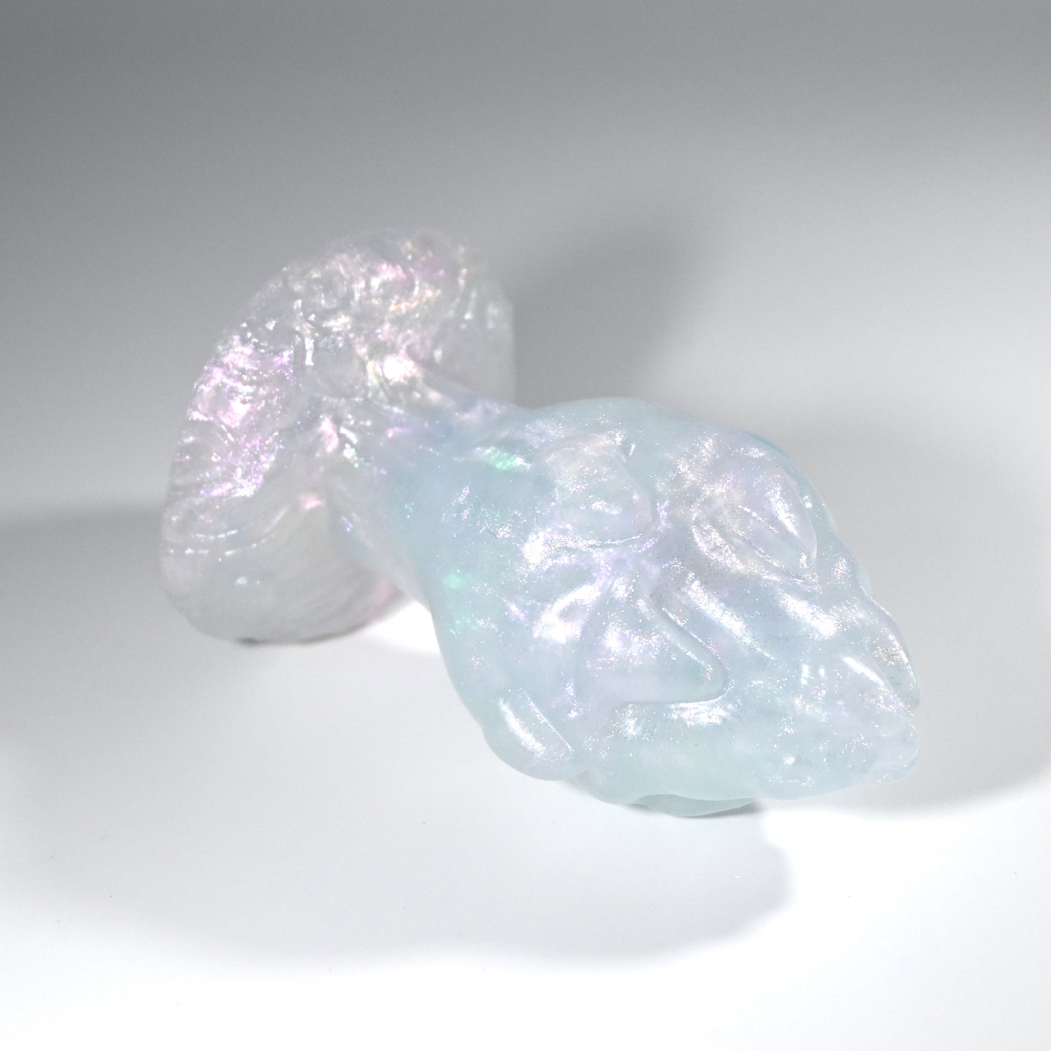 **NOTE: This product is made with Near Clear Ecoflex silicone and will therefore discoloration is more obvious (not more likely) than regular cloudy silicone. Please use extra caution to avoid staining with oil based lubes and bodily fluids. Boiling for long periods of time is not recommended. Please read our FAQ for additional care instructions.