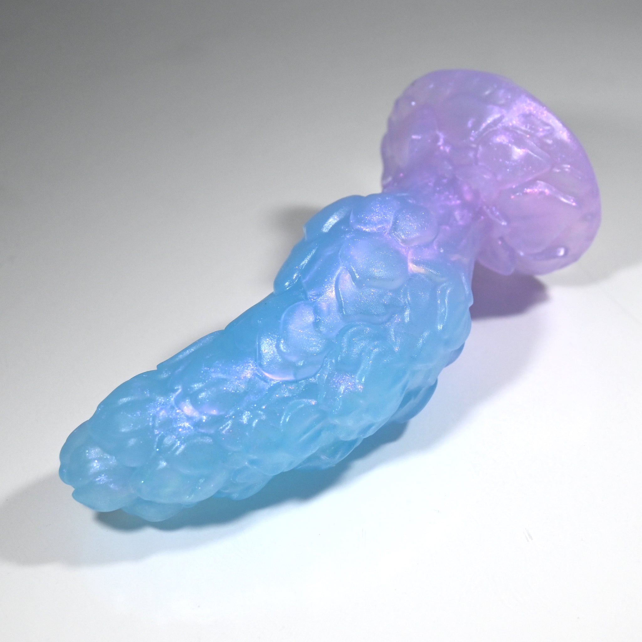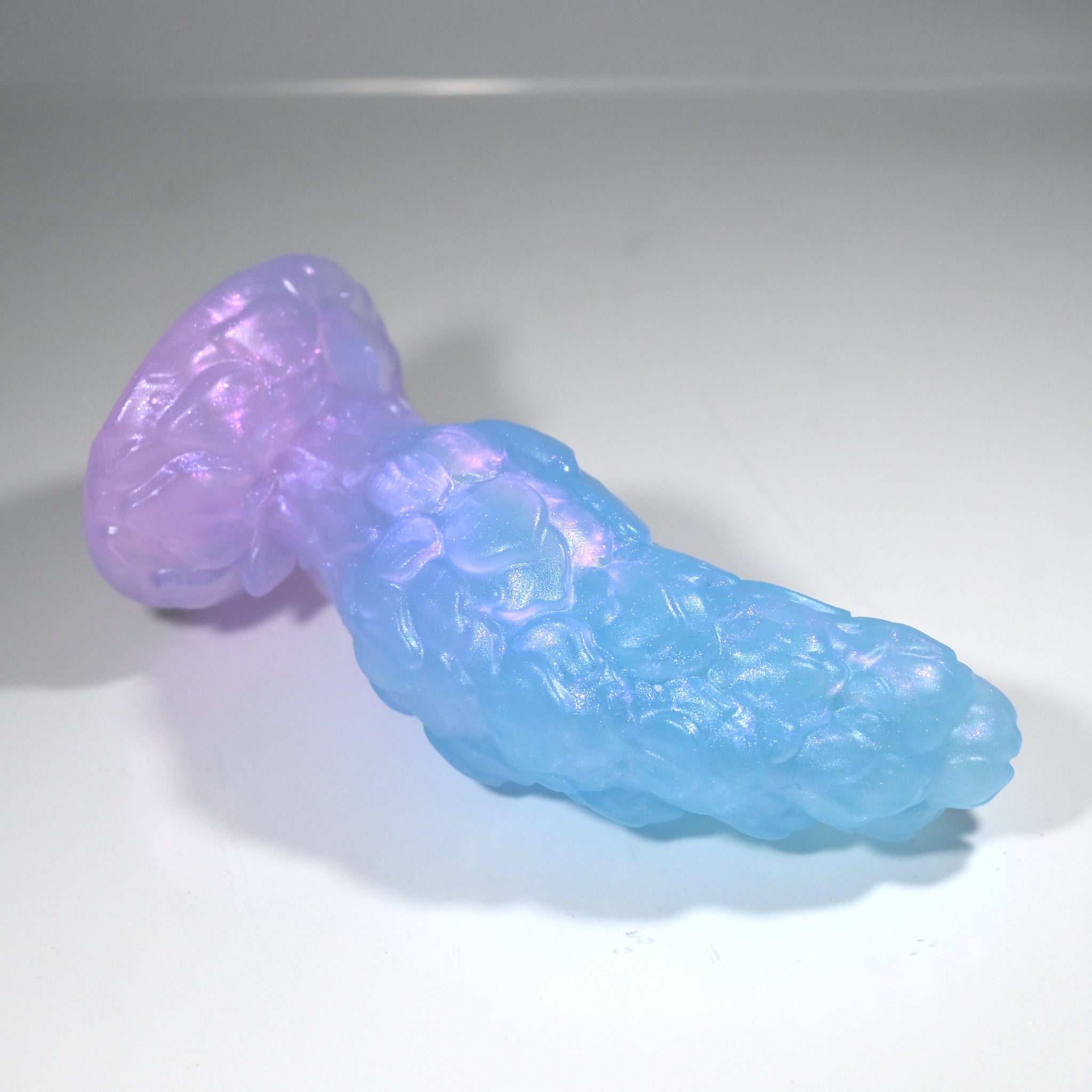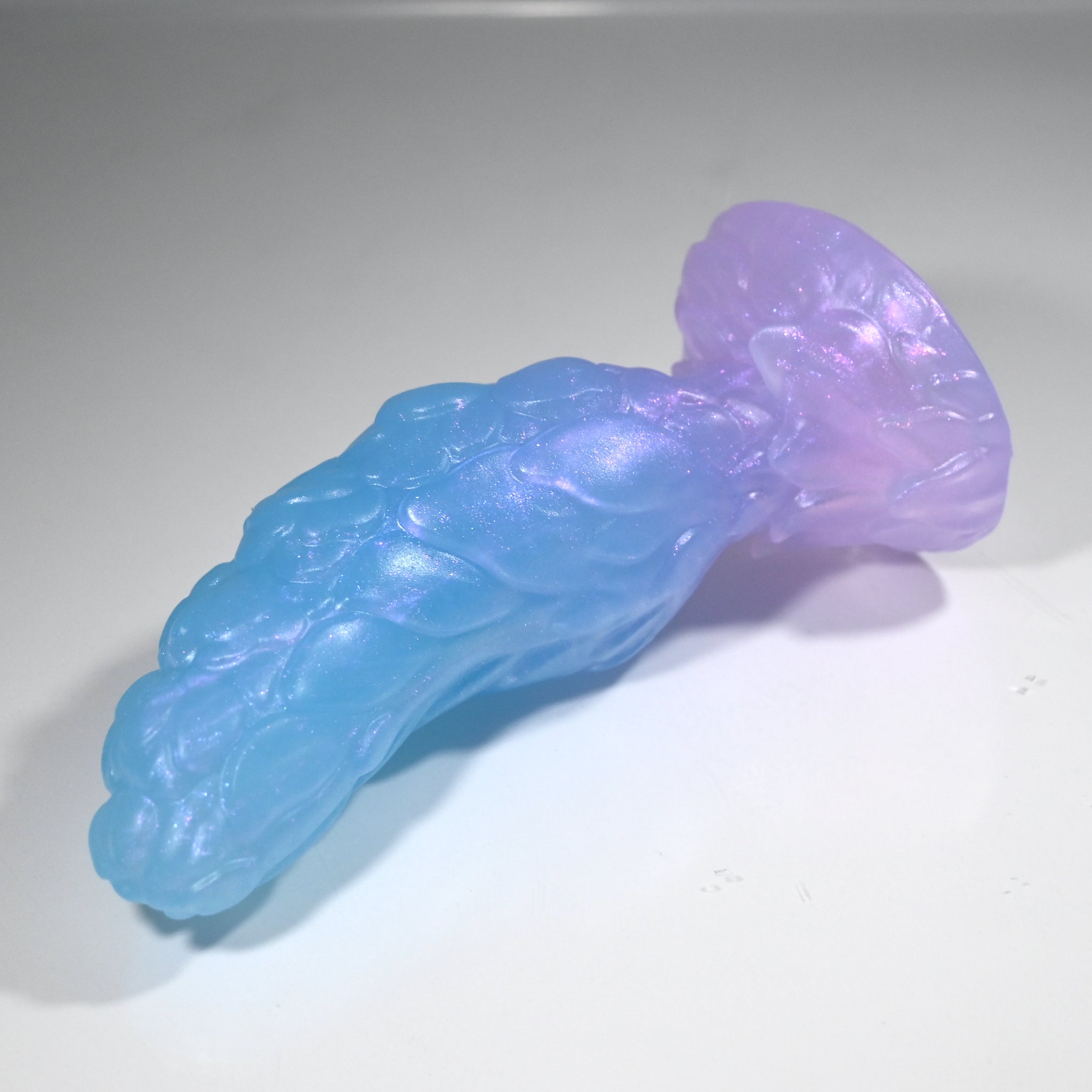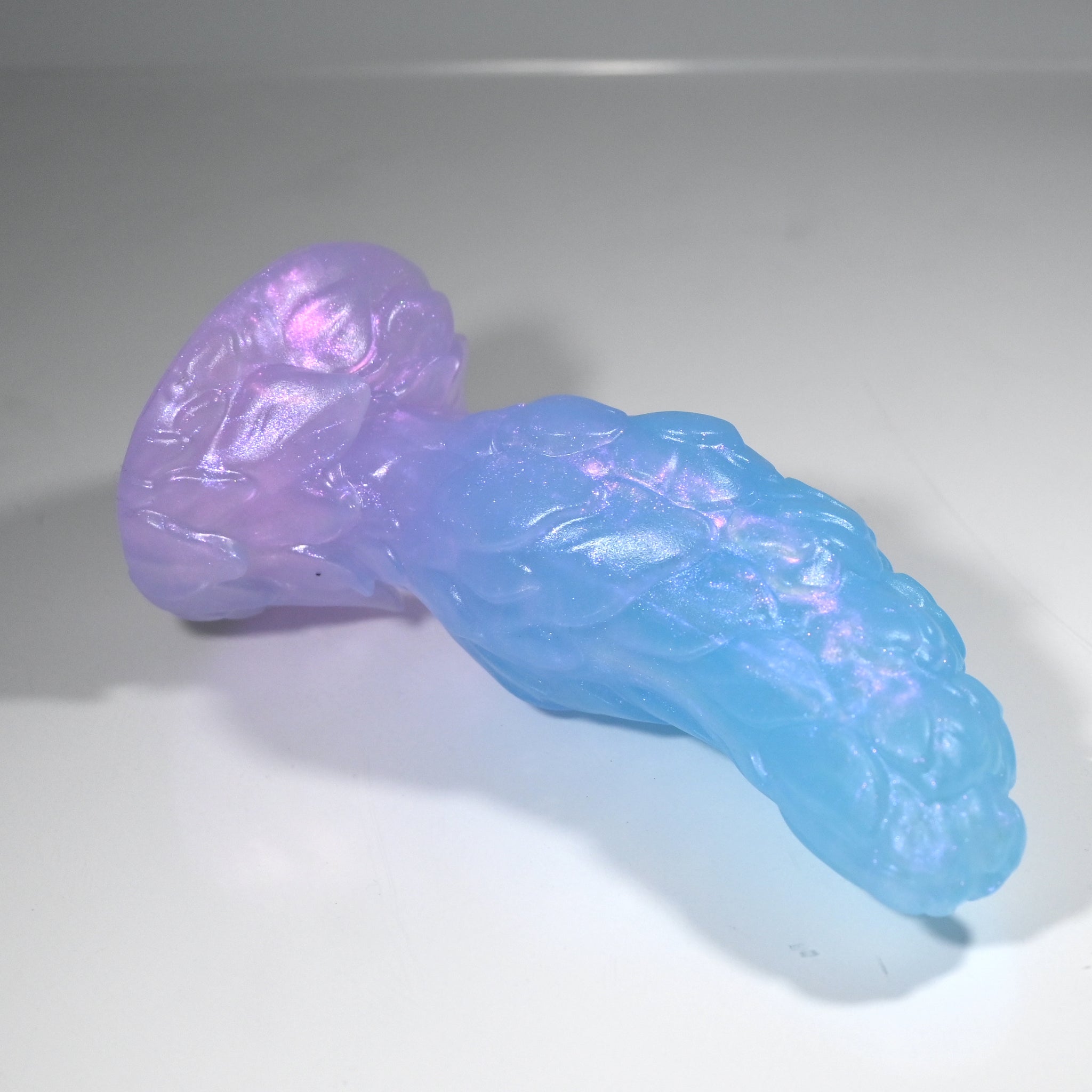 **NOTE: This product is made with Near Clear Ecoflex silicone and will therefore discoloration is more obvious (not more likely) than regular cloudy silicone. Please use extra caution to avoid staining with oil based lubes and bodily fluids. Boiling for long periods of time is not recommended. Please read our FAQ for additional care instructions.