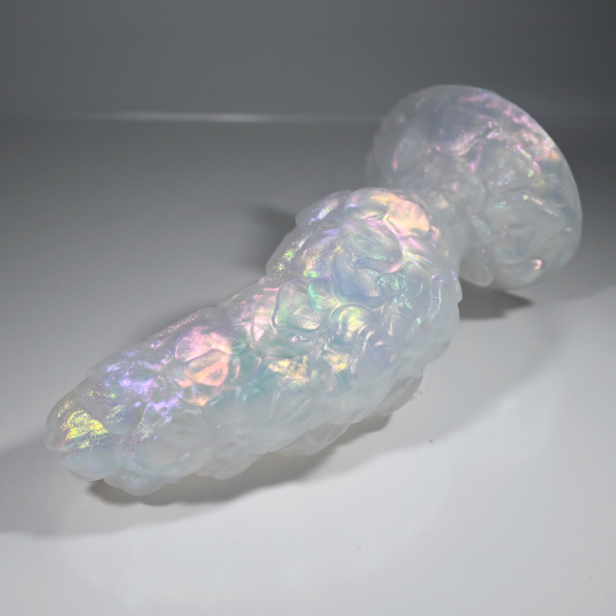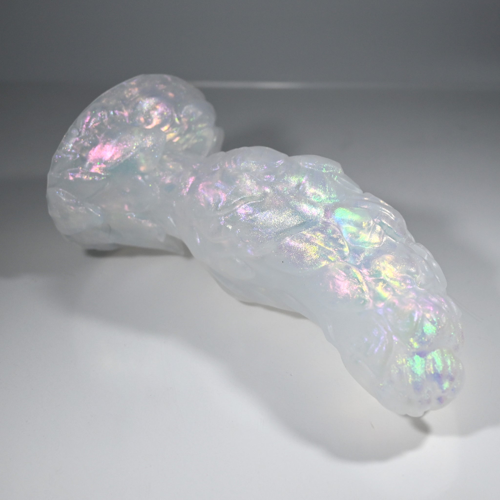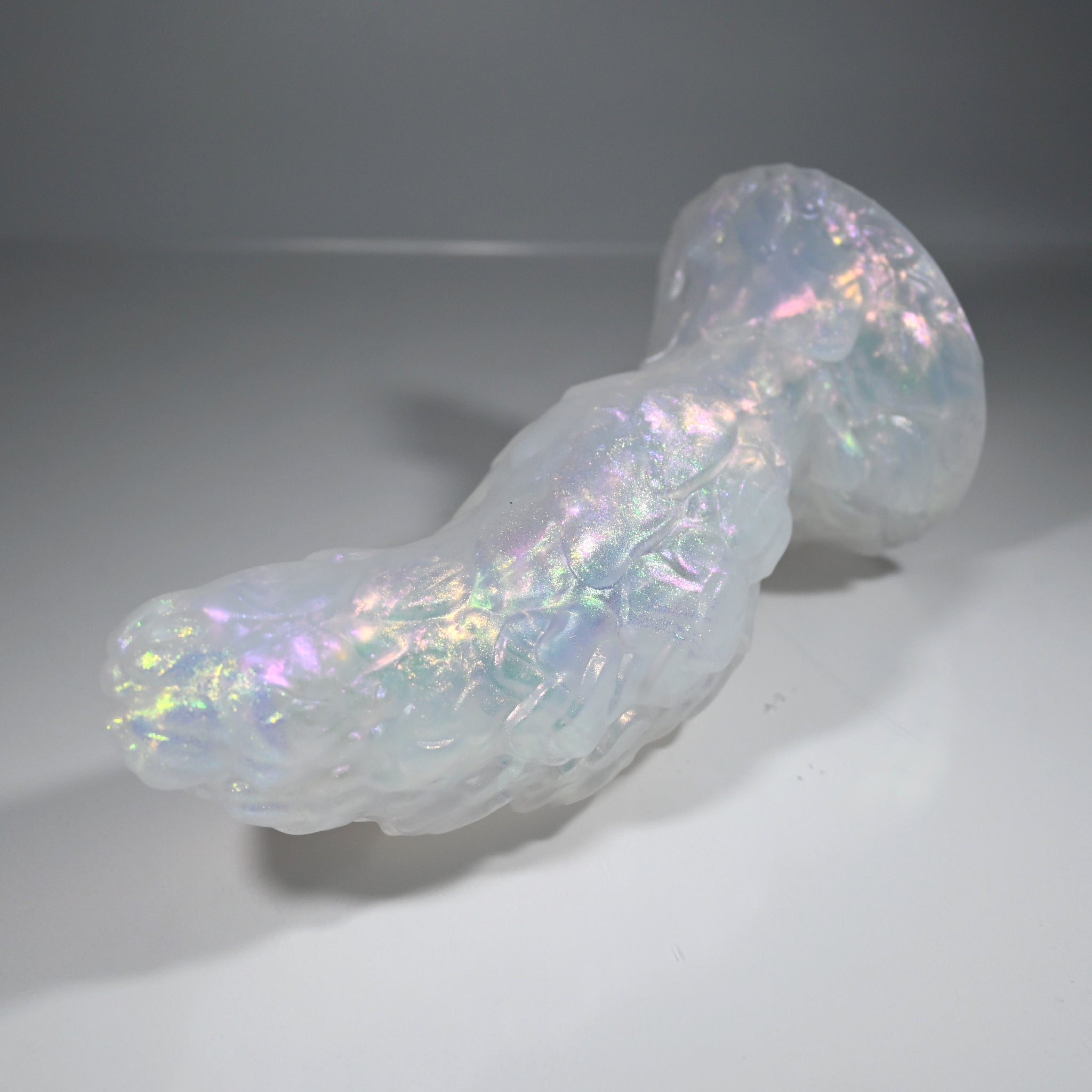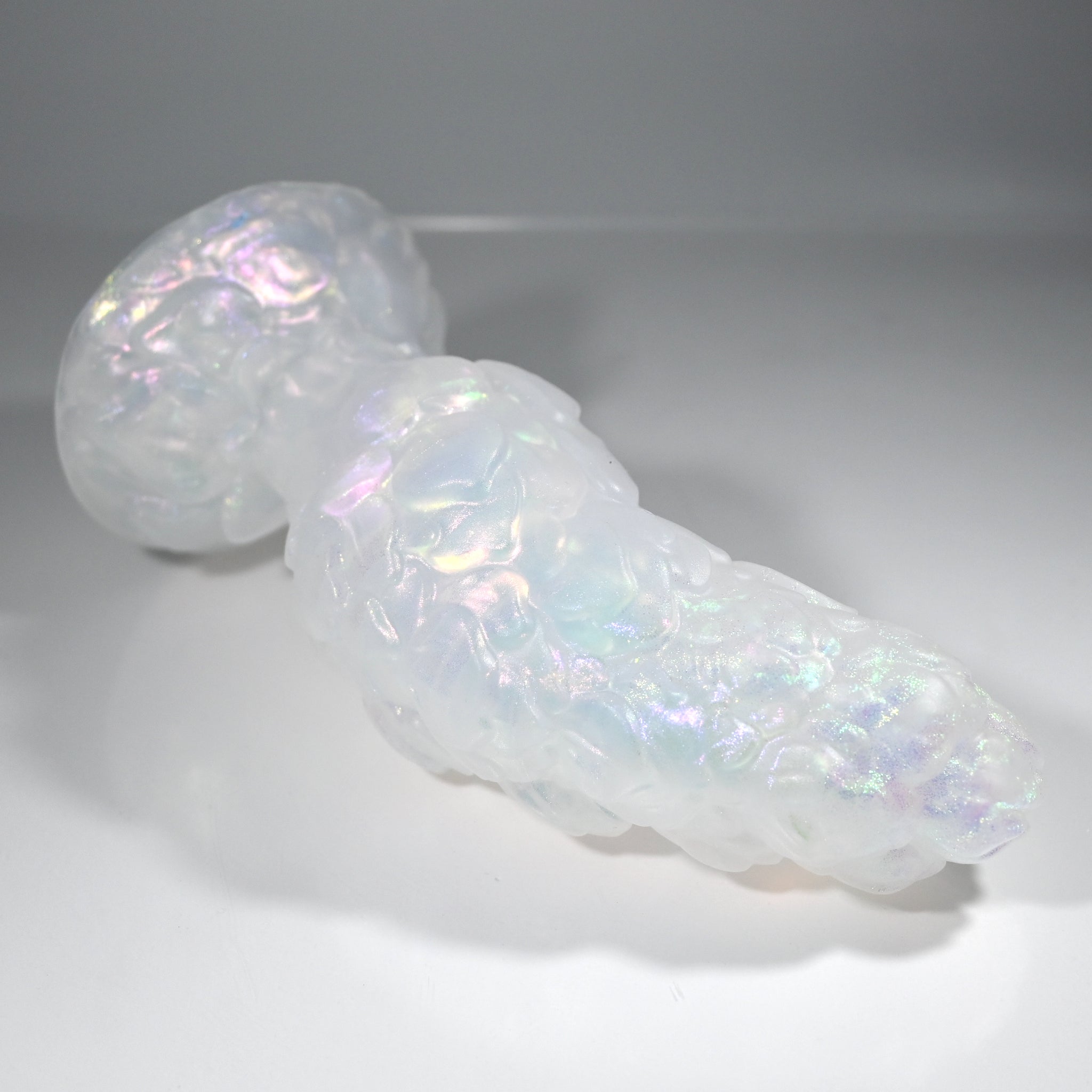 **NOTE: This product is made with Near Clear Ecoflex silicone and will therefore discoloration is more obvious (not more likely) than regular cloudy silicone. Please use extra caution to avoid staining with oil based lubes and bodily fluids. Boiling for long periods of time is not recommended. Please read our FAQ for additional care instructions.