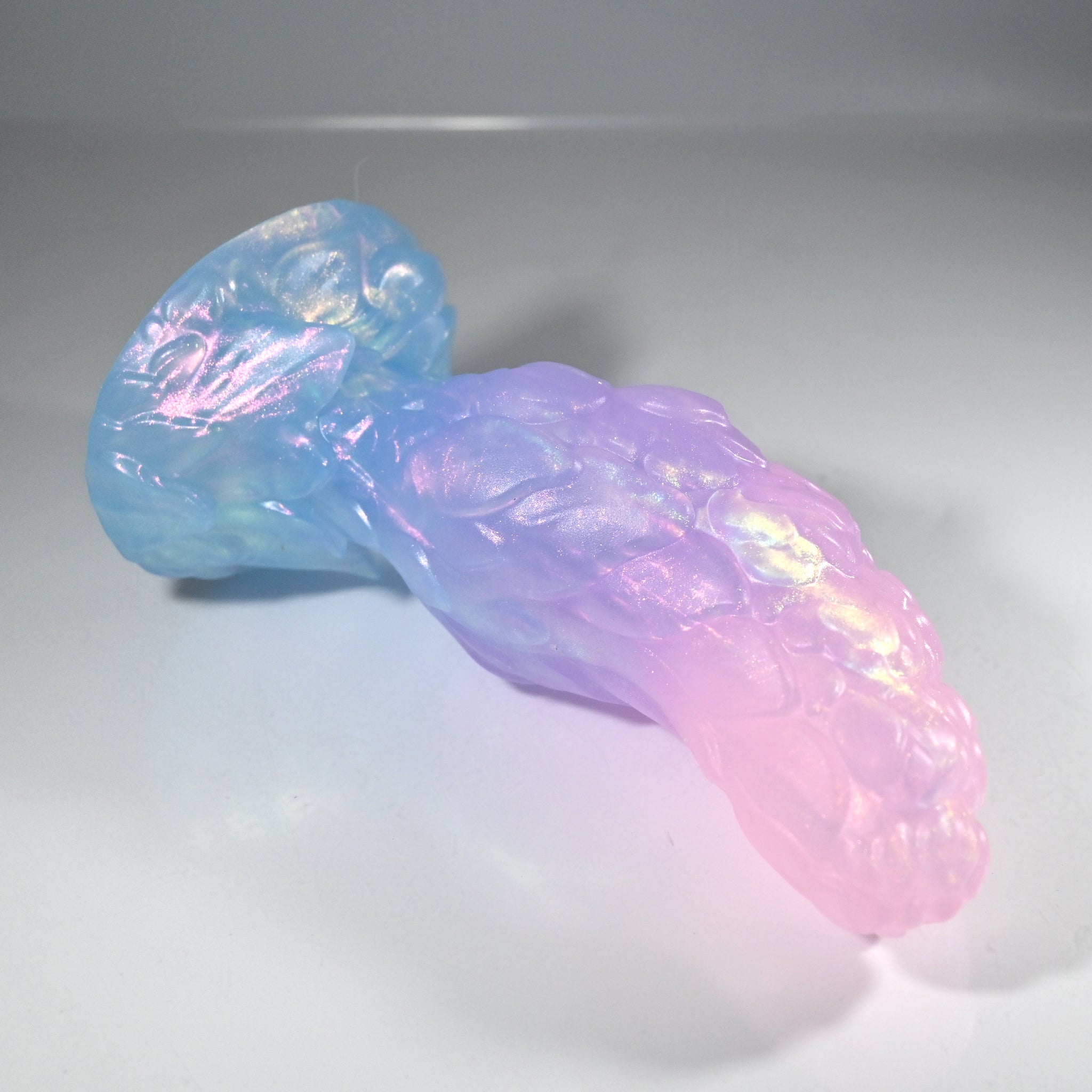 **NOTE: This product is made with Near Clear Ecoflex silicone and will therefore discoloration is more obvious (not more likely) than regular cloudy silicone. Please use extra caution to avoid staining with oil based lubes and bodily fluids. Boiling for long periods of time is not recommended. Please read our FAQ for additional care instructions.