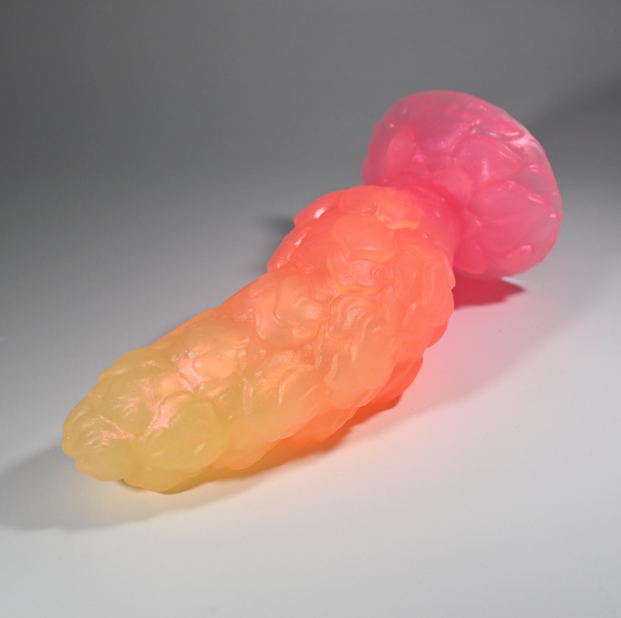 **NOTE: This product is made with Near Clear Ecoflex silicone and will therefore discoloration is more obvious (not more likely) than regular cloudy silicone. Please use extra caution to avoid staining with oil based lubes and bodily fluids. Boiling for long periods of time is not recommended. Please read our FAQ for additional care instructions.