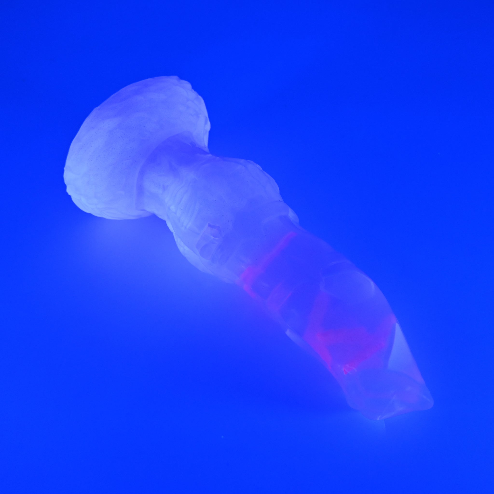 **NOTE: This product is made with Near Clear Ecoflex silicone and will therefore discoloration is more obvious (not more likely) than regular cloudy silicone. Please use extra caution to avoid staining with oil based lubes and bodily fluids. Boiling for long periods of time is not recommended. Please read our FAQ for additional care instructions.