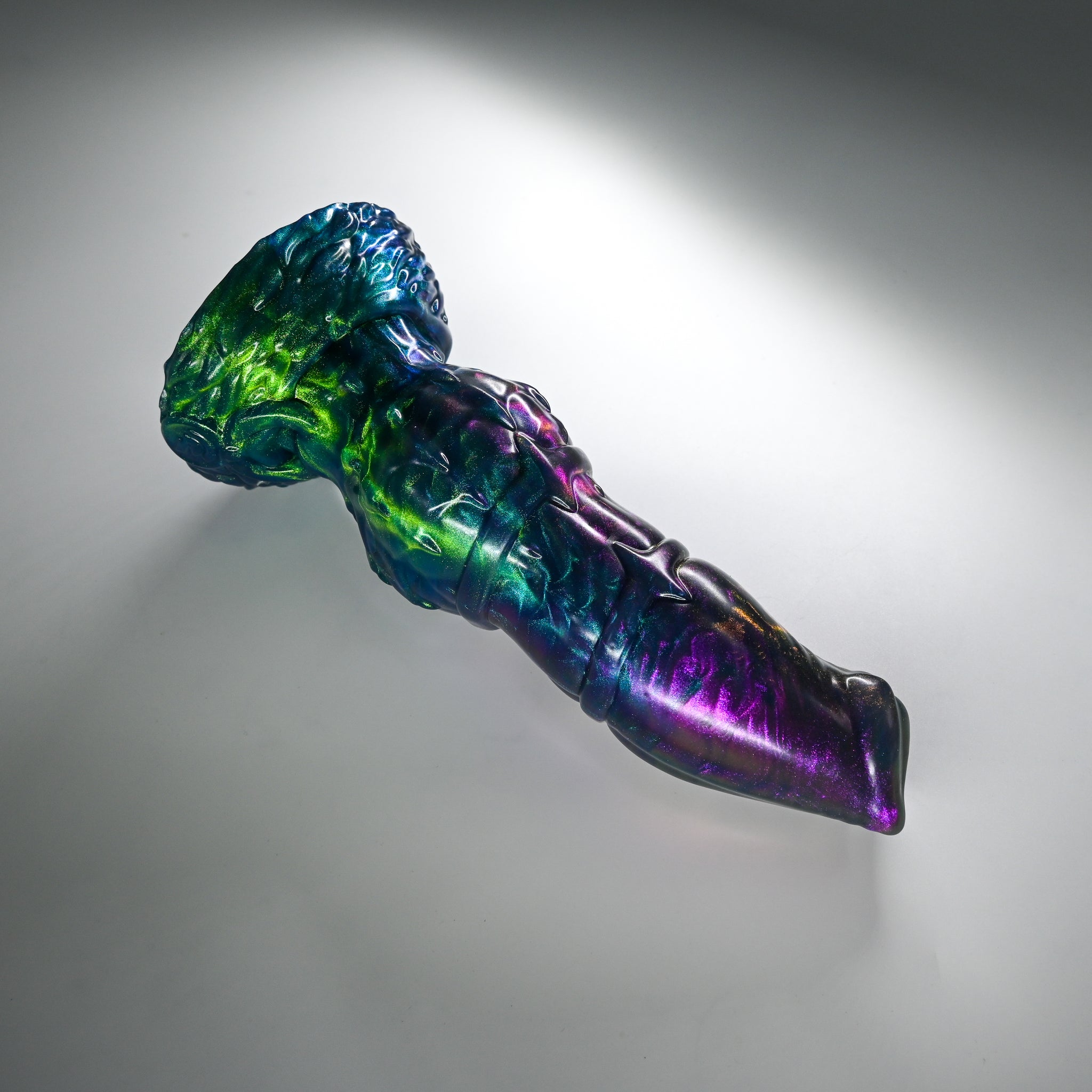 **NOTE: This product is made with Near Clear Ecoflex silicone and will therefore discoloration is more obvious (not more likely) than regular cloudy silicone. Please use extra caution to avoid staining with oil based lubes and bodily fluids. Boiling for long periods of time is not recommended. Please read our FAQ for additional care instructions.