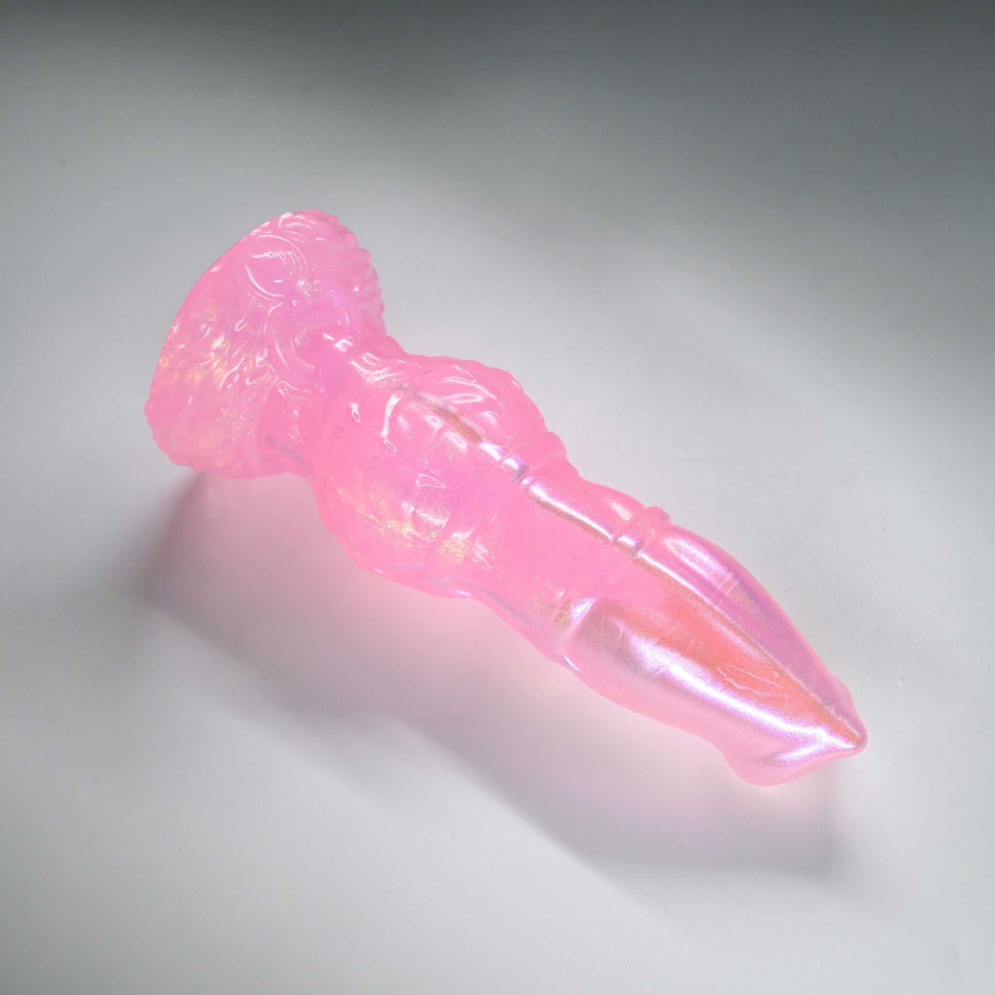 **NOTE: This product is made with Near Clear Ecoflex silicone and will therefore discoloration is more obvious (not more likely) than regular cloudy silicone. Please use extra caution to avoid staining with oil based lubes and bodily fluids. Boiling for long periods of time is not recommended. Please read our FAQ for additional care instructions.