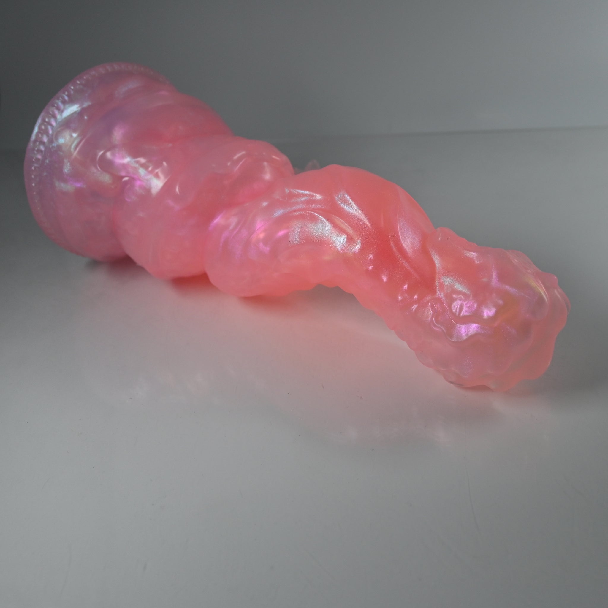 **NOTE: This product is made with Near Clear Ecoflex silicone and will therefore discoloration is more obvious (not more likely) than regular cloudy silicone. Please use extra caution to avoid staining with oil based lubes and bodily fluids. Boiling for long periods of time is not recommended. Please read our FAQ for additional care instructions.