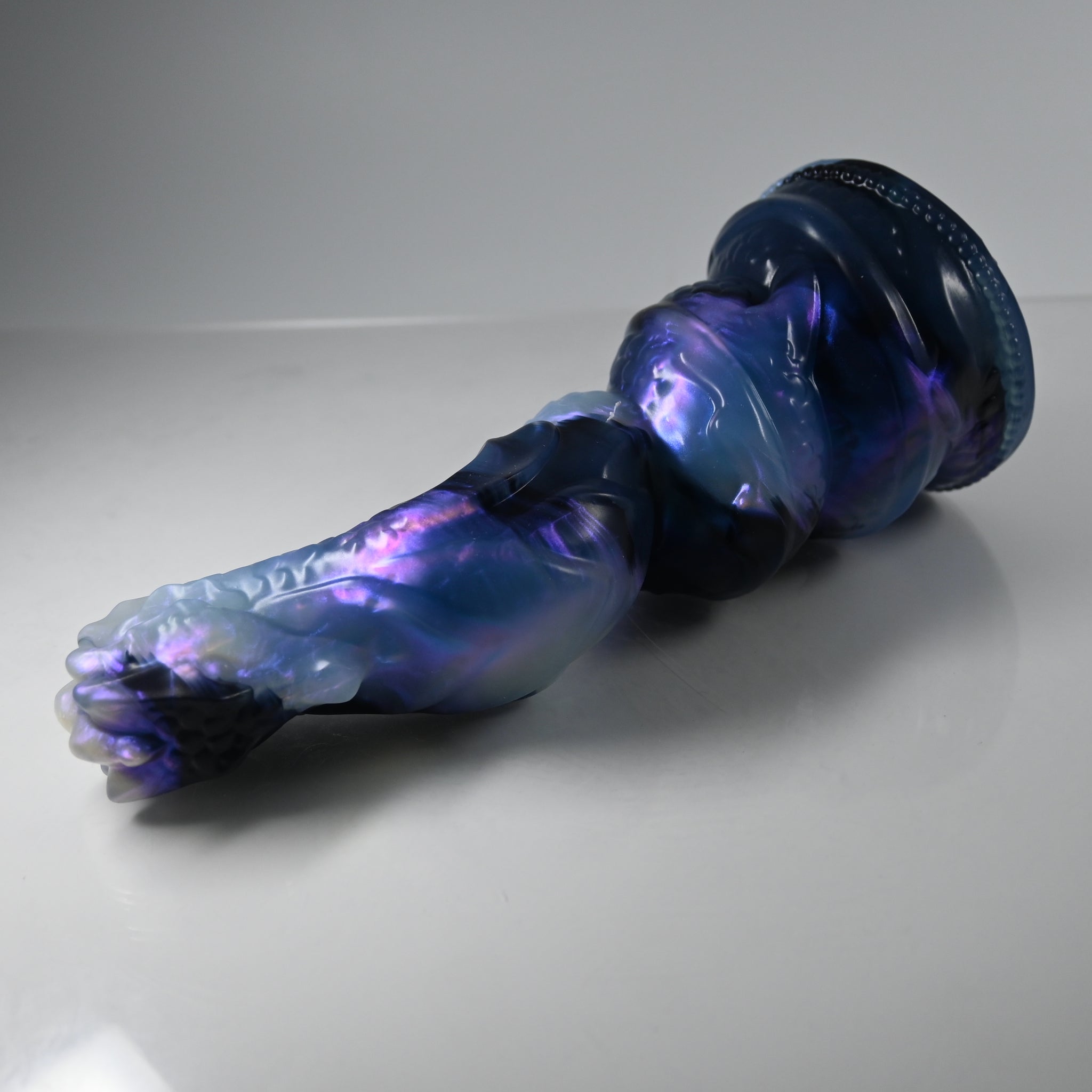 **NOTE: This product is made with Near Clear Ecoflex silicone and will therefore discoloration is more obvious (not more likely) than regular cloudy silicone. Please use extra caution to avoid staining with oil based lubes and bodily fluids. Boiling for long periods of time is not recommended. Please read our FAQ for additional care instructions.