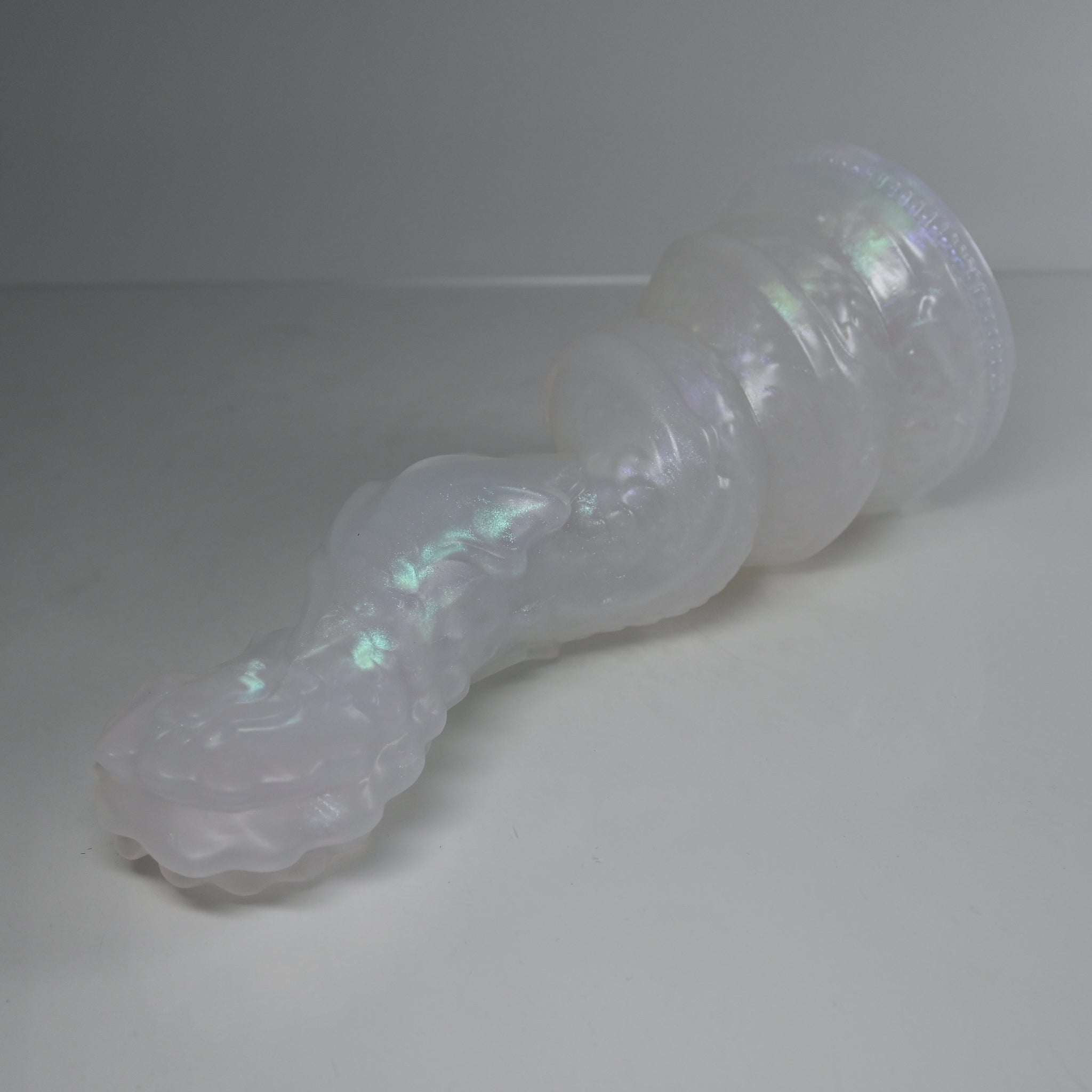 **NOTE: This product is made with Near Clear Ecoflex silicone and will therefore discoloration is more obvious (not more likely) than regular cloudy silicone. Please use extra caution to avoid staining with oil based lubes and bodily fluids. Boiling for long periods of time is not recommended. Please read our FAQ for additional care instructions.