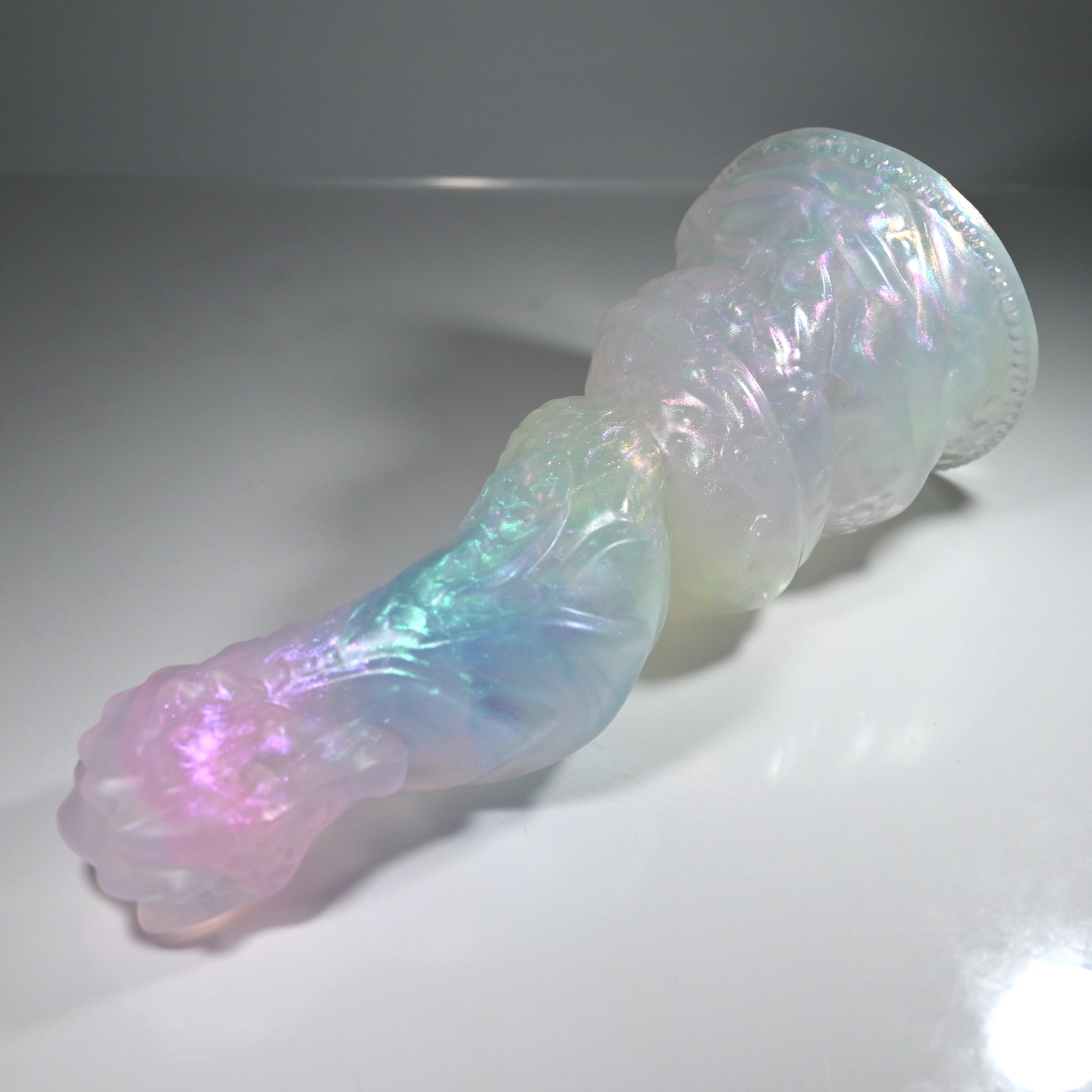 **NOTE: This product is made with Near Clear Ecoflex silicone and will therefore discoloration is more obvious (not more likely) than regular cloudy silicone. Please use extra caution to avoid staining with oil based lubes and bodily fluids. Boiling for long periods of time is not recommended. Please read our FAQ for additional care instructions.