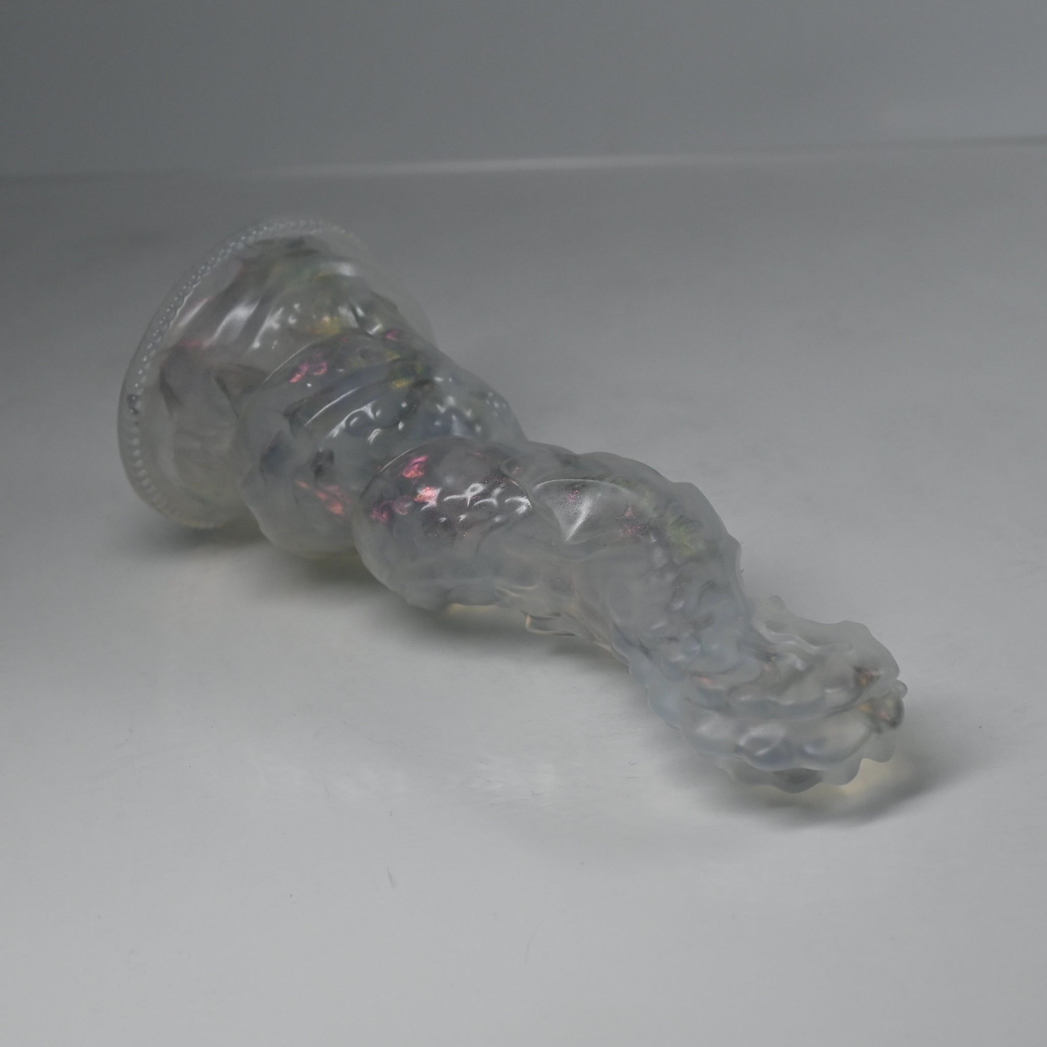**NOTE: This product is made with Near Clear Ecoflex silicone and will therefore discoloration is more obvious (not more likely) than regular cloudy silicone. Please use extra caution to avoid staining with oil based lubes and bodily fluids. Boiling for long periods of time is not recommended. Please read our FAQ for additional care instructions.