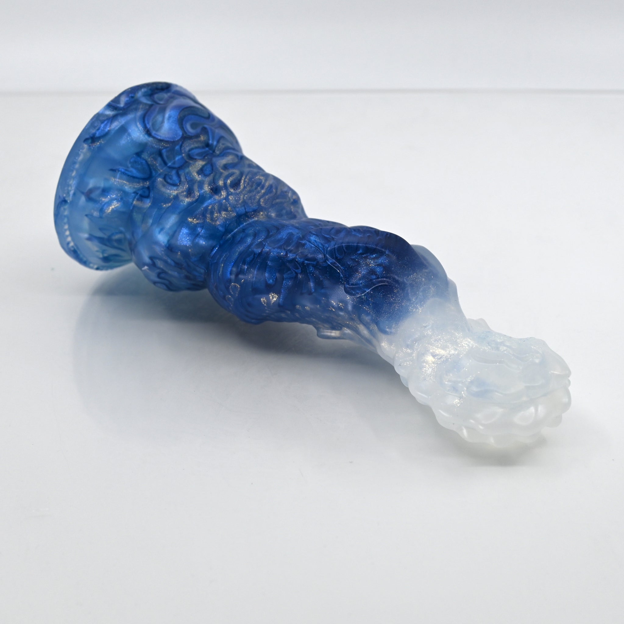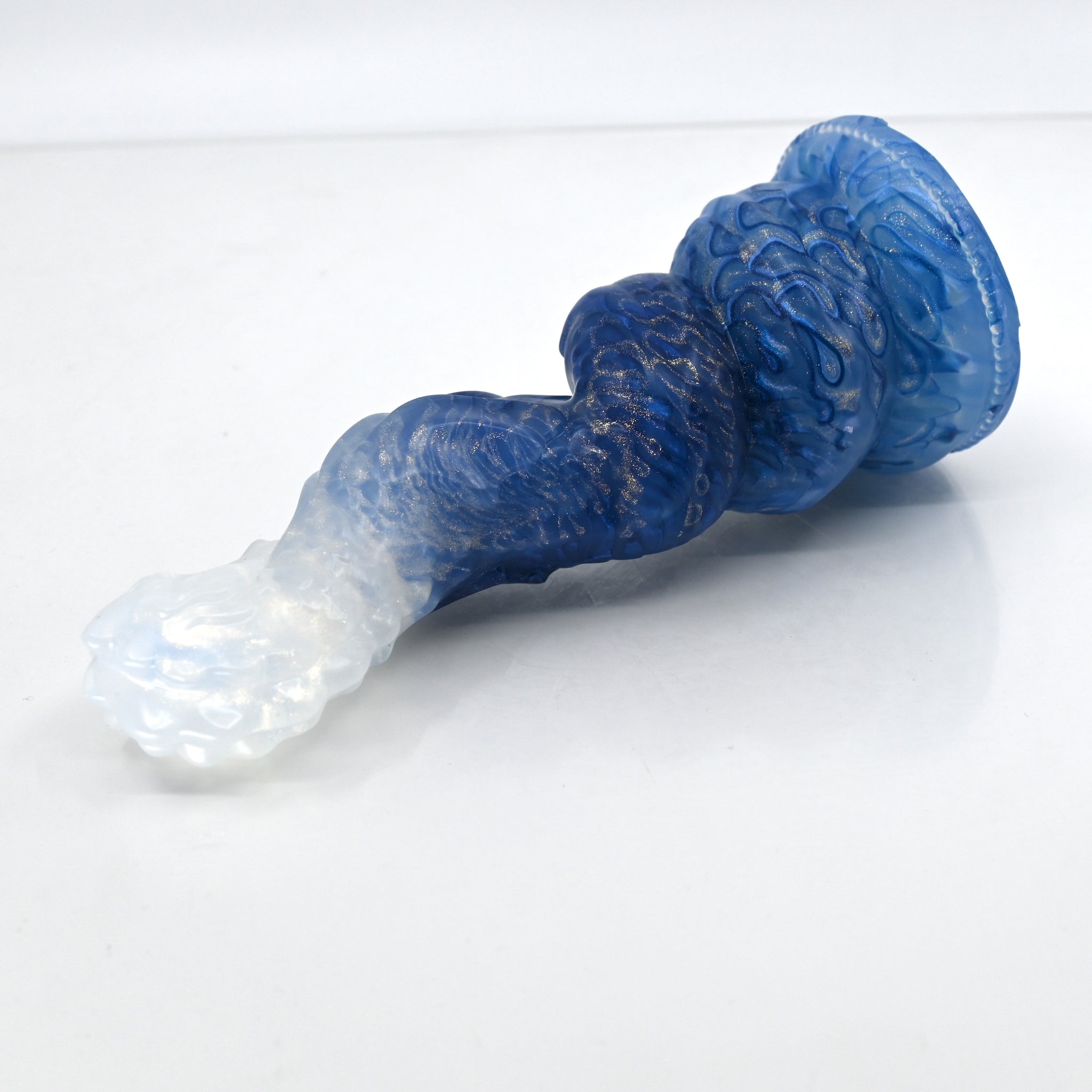 **NOTE: This product is made with Near Clear Ecoflex silicone and will therefore discoloration is more obvious (not more likely) than regular cloudy silicone. Please use extra caution to avoid staining with oil based lubes and bodily fluids. Boiling for long periods of time is not recommended. Please read our FAQ for additional care instructions.