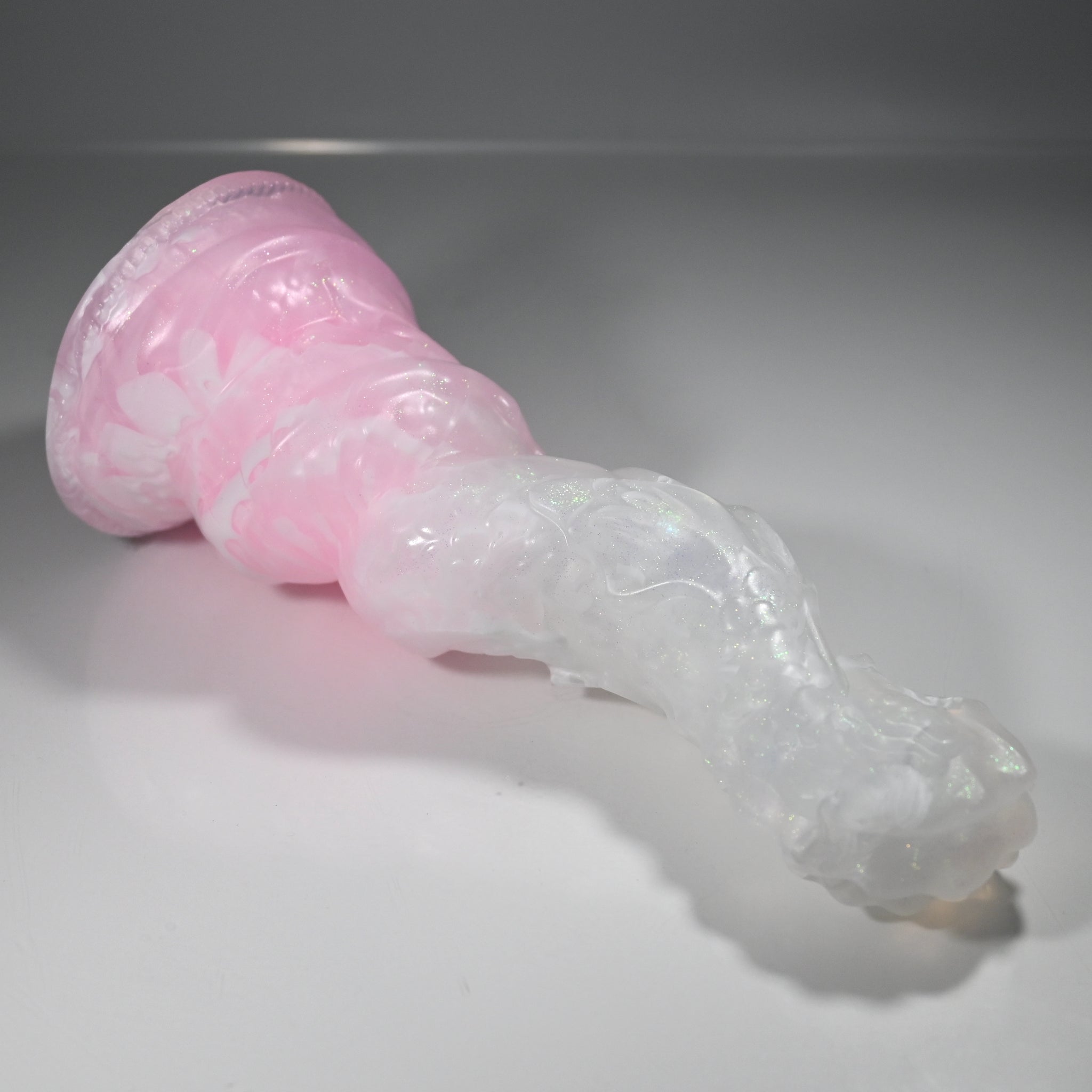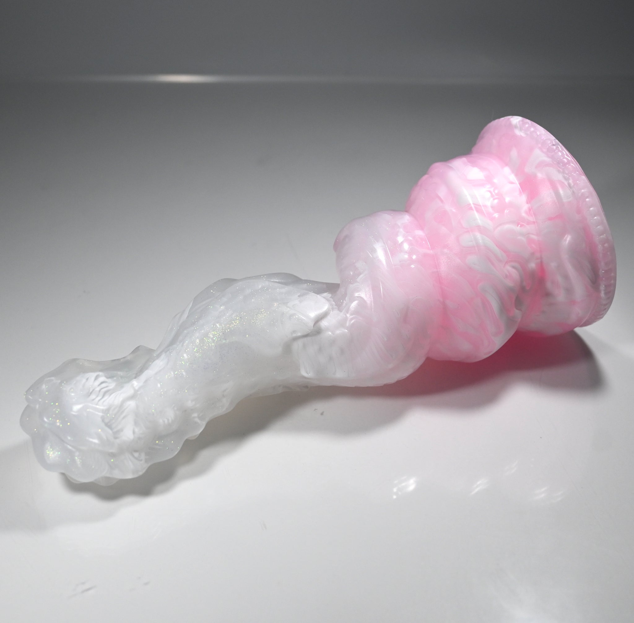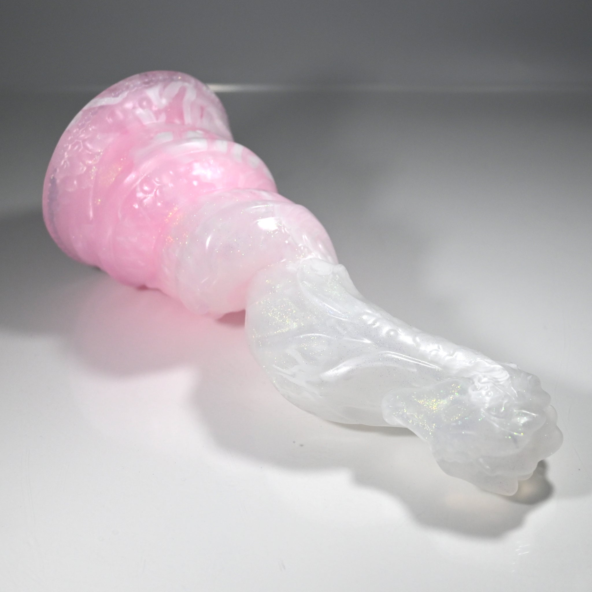 **NOTE: This product is made with Near Clear Ecoflex silicone and will therefore discoloration is more obvious (not more likely) than regular cloudy silicone. Please use extra caution to avoid staining with oil based lubes and bodily fluids. Boiling for long periods of time is not recommended. Please read our FAQ for additional care instructions.