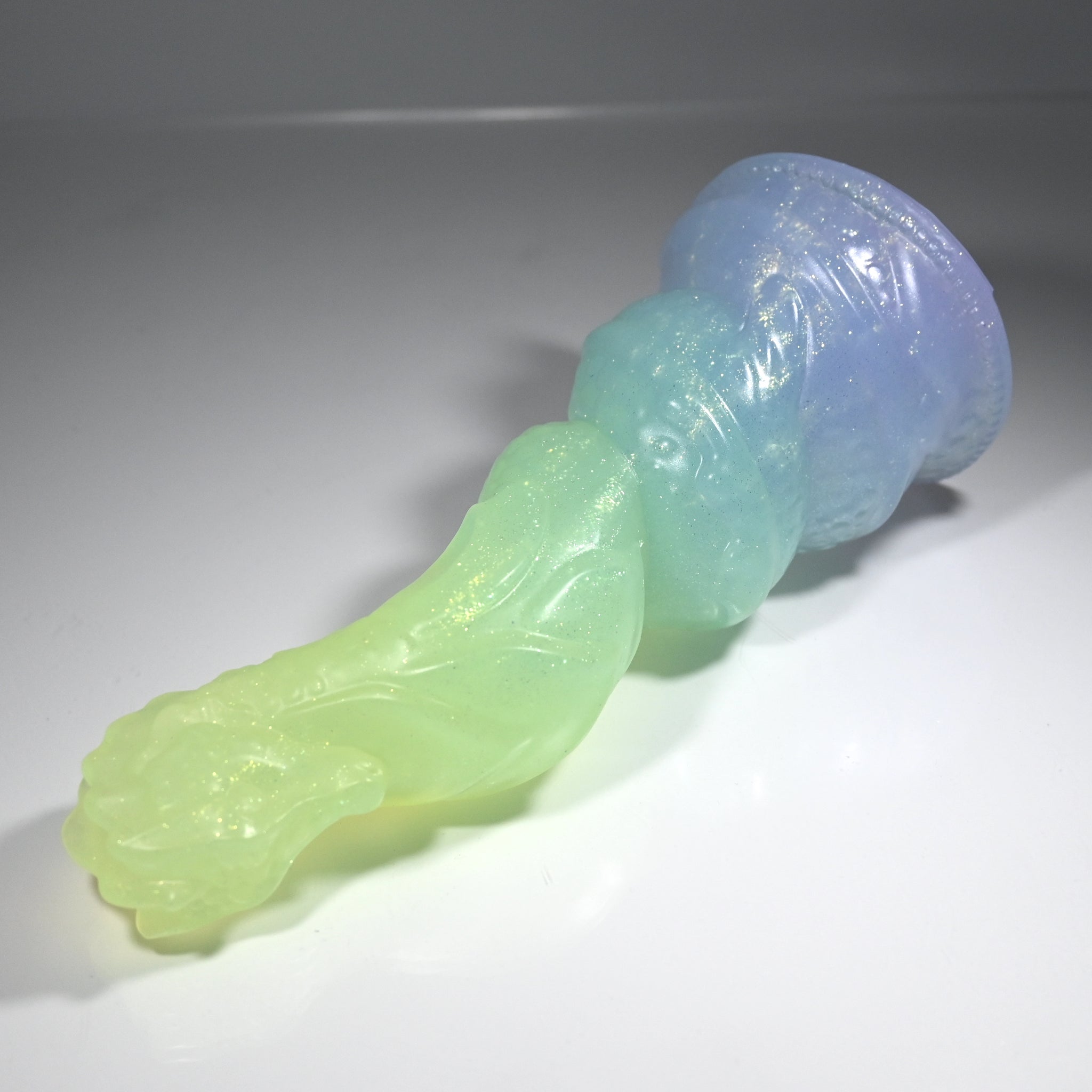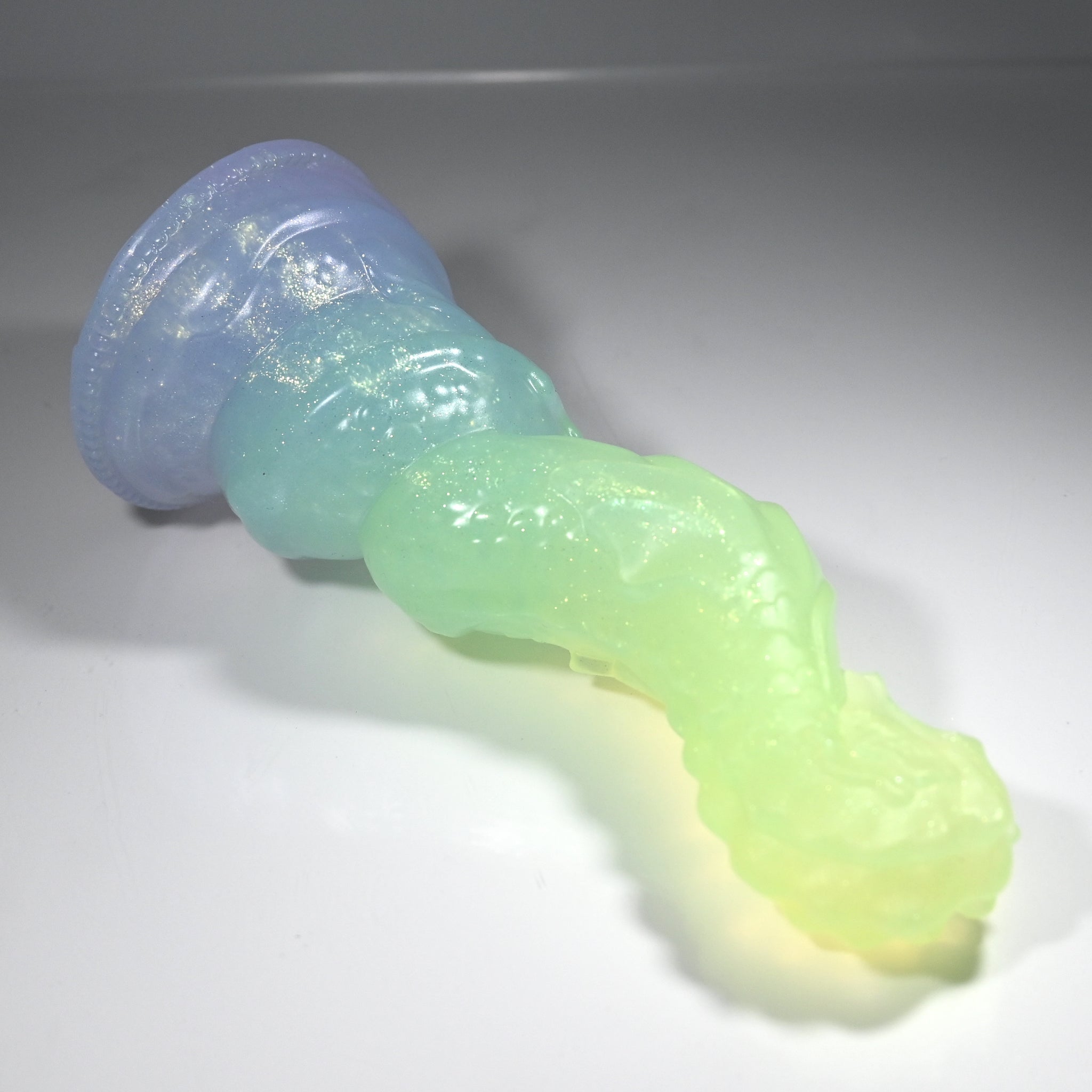 **NOTE: This product is made with Near Clear Ecoflex silicone and will therefore discoloration is more obvious (not more likely) than regular cloudy silicone. Please use extra caution to avoid staining with oil based lubes and bodily fluids. Boiling for long periods of time is not recommended. Please read our FAQ for additional care instructions.