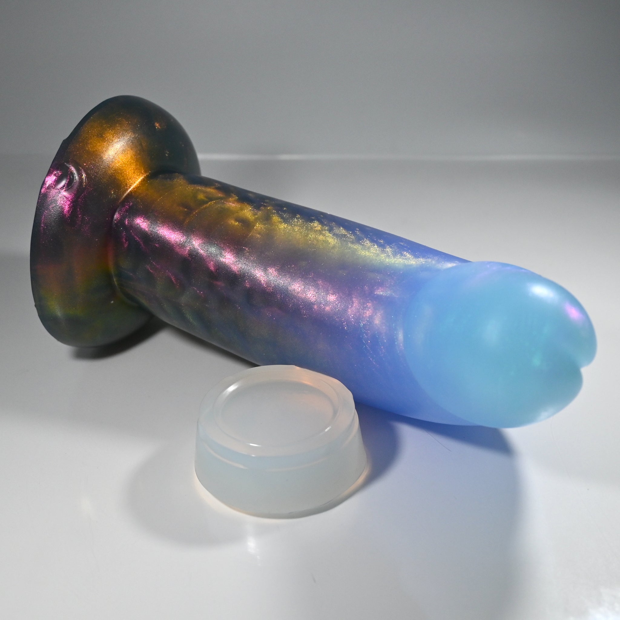 **NOTE: This product is made with Near Clear Ecoflex silicone and will therefore discoloration is more obvious (not more likely) than regular cloudy silicone. Please use extra caution to avoid staining with oil based lubes and bodily fluids. Boiling for long periods of time is not recommended. Please read our FAQ for additional care instructions.