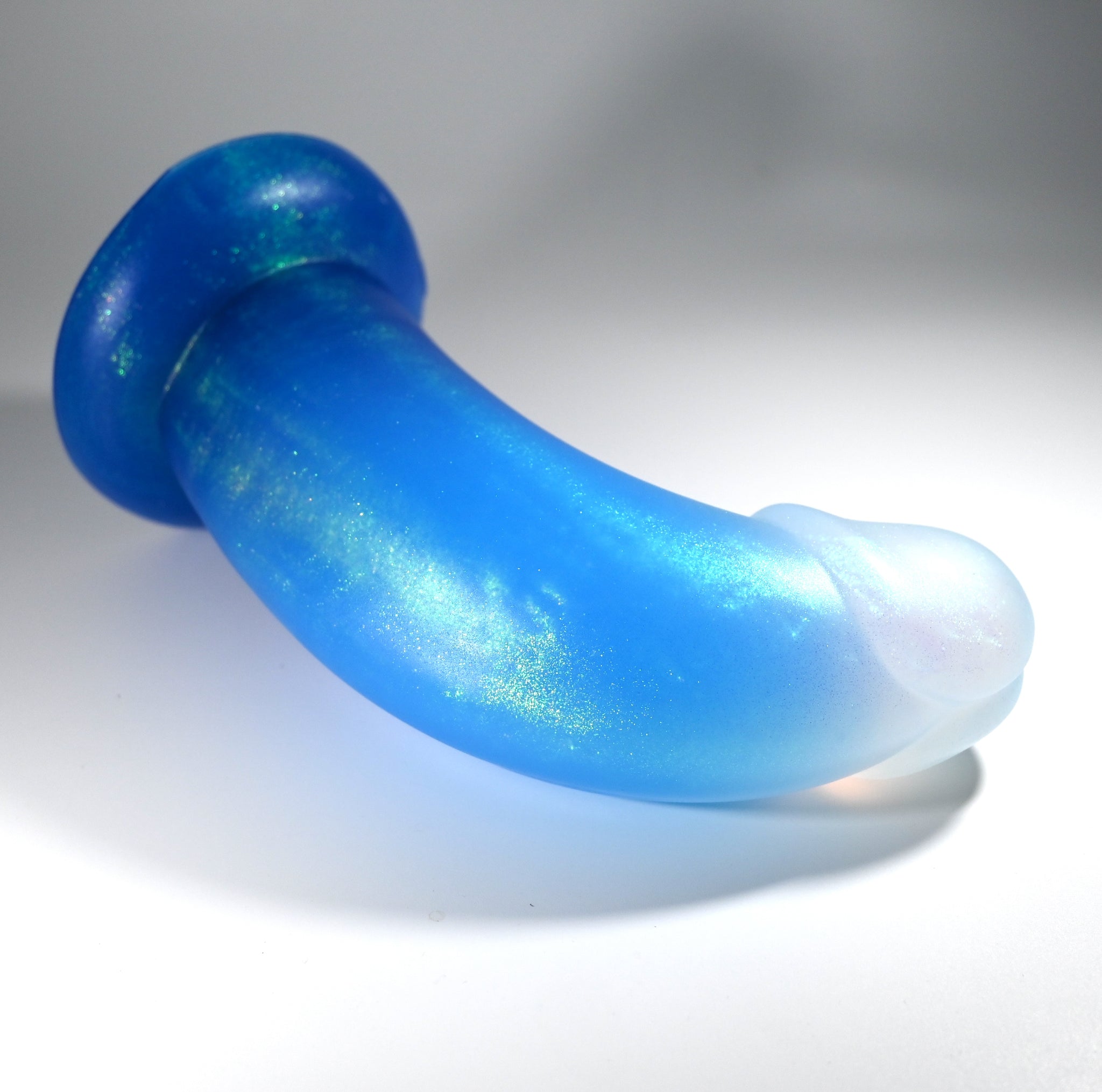 **NOTE: This product is made with Near Clear Ecoflex silicone and will therefore discoloration is more obvious (not more likely) than regular cloudy silicone. Please use extra caution to avoid staining with oil based lubes and bodily fluids. Boiling for long periods of time is not recommended. Please read our FAQ for additional care instructions.