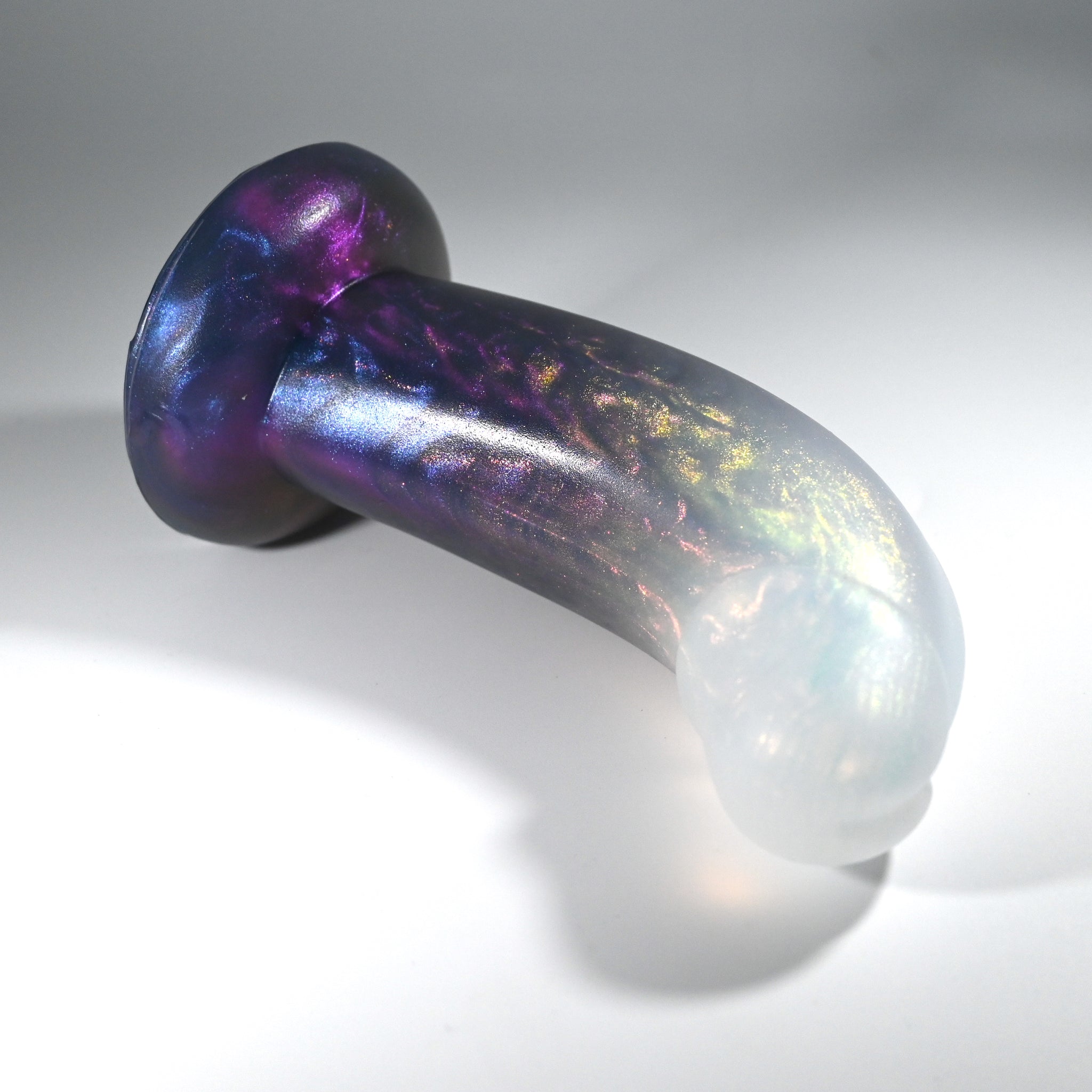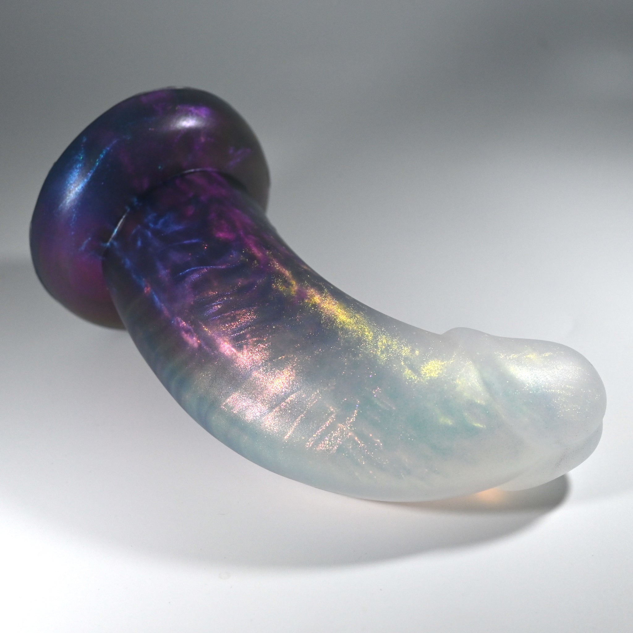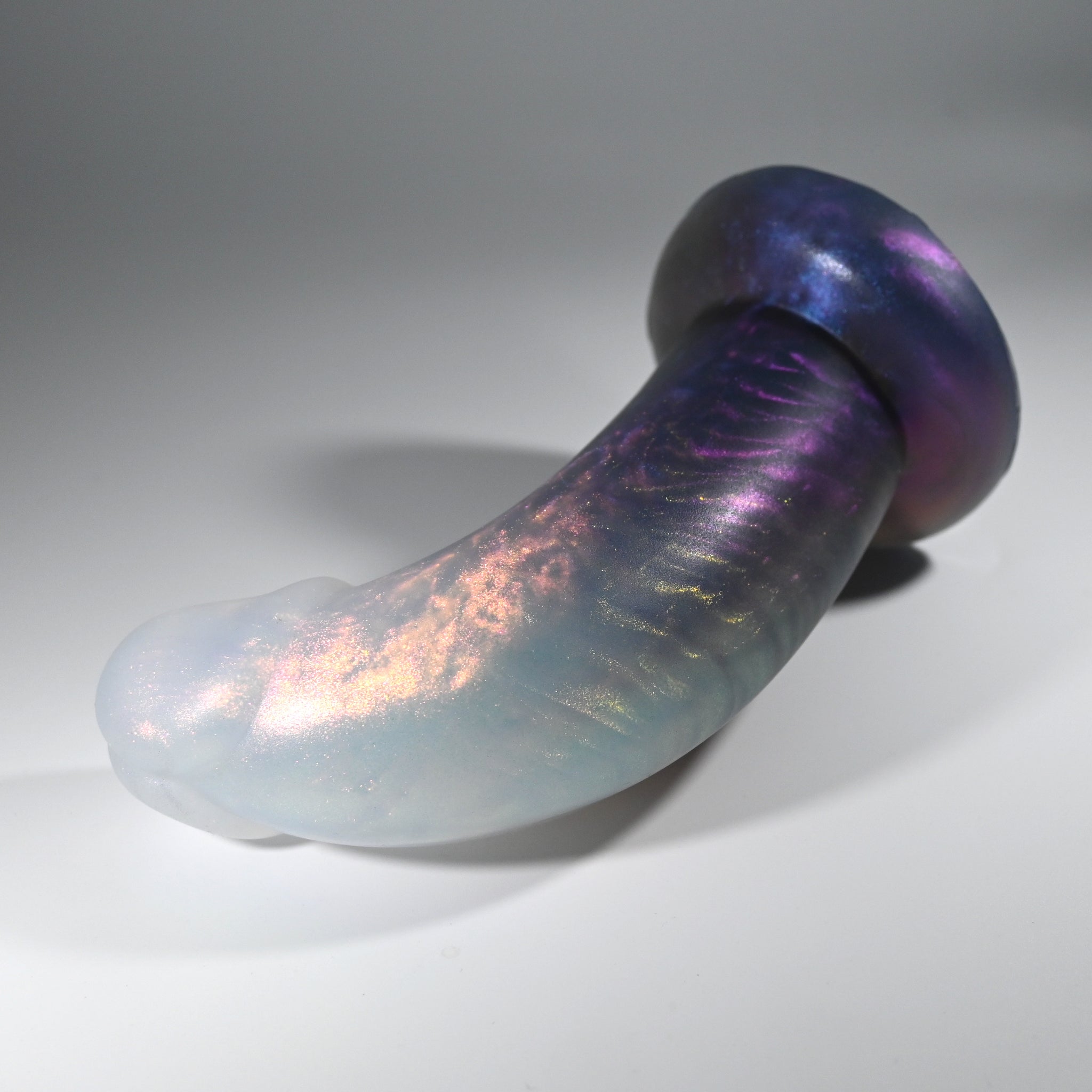 **NOTE: This product is made with Near Clear Ecoflex silicone and will therefore discoloration is more obvious (not more likely) than regular cloudy silicone. Please use extra caution to avoid staining with oil based lubes and bodily fluids. Boiling for long periods of time is not recommended. Please read our FAQ for additional care instructions.