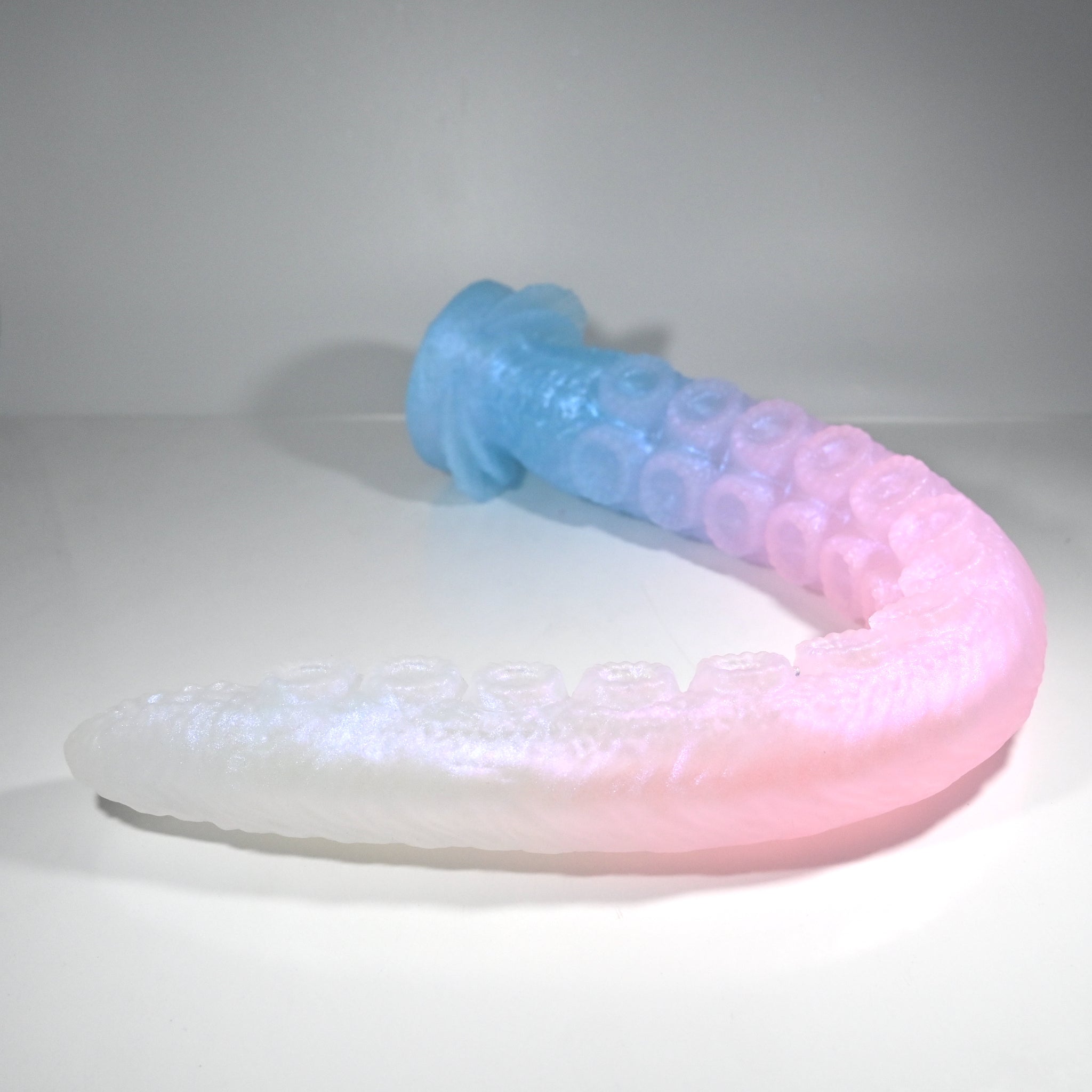 **NOTE: This product is made with Near Clear Ecoflex silicone and will therefore discoloration is more obvious (not more likely) than regular cloudy silicone. Please use extra caution to avoid staining with oil based lubes and bodily fluids. Boiling for long periods of time is not recommended. Please read our FAQ for additional care instructions.