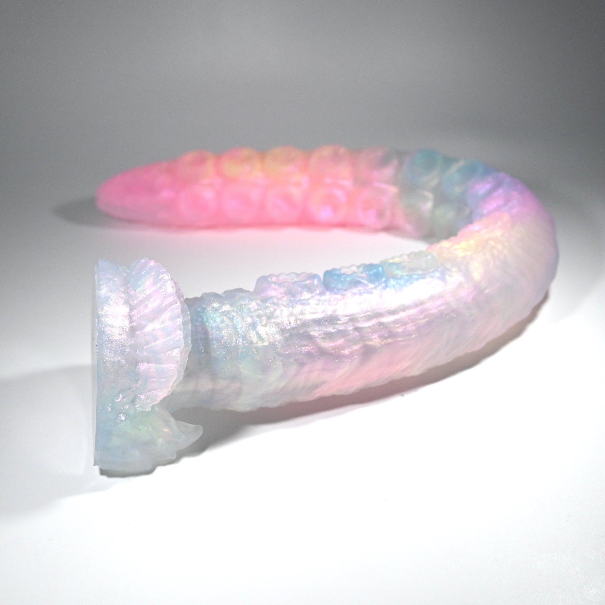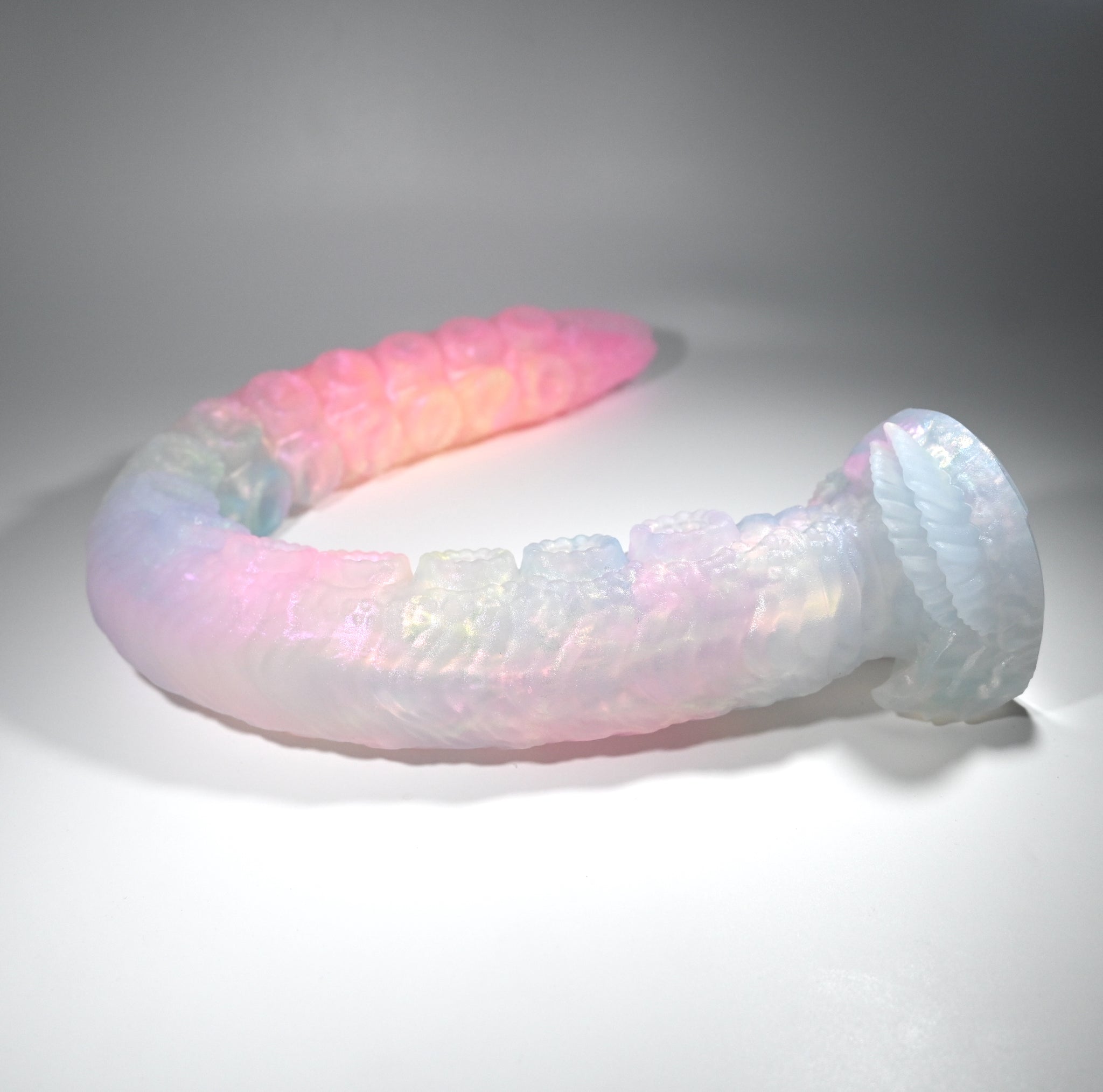 **NOTE: This product is made with Near Clear Ecoflex silicone and will therefore discoloration is more obvious (not more likely) than regular cloudy silicone. Please use extra caution to avoid staining with oil based lubes and bodily fluids. Boiling for long periods of time is not recommended. Please read our FAQ for additional care instructions.