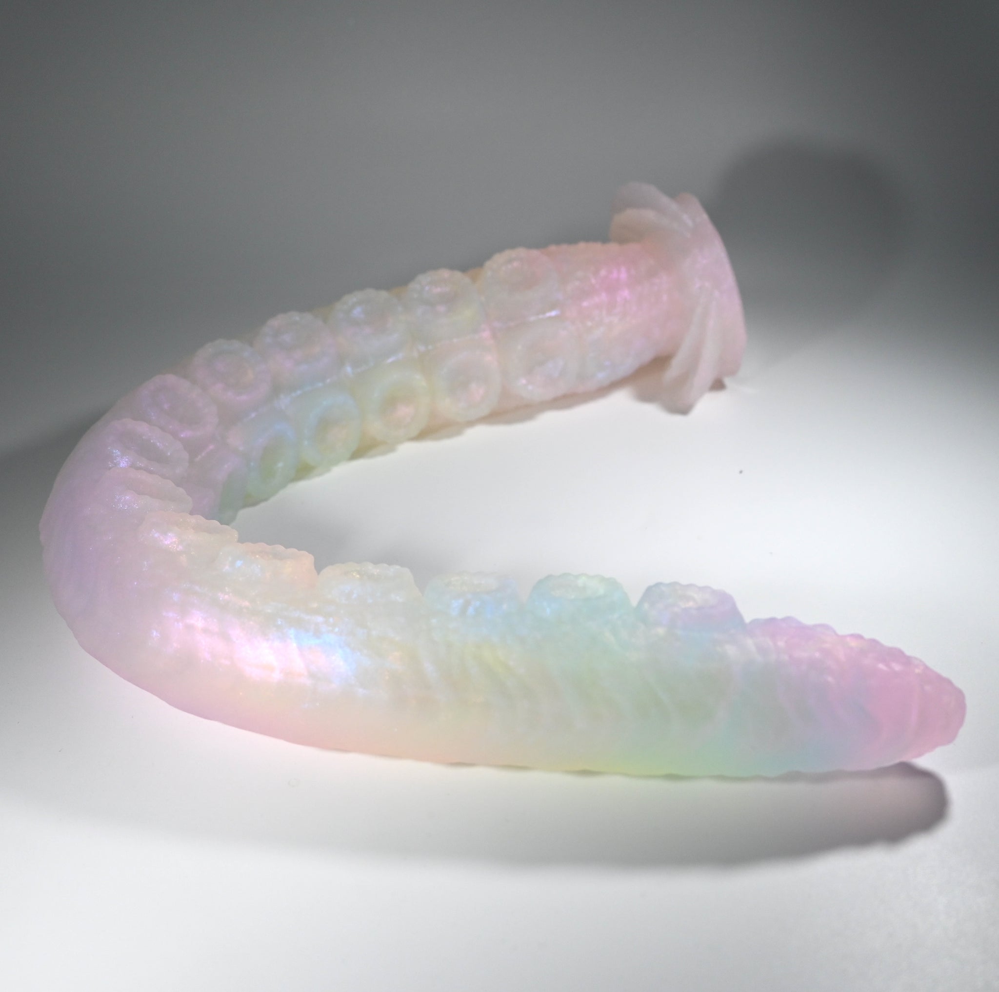 **NOTE: This product is made with Near Clear Ecoflex silicone and will therefore discoloration is more obvious (not more likely) than regular cloudy silicone. Please use extra caution to avoid staining with oil based lubes and bodily fluids. Boiling for long periods of time is not recommended. Please read our FAQ for additional care instructions.