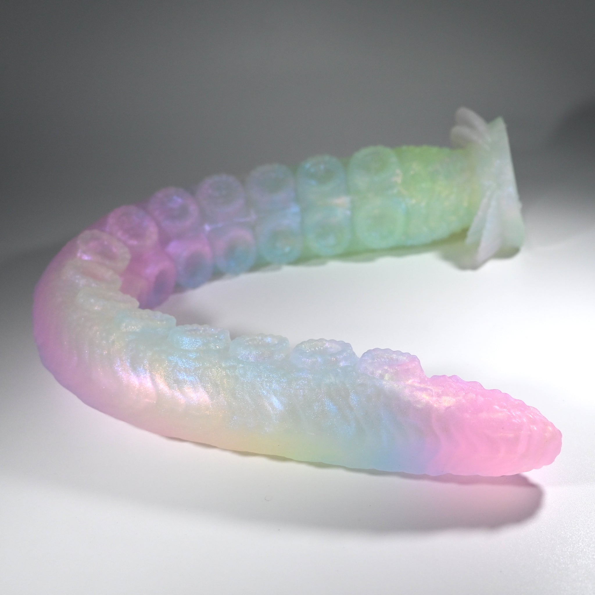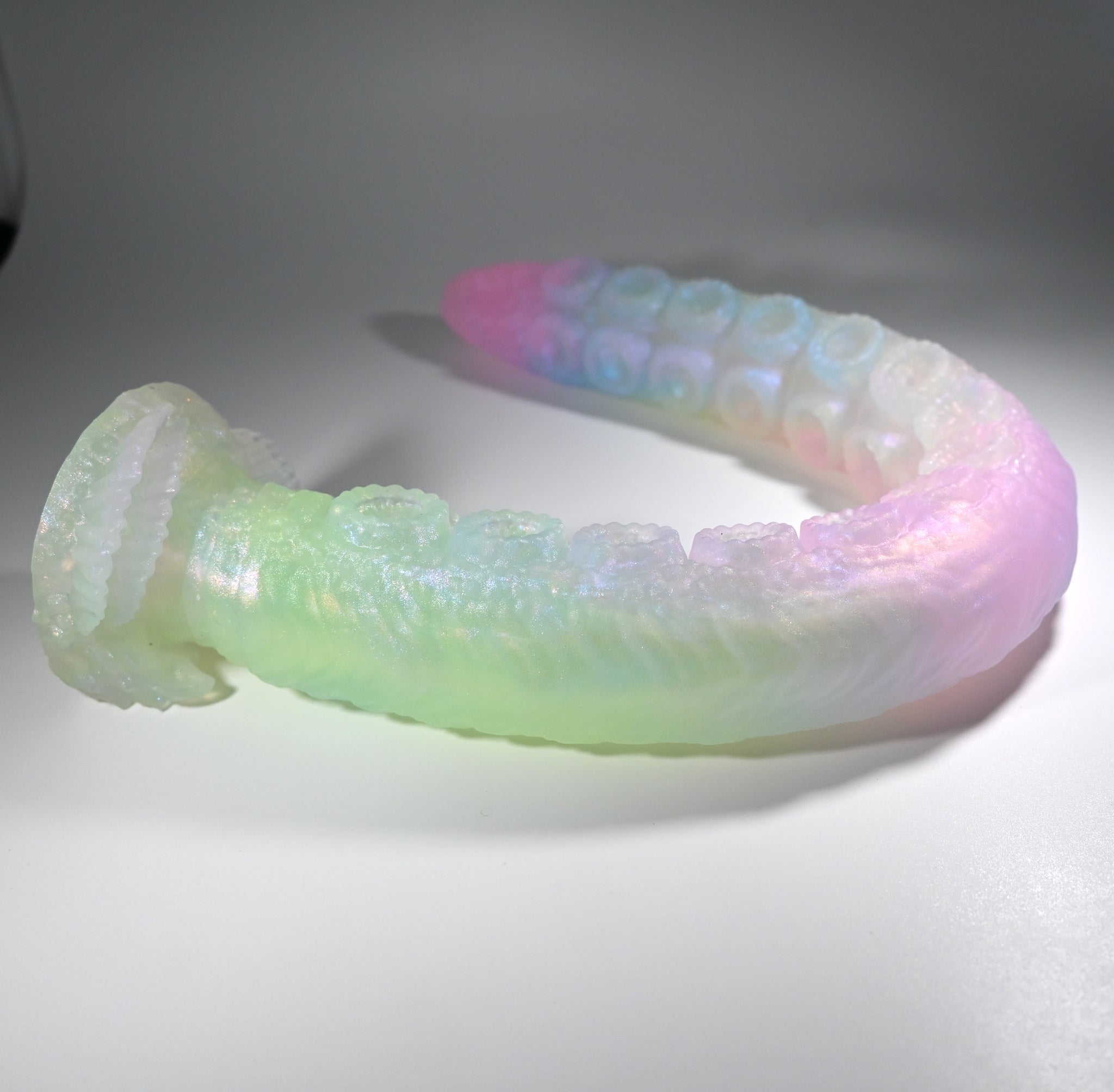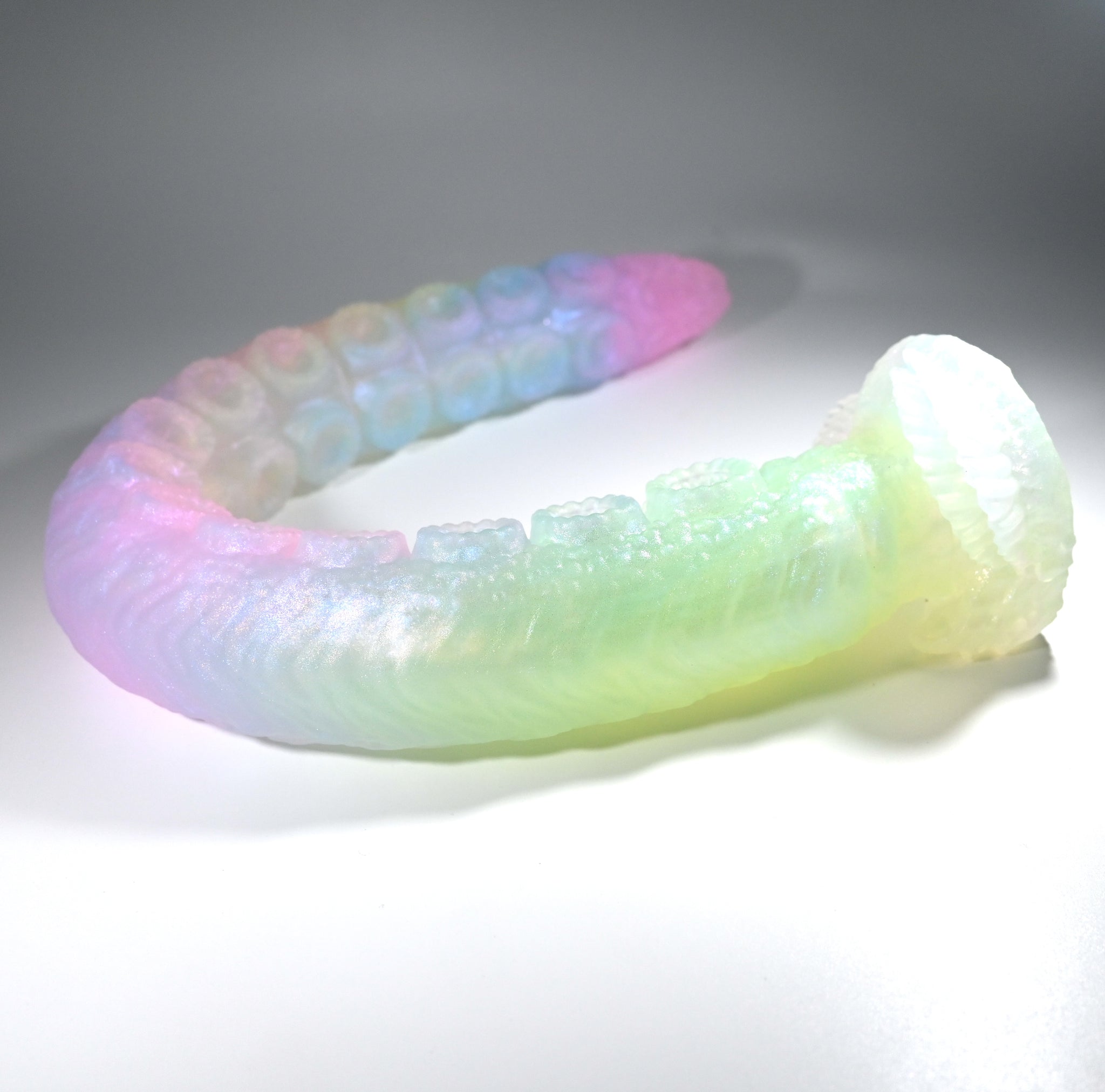 **NOTE: This product is made with Near Clear Ecoflex silicone and will therefore discoloration is more obvious (not more likely) than regular cloudy silicone. Please use extra caution to avoid staining with oil based lubes and bodily fluids. Boiling for long periods of time is not recommended. Please read our FAQ for additional care instructions.