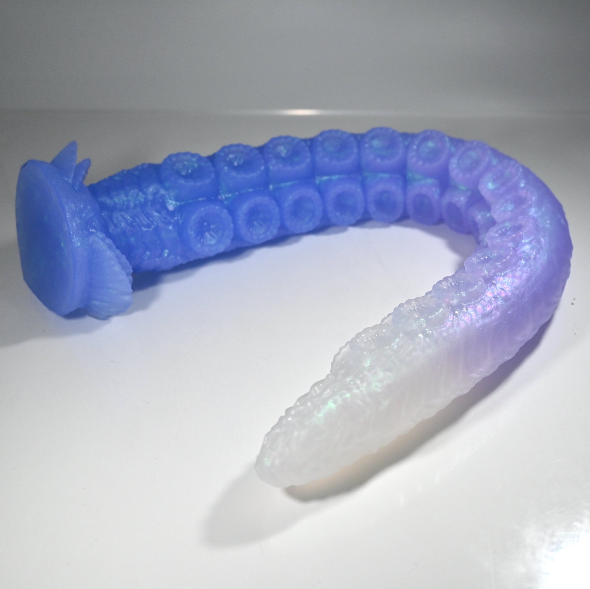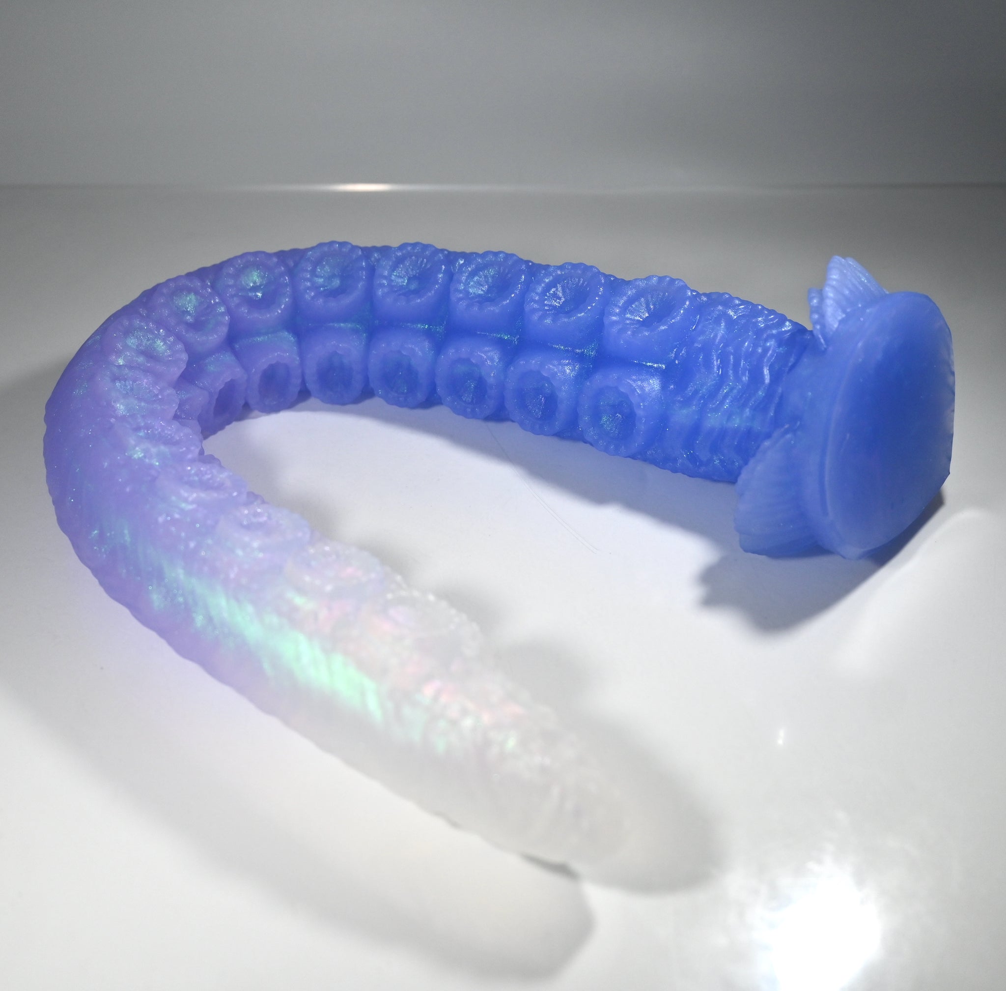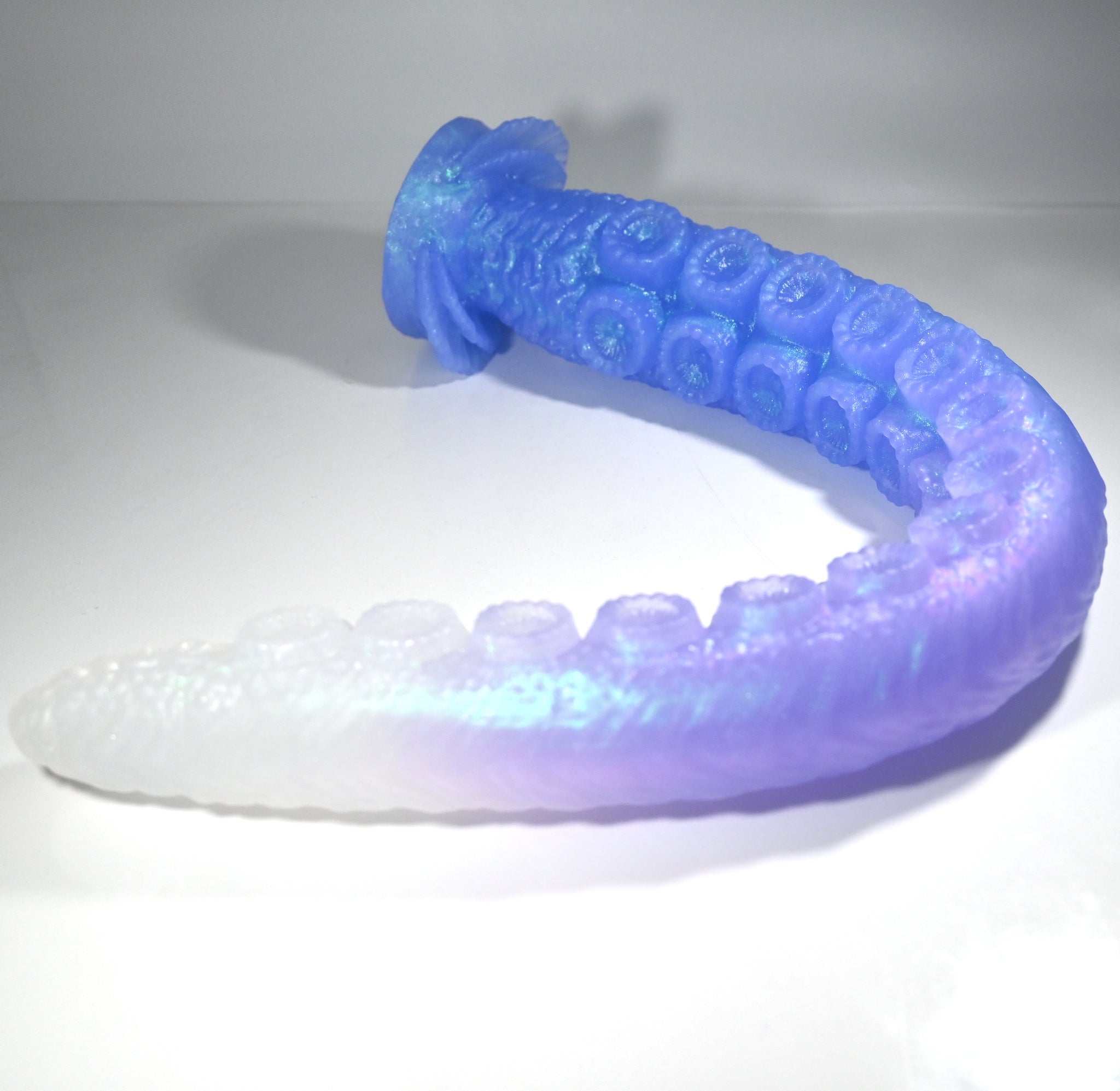 **NOTE: This product is made with Near Clear Ecoflex silicone and will therefore discoloration is more obvious (not more likely) than regular cloudy silicone. Please use extra caution to avoid staining with oil based lubes and bodily fluids. Boiling for long periods of time is not recommended. Please read our FAQ for additional care instructions.