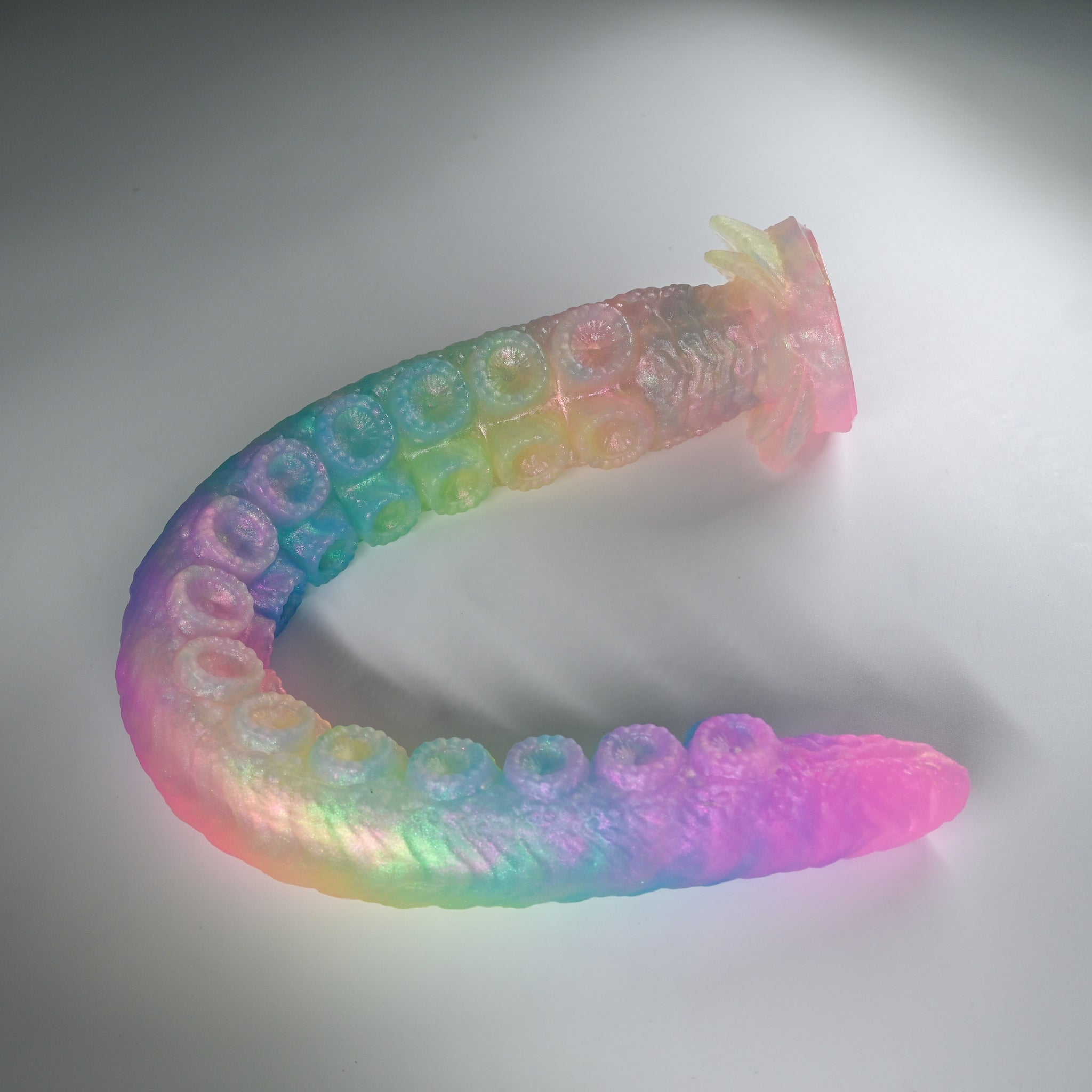 **NOTE: This product is made with Near Clear Ecoflex silicone and will therefore discoloration is more obvious (not more likely) than regular cloudy silicone. Please use extra caution to avoid staining with oil based lubes and bodily fluids. Boiling for long periods of time is not recommended. Please read our FAQ for additional care instructions.