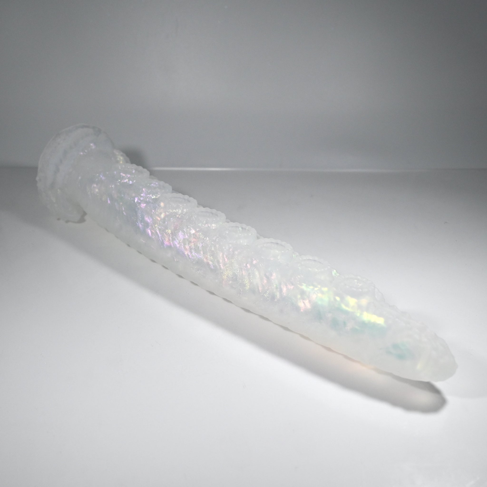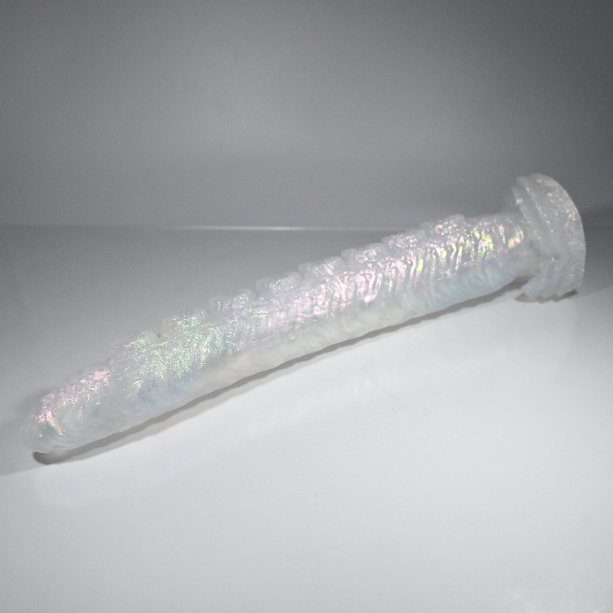 **NOTE: This product is made with Near Clear Ecoflex silicone and will therefore discoloration is more obvious (not more likely) than regular cloudy silicone. Please use extra caution to avoid staining with oil based lubes and bodily fluids. Boiling for long periods of time is not recommended. Please read our FAQ for additional care instructions.