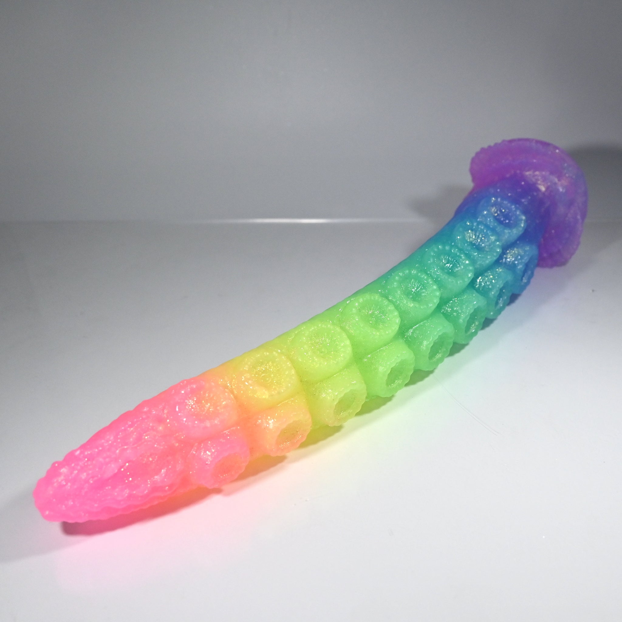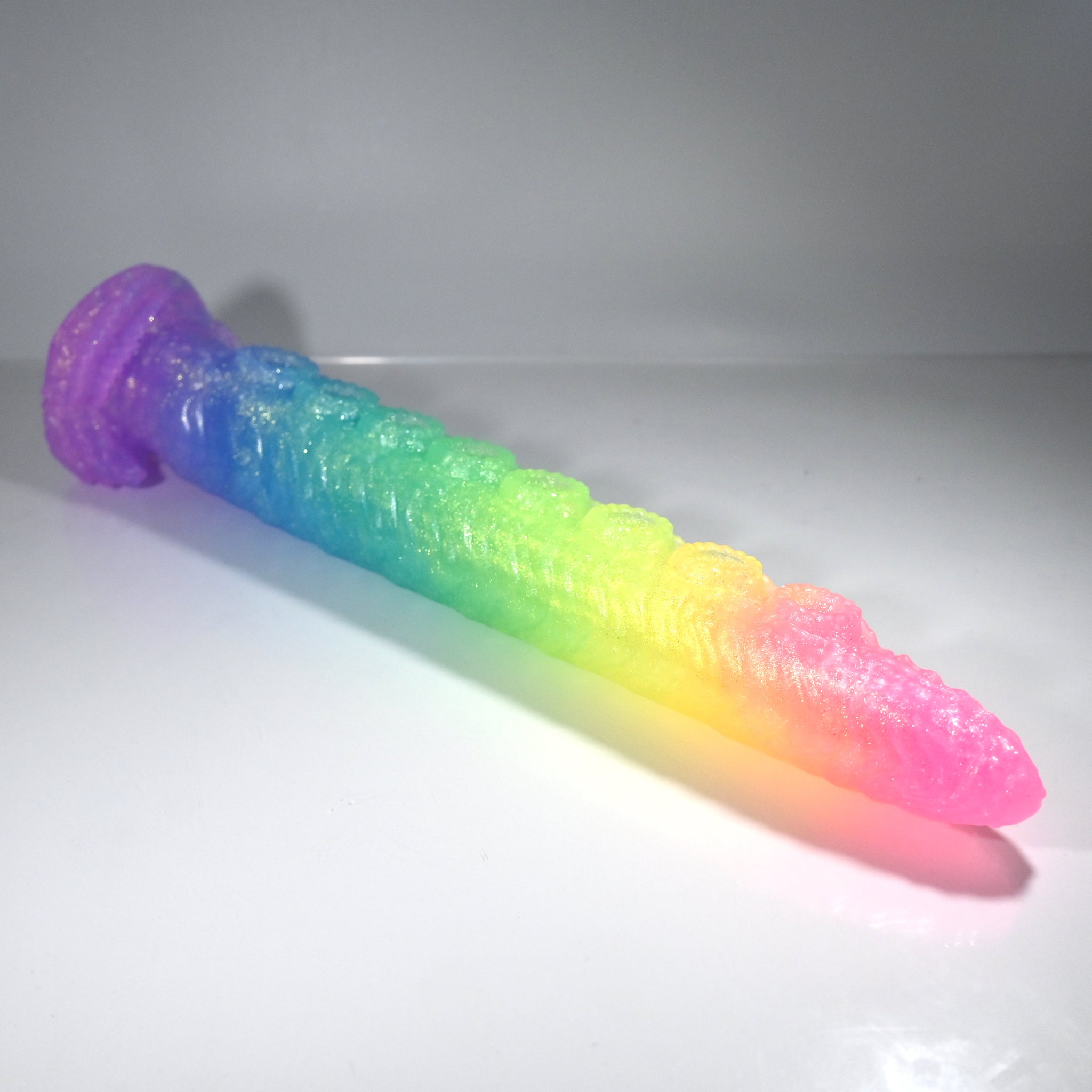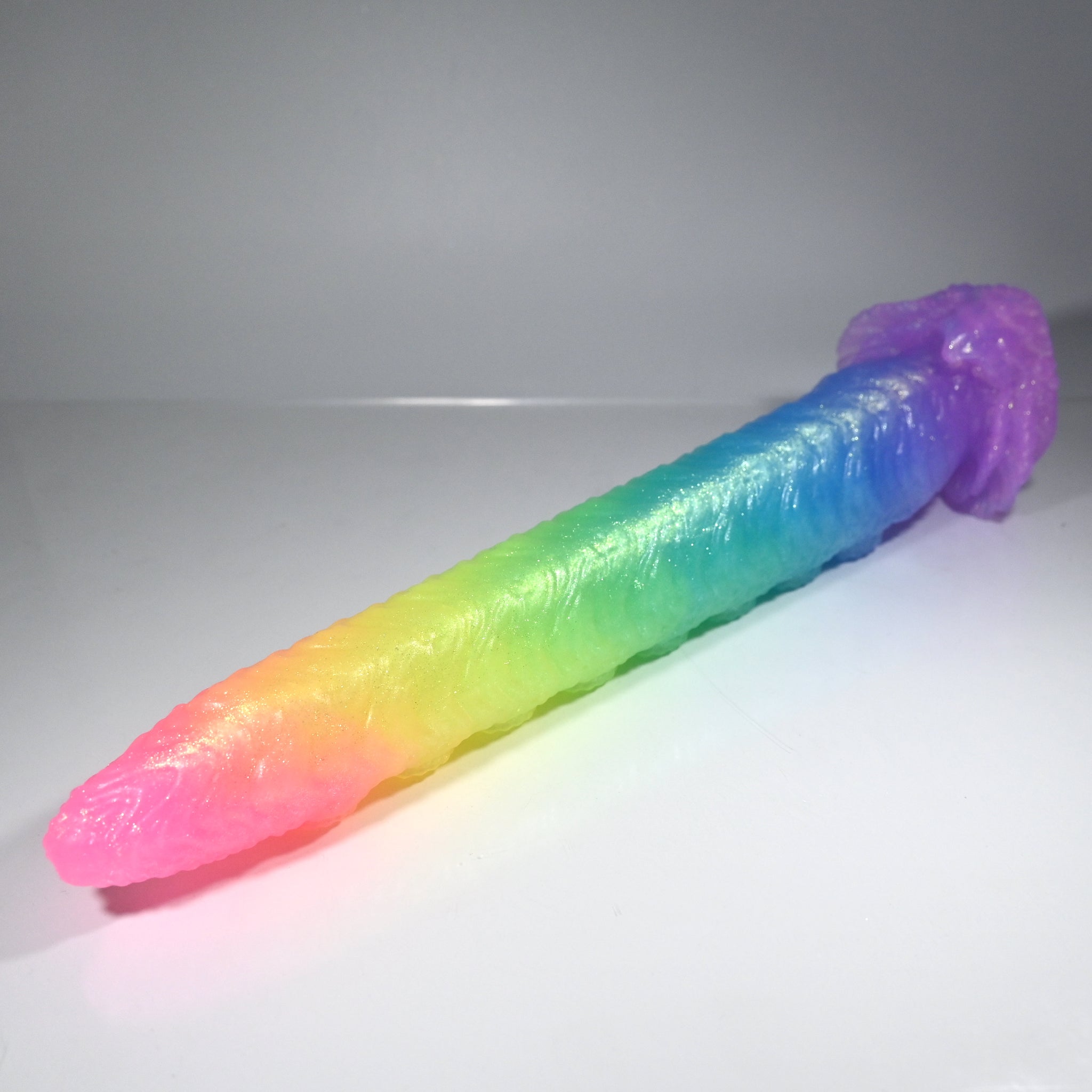 **NOTE: This product is made with Near Clear Ecoflex silicone and will therefore discoloration is more obvious (not more likely) than regular cloudy silicone. Please use extra caution to avoid staining with oil based lubes and bodily fluids. Boiling for long periods of time is not recommended. Please read our FAQ for additional care instructions.