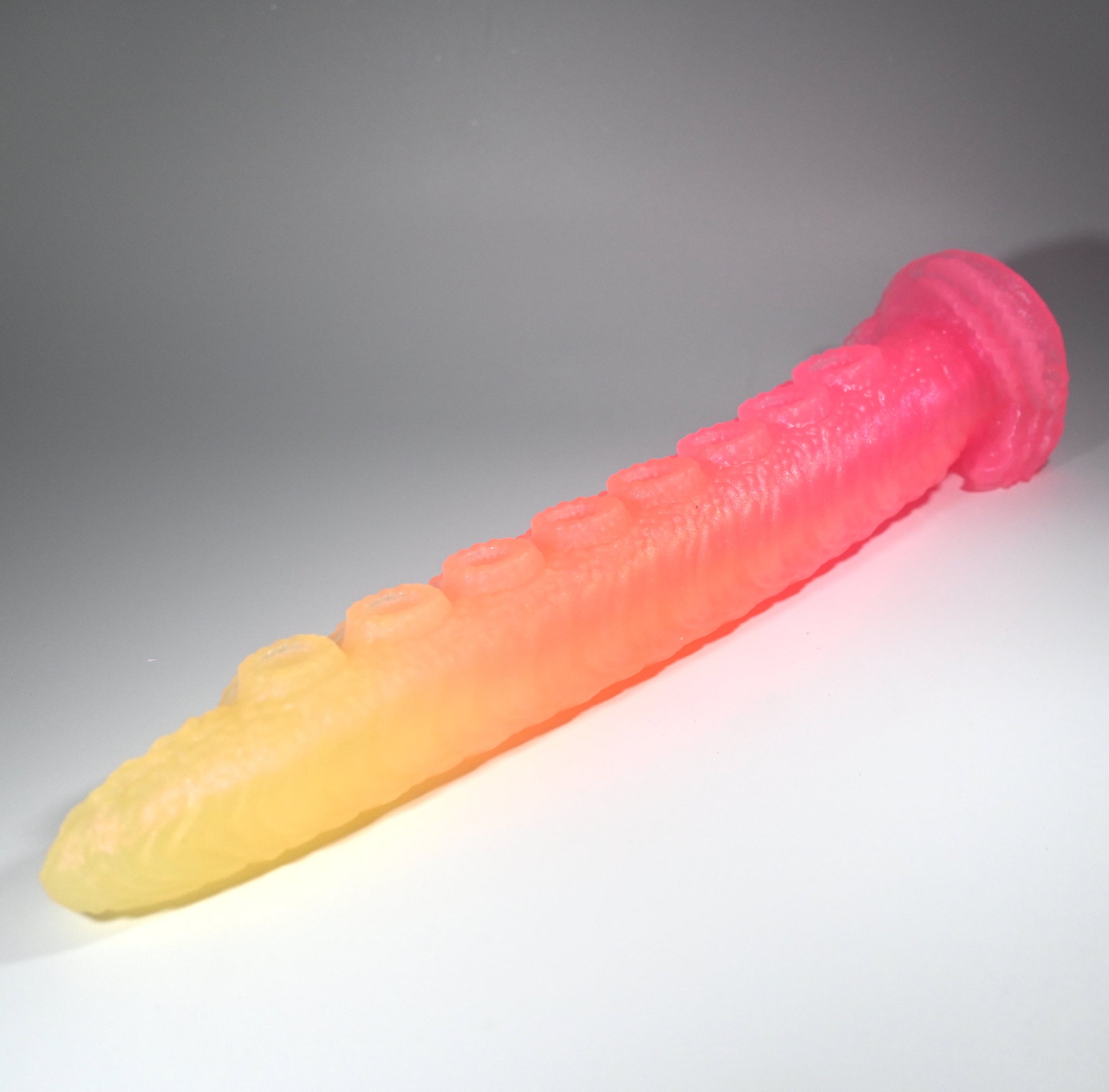**NOTE: This product is made with Near Clear Ecoflex silicone and will therefore discoloration is more obvious (not more likely) than regular cloudy silicone. Please use extra caution to avoid staining with oil based lubes and bodily fluids. Boiling for long periods of time is not recommended. Please read our FAQ for additional care instructions.