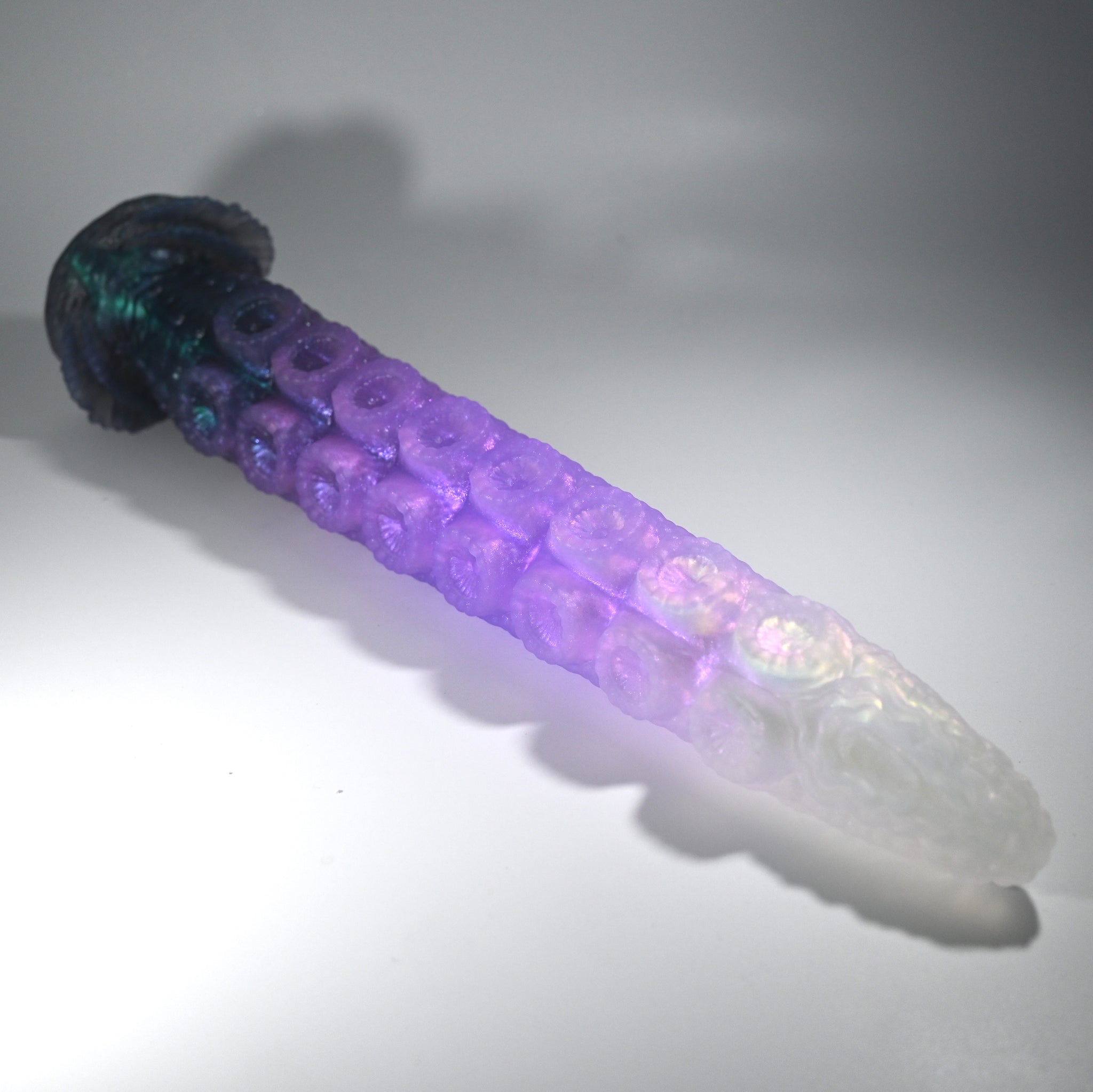 **NOTE: This product is made with Near Clear Ecoflex silicone and will therefore discoloration is more obvious (not more likely) than regular cloudy silicone. Please use extra caution to avoid staining with oil based lubes and bodily fluids. Boiling for long periods of time is not recommended. Please read our FAQ for additional care instructions.