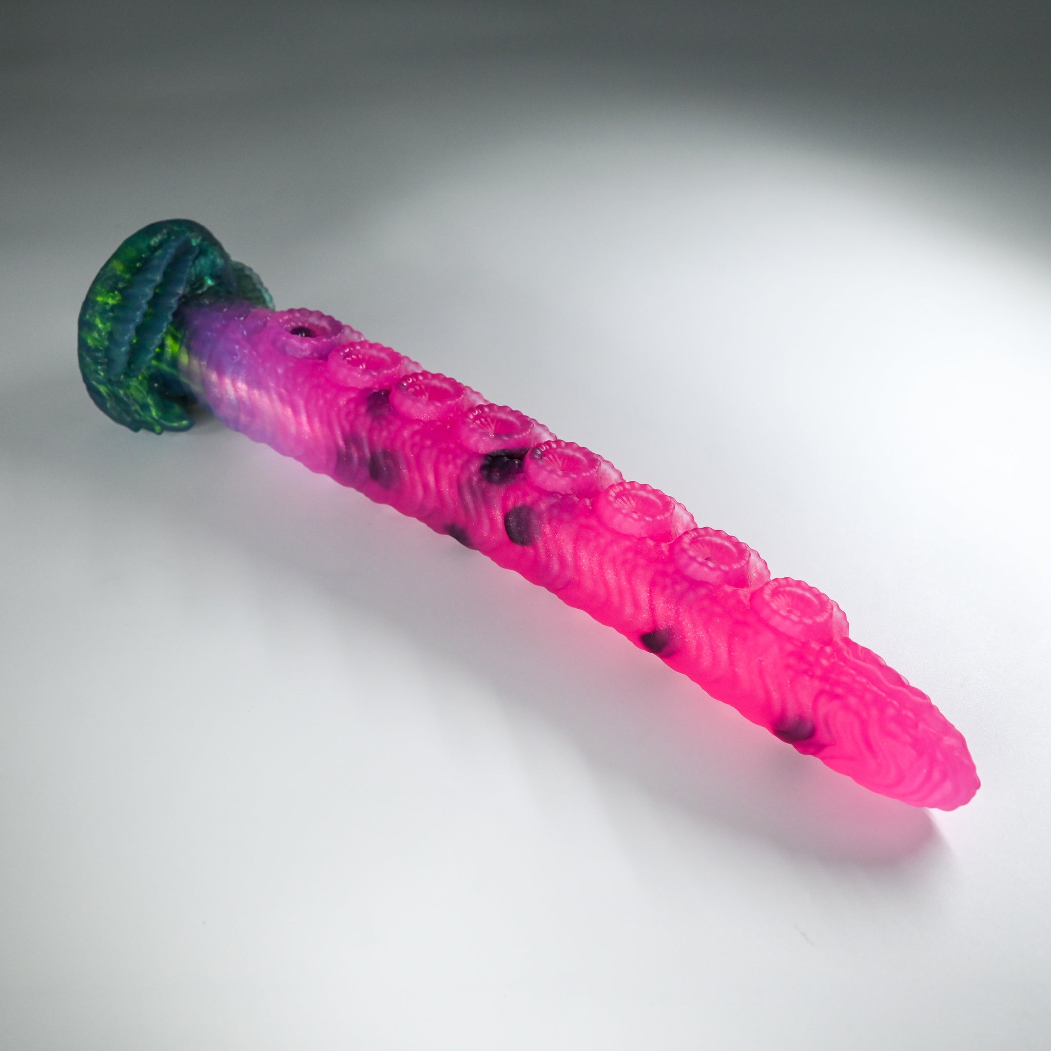 **NOTE: This product is made with Near Clear Ecoflex silicone and will therefore discoloration is more obvious (not more likely) than regular cloudy silicone. Please use extra caution to avoid staining with oil based lubes and bodily fluids. Boiling for long periods of time is not recommended. Please read our FAQ for additional care instructions.