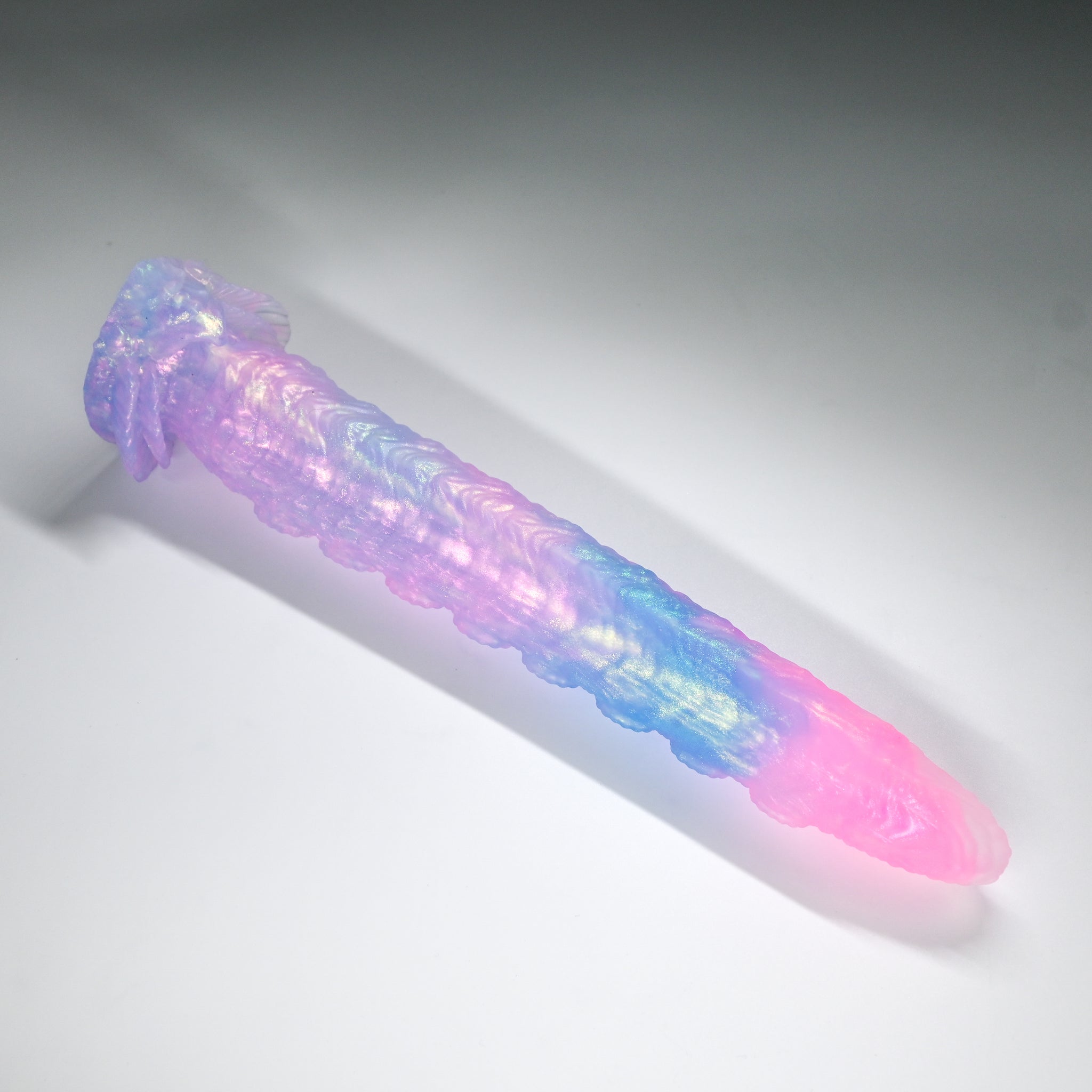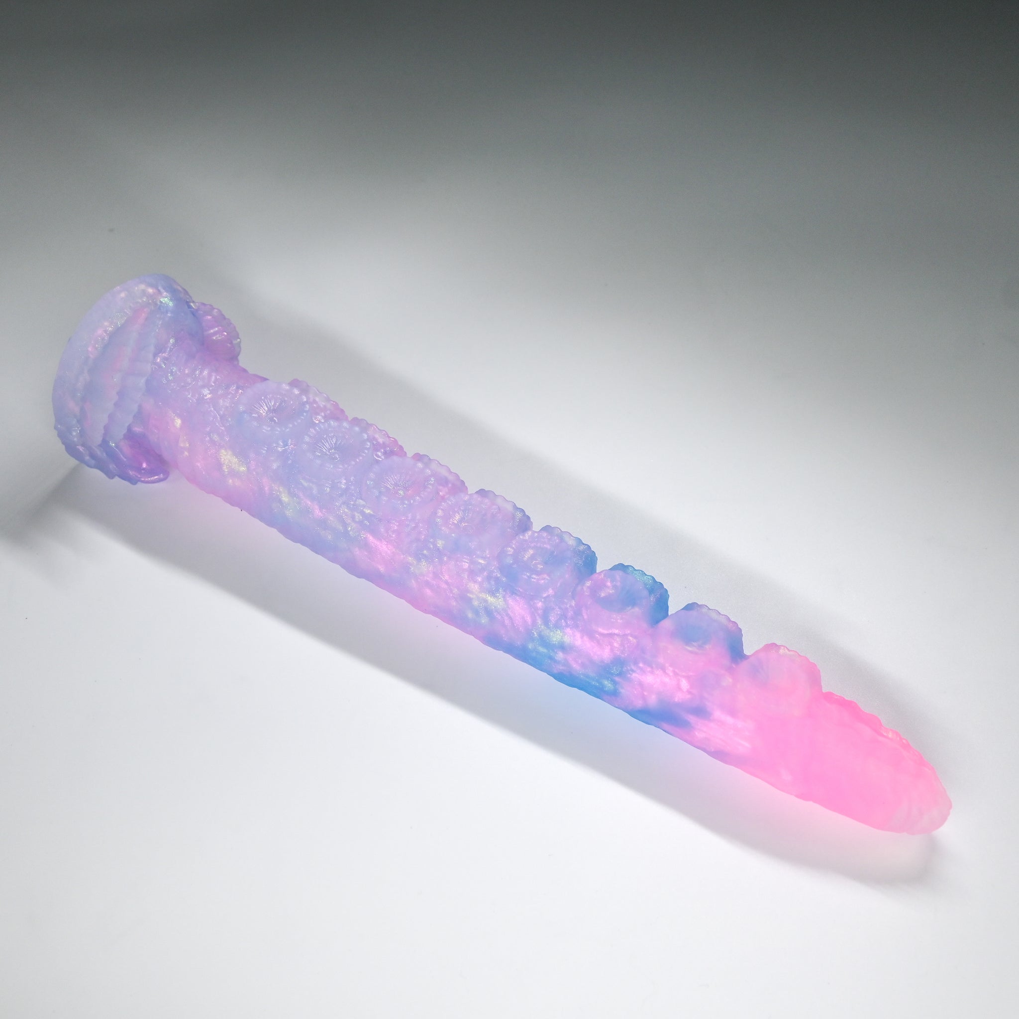 **NOTE: This product is made with Near Clear Ecoflex silicone and will therefore discoloration is more obvious (not more likely) than regular cloudy silicone. Please use extra caution to avoid staining with oil based lubes and bodily fluids. Boiling for long periods of time is not recommended. Please read our FAQ for additional care instructions.