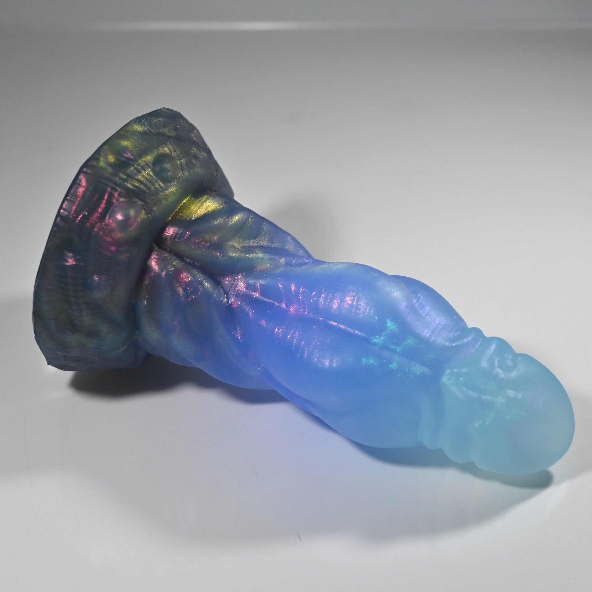 **NOTE: This product is made with Near Clear Ecoflex silicone and will therefore discoloration is more obvious (not more likely) than regular cloudy silicone. Please use extra caution to avoid staining with oil based lubes and bodily fluids. Boiling for long periods of time is not recommended. Please read our FAQ for additional care instructions.
