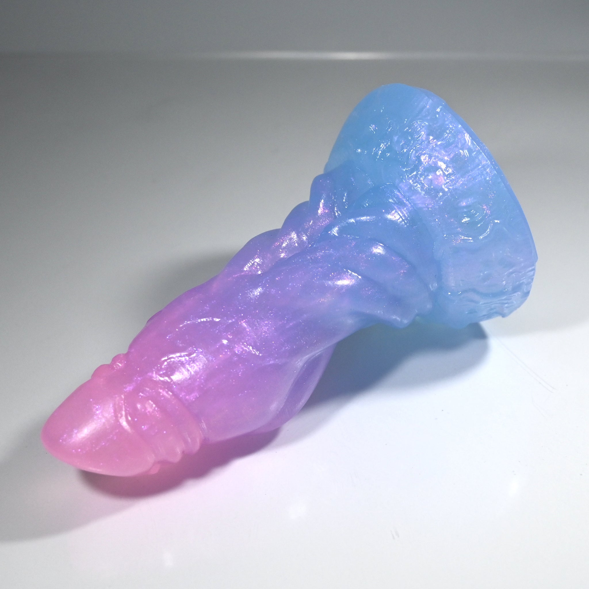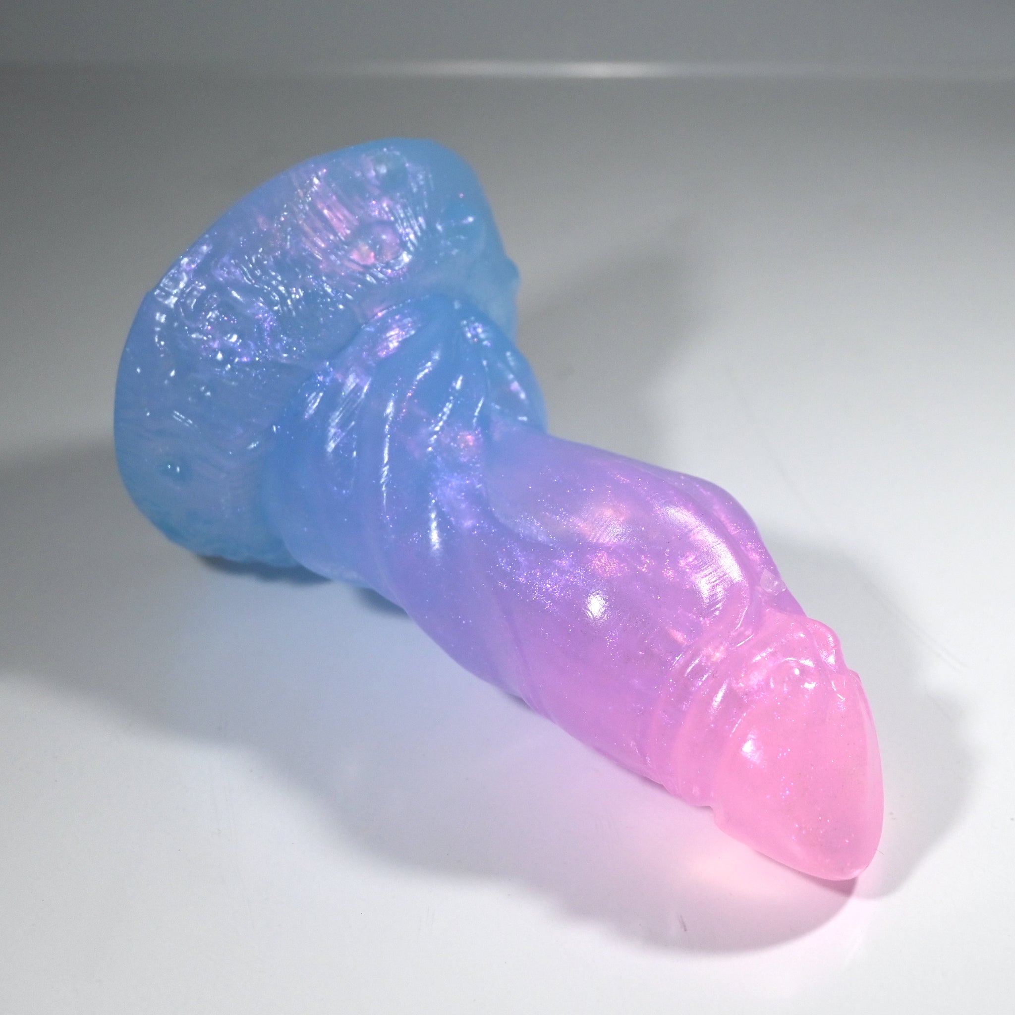 **NOTE: This product is made with Near Clear Ecoflex silicone and will therefore discoloration is more obvious (not more likely) than regular cloudy silicone. Please use extra caution to avoid staining with oil based lubes and bodily fluids. Boiling for long periods of time is not recommended. Please read our FAQ for additional care instructions.