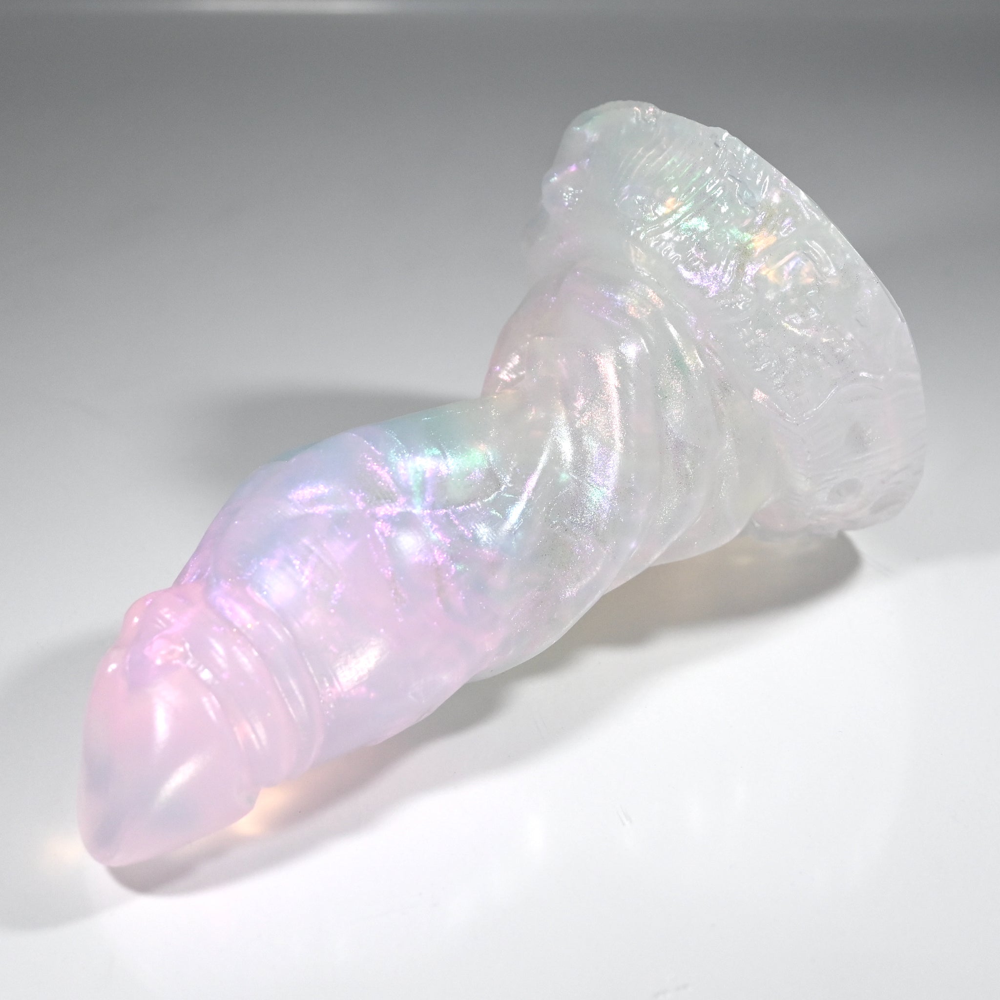 **NOTE: This product is made with Near Clear Ecoflex silicone and will therefore discoloration is more obvious (not more likely) than regular cloudy silicone. Please use extra caution to avoid staining with oil based lubes and bodily fluids. Boiling for long periods of time is not recommended. Please read our FAQ for additional care instructions.