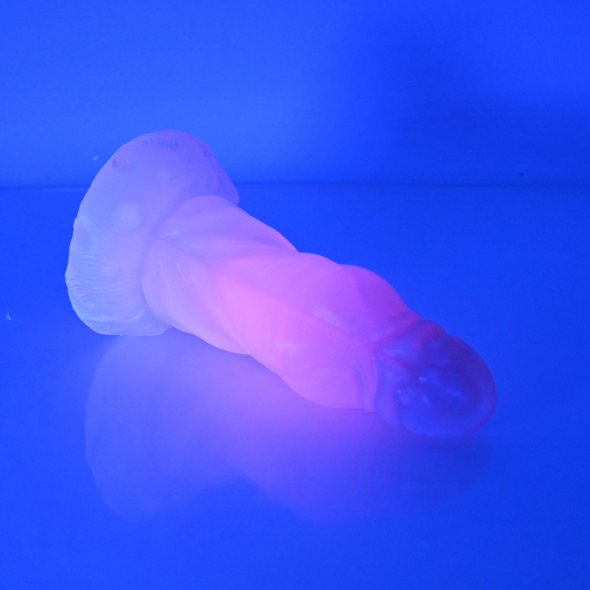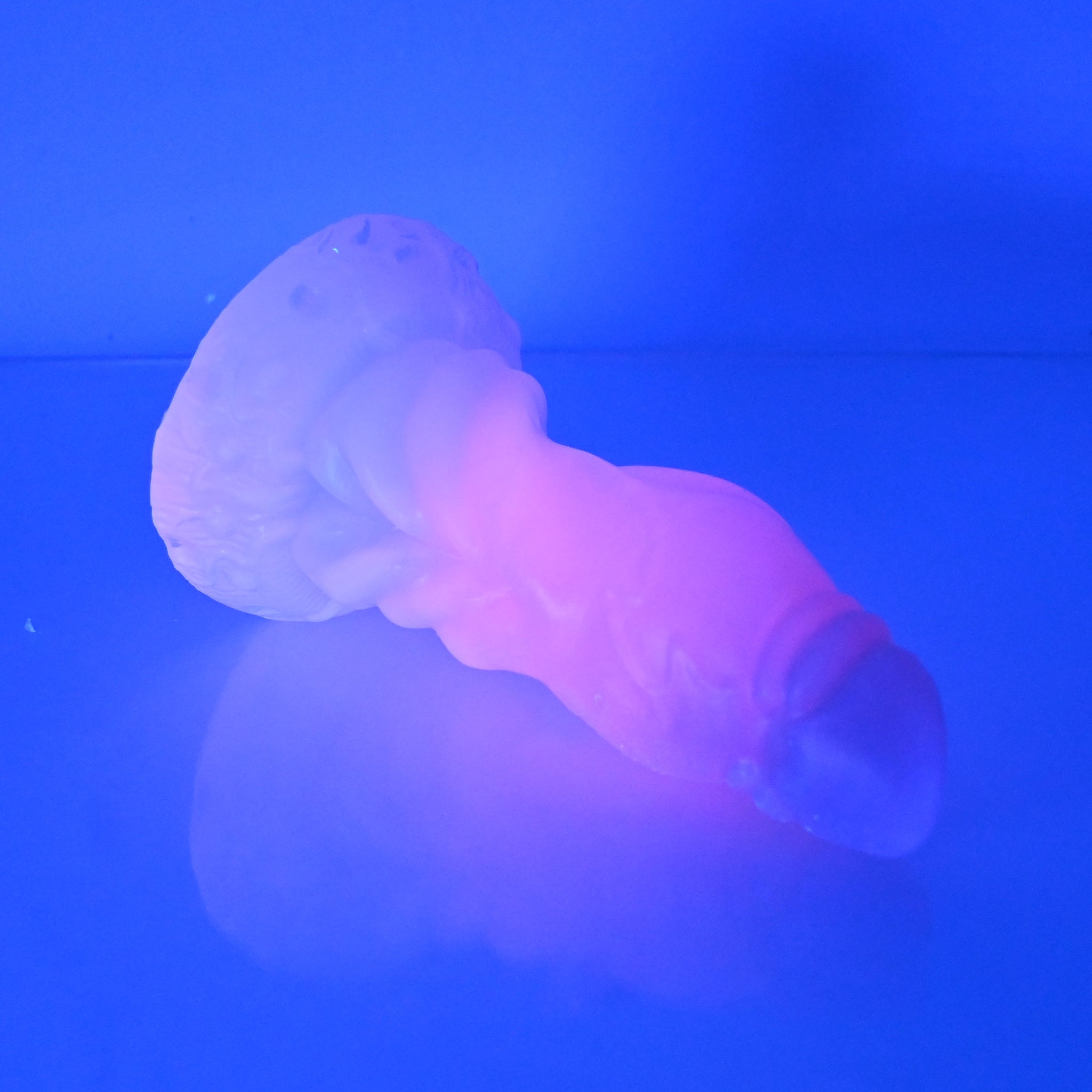 **NOTE: This product is made with Near Clear Ecoflex silicone and will therefore discoloration is more obvious (not more likely) than regular cloudy silicone. Please use extra caution to avoid staining with oil based lubes and bodily fluids. Boiling for long periods of time is not recommended. Please read our FAQ for additional care instructions.